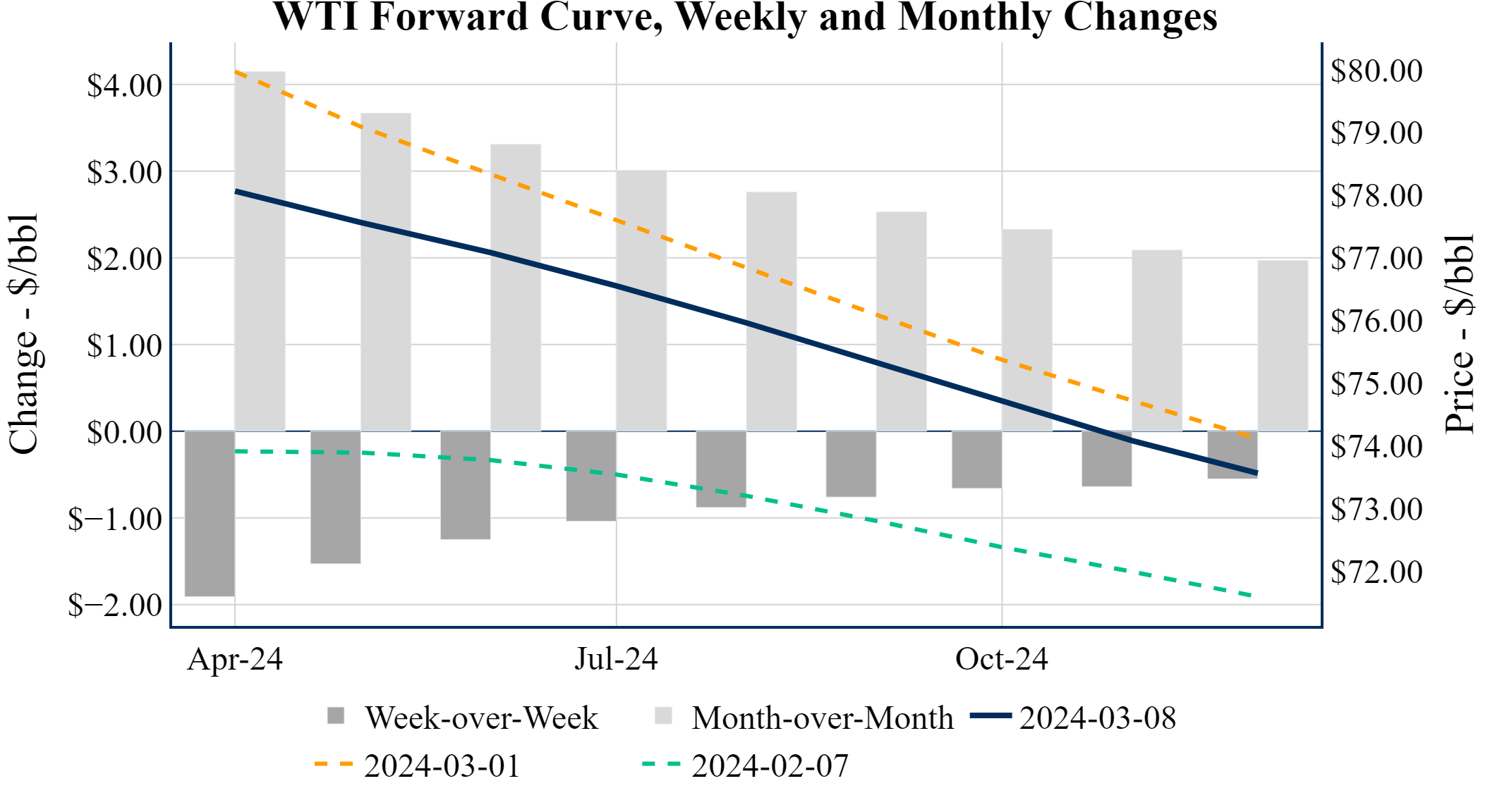 Prompt-Month WTI (Apr 24) was down $-0.92 on the day, to settle at $78.01