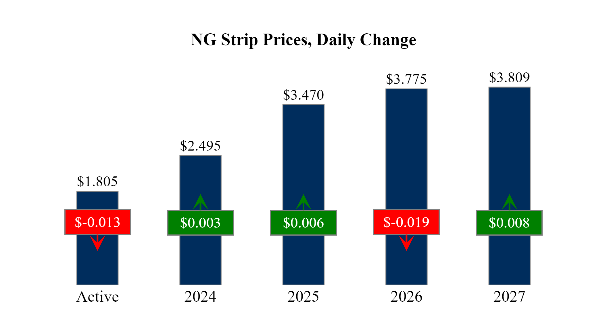 Prompt-Month Henry Hub (Apr 24) was down $-0.013 on the day, to settle at $1.805