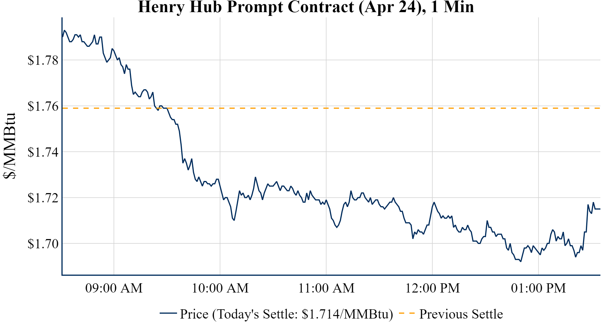 Prompt-Month Henry Hub (Apr 24) was down $-0.045 on the day, to settle at $1.714