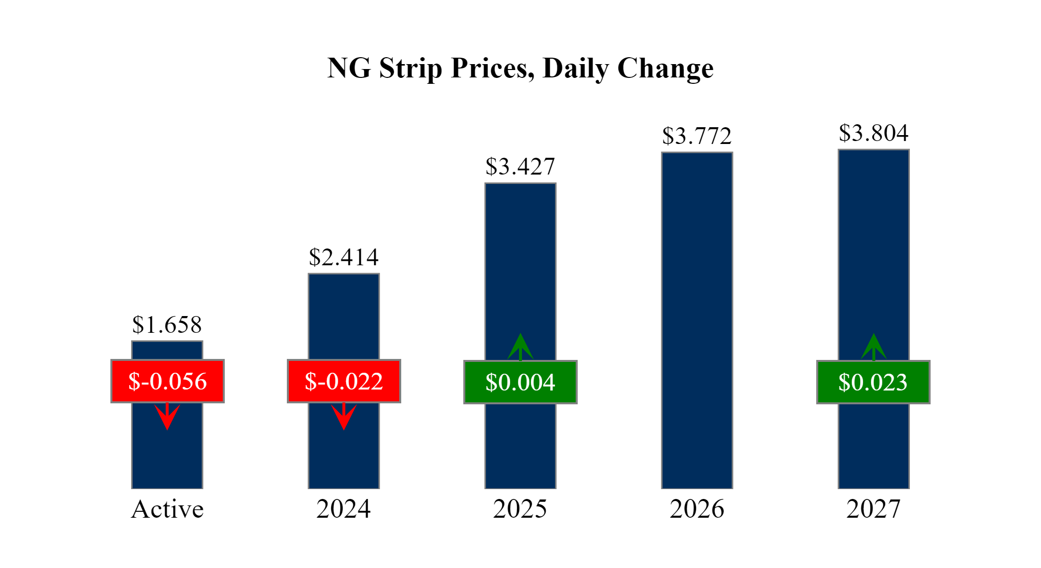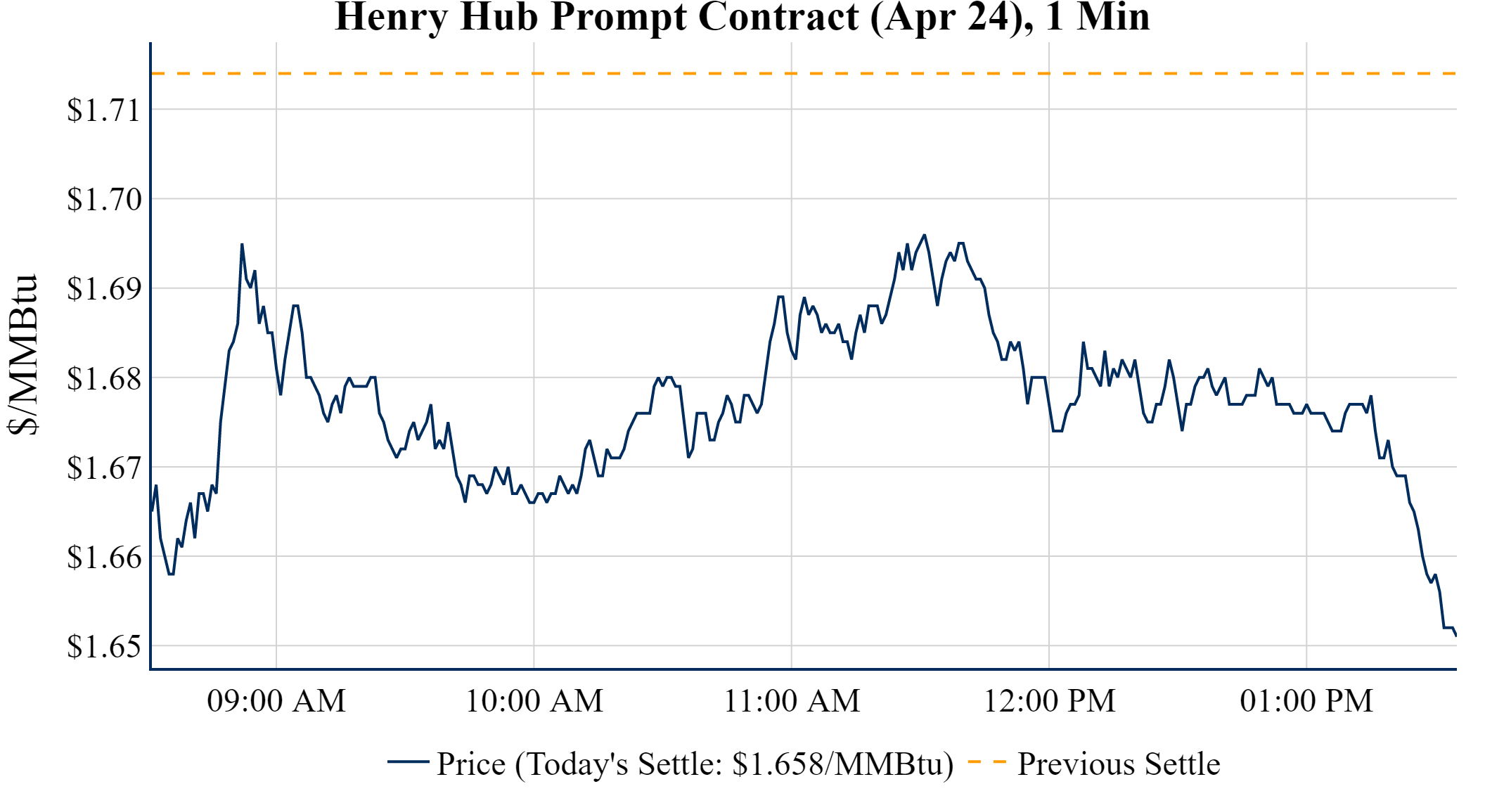 Prompt-Month Henry Hub (Apr 24) was down $-0.056 on the day, to settle at $1.658