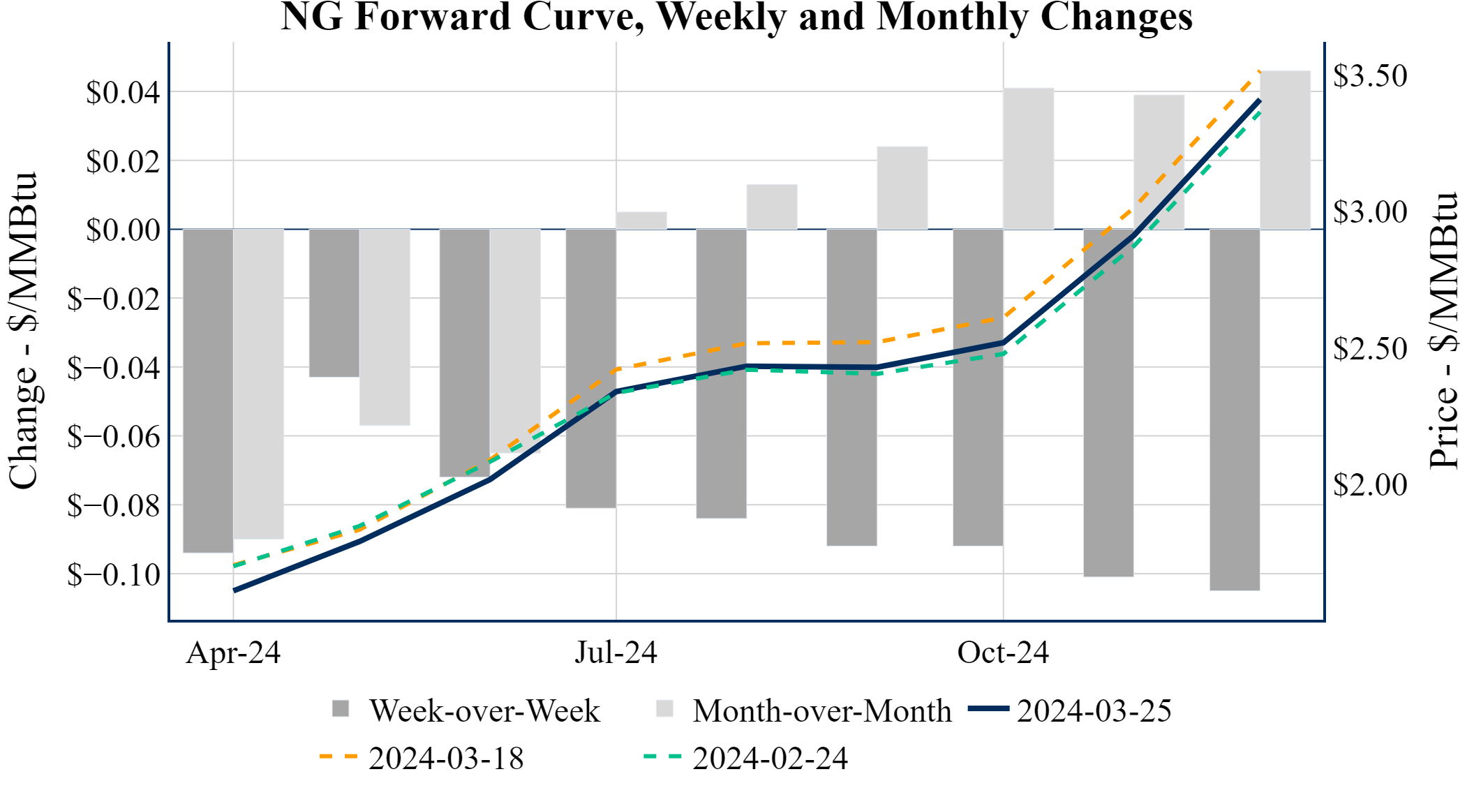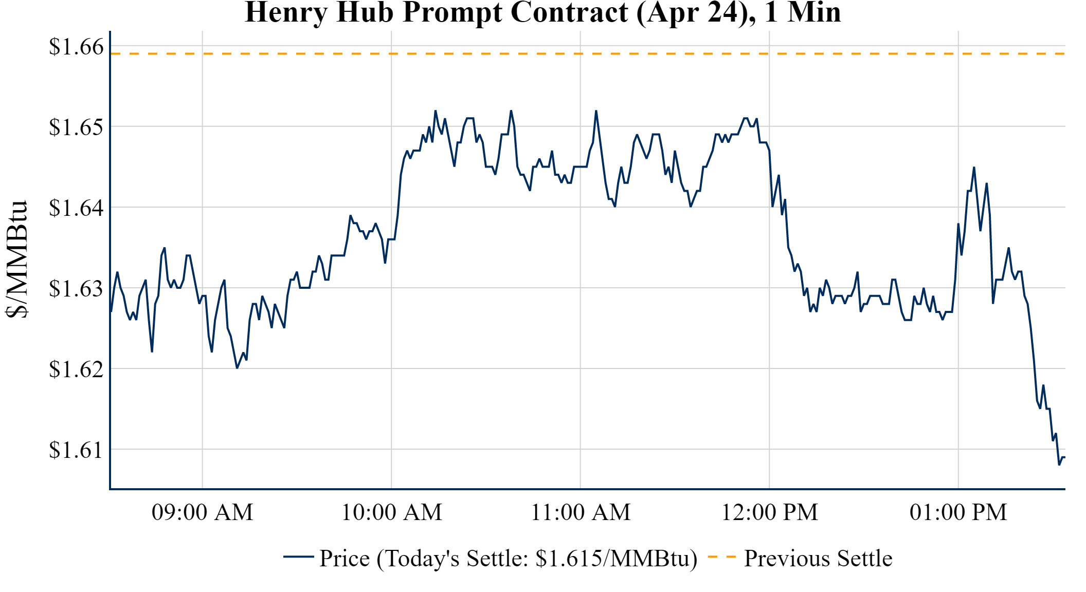 Prompt-Month Henry Hub (Apr 24) was down $-0.044 on the day, to settle at $1.615