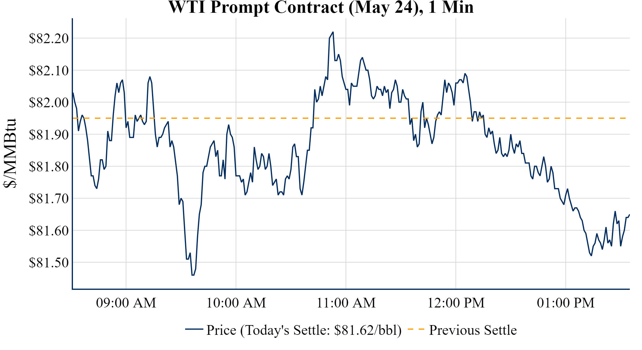 Prompt-Month WTI (May 24) was down $-0.33 on the day, to settle at $81.62