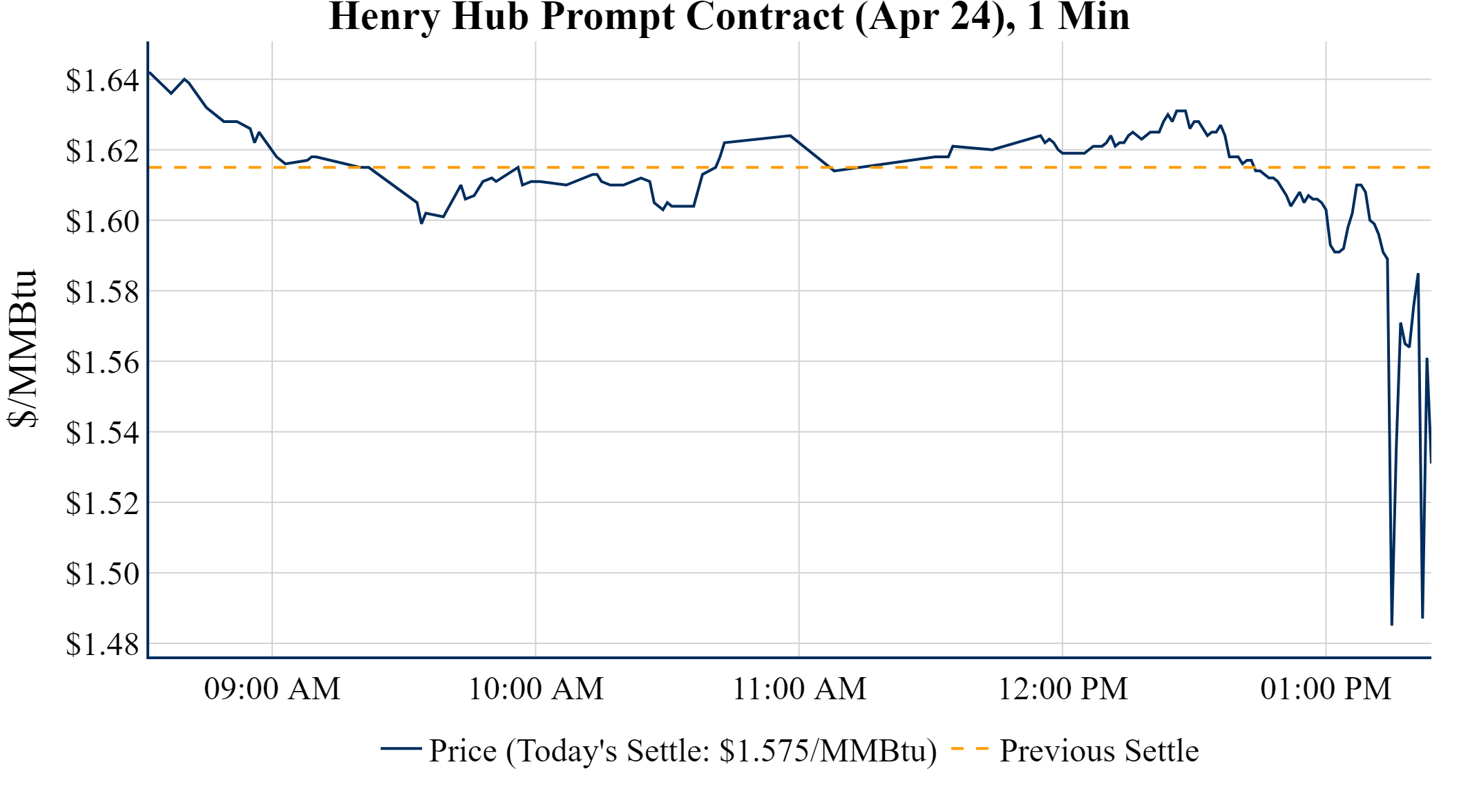 Prompt-Month Henry Hub (Apr 24) was down $-0.040 on the day, to settle at $1.575