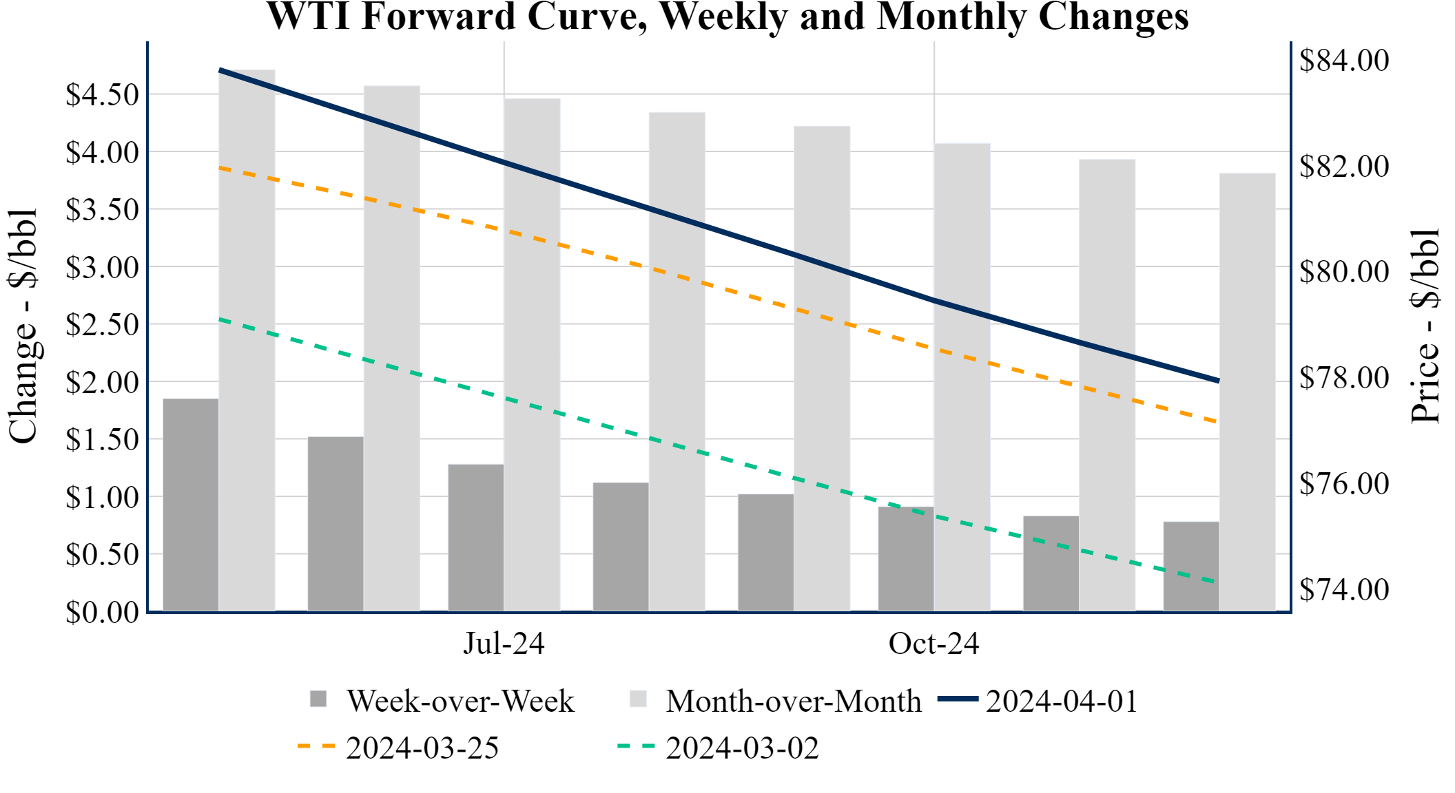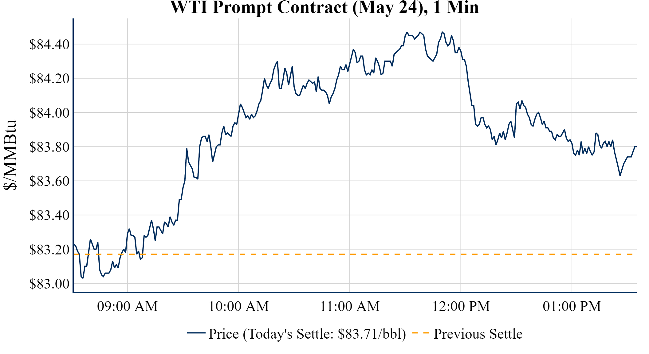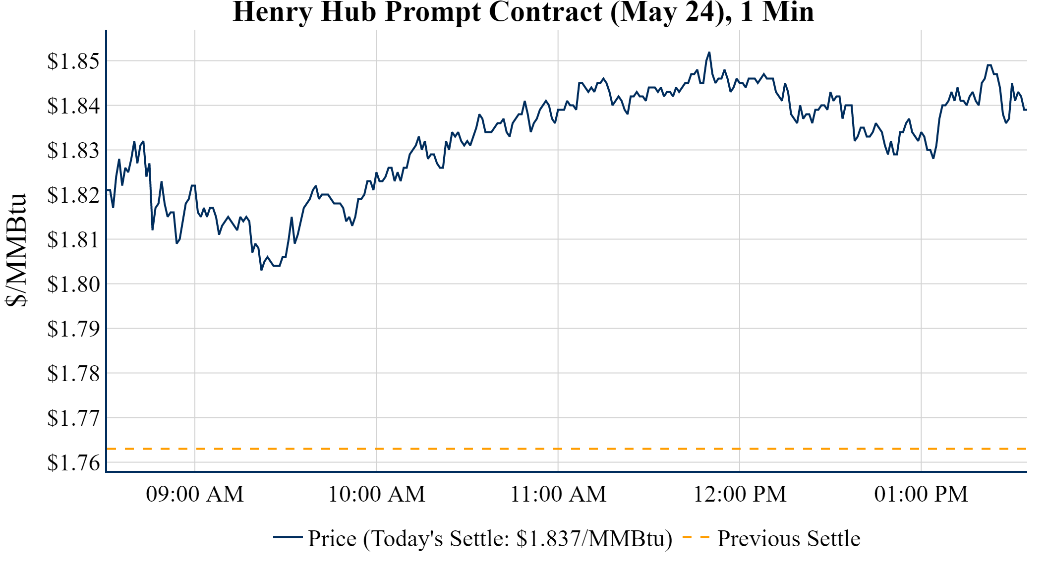 Prompt-Month Henry Hub (May 24) was up $0.074 on the day, to settle at $1.837Prompt-Month WTI (May 24) was up $0.54 on the day, to settle at $83.71