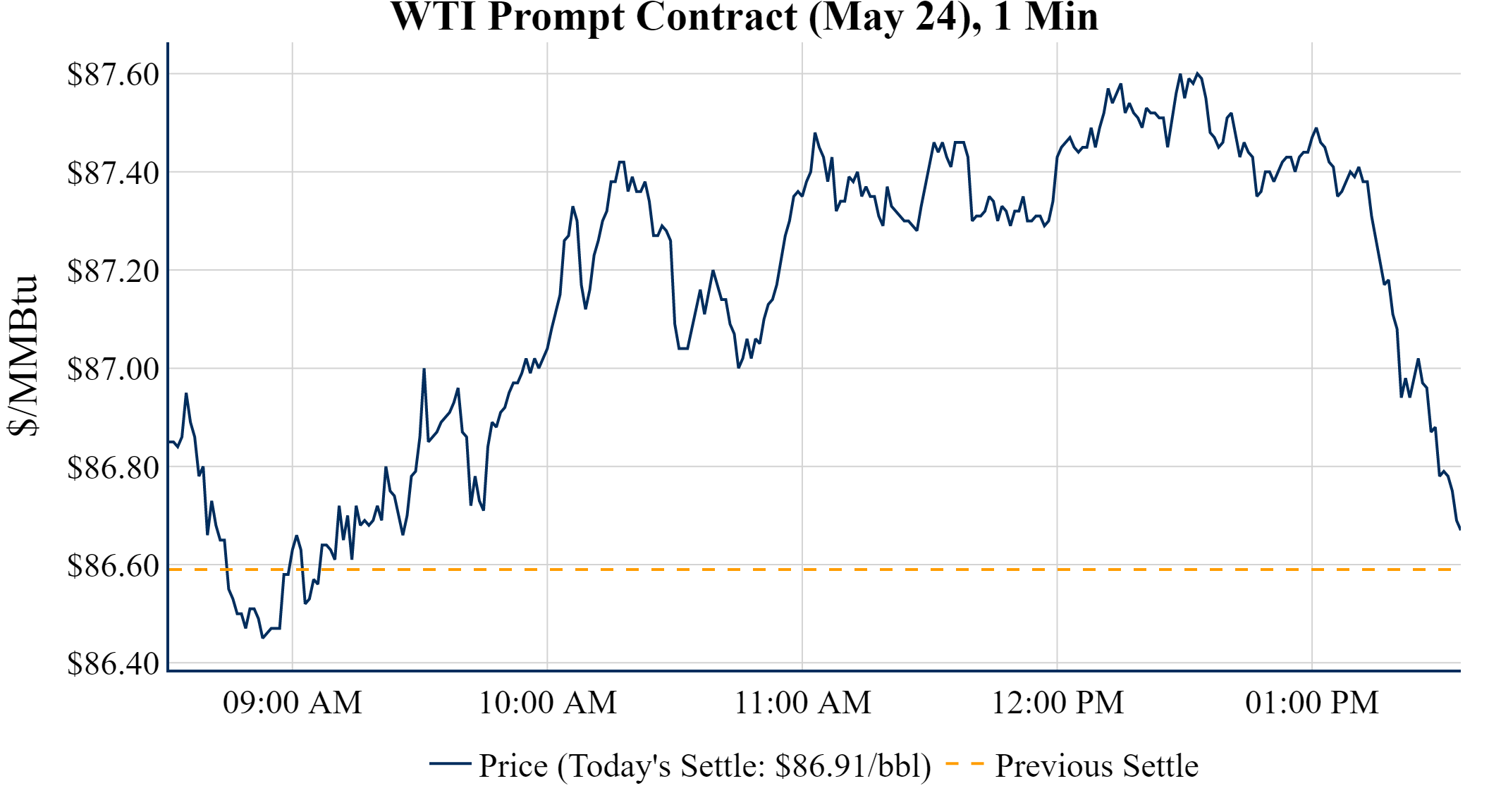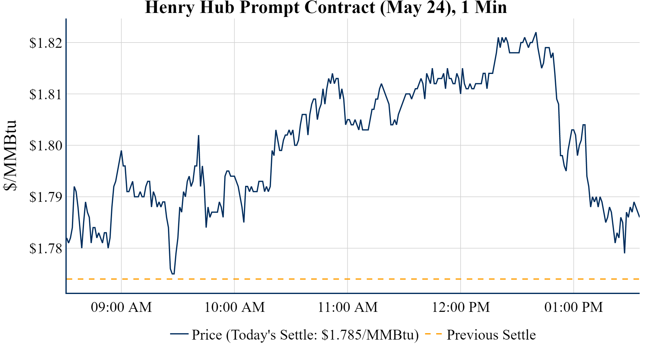 Prompt-Month Henry Hub (May 24) was up $0.011 on the day, to settle at $1.785Prompt-Month WTI (May 24) was up $0.32 on the day, to settle at $86.91