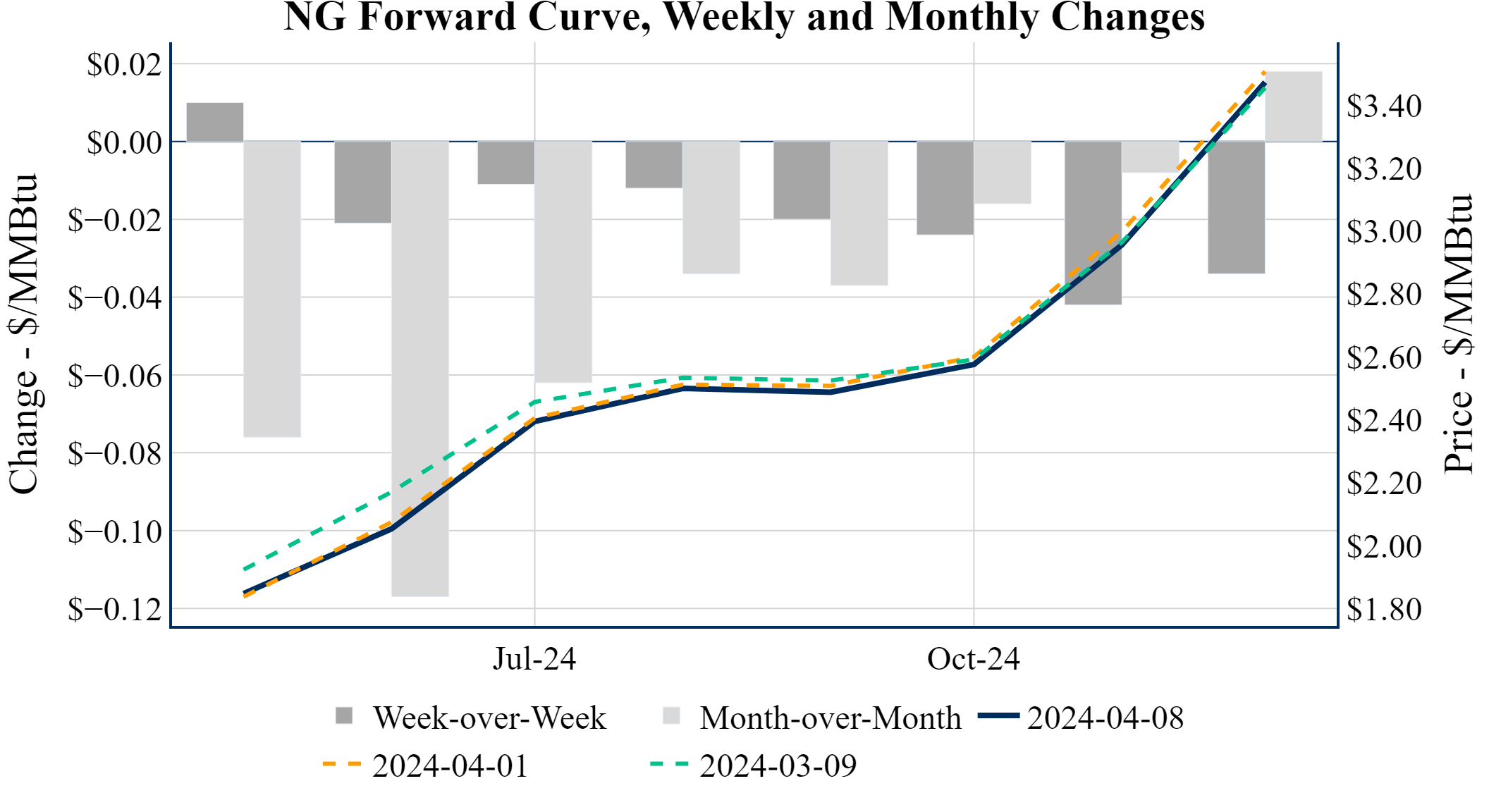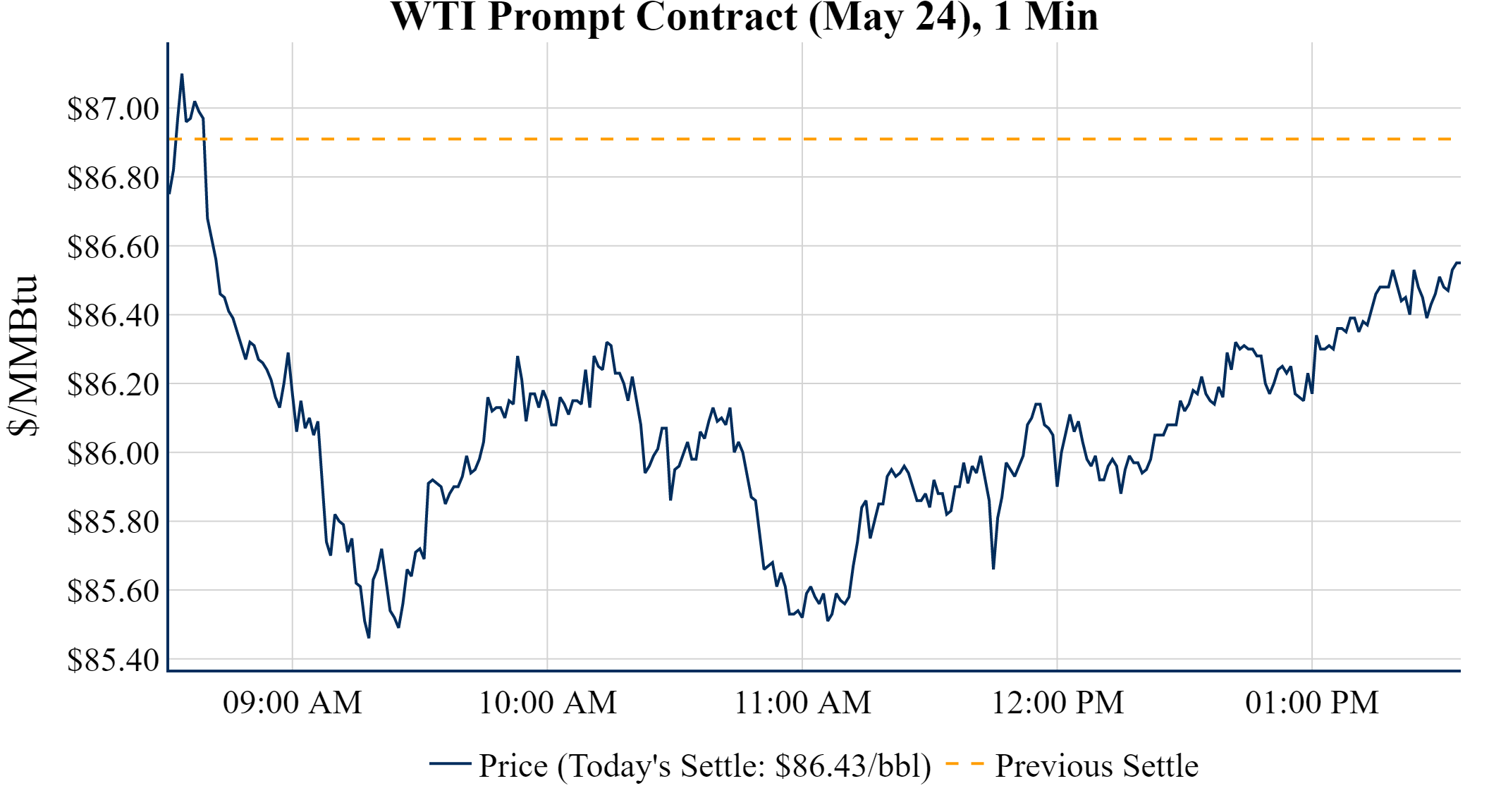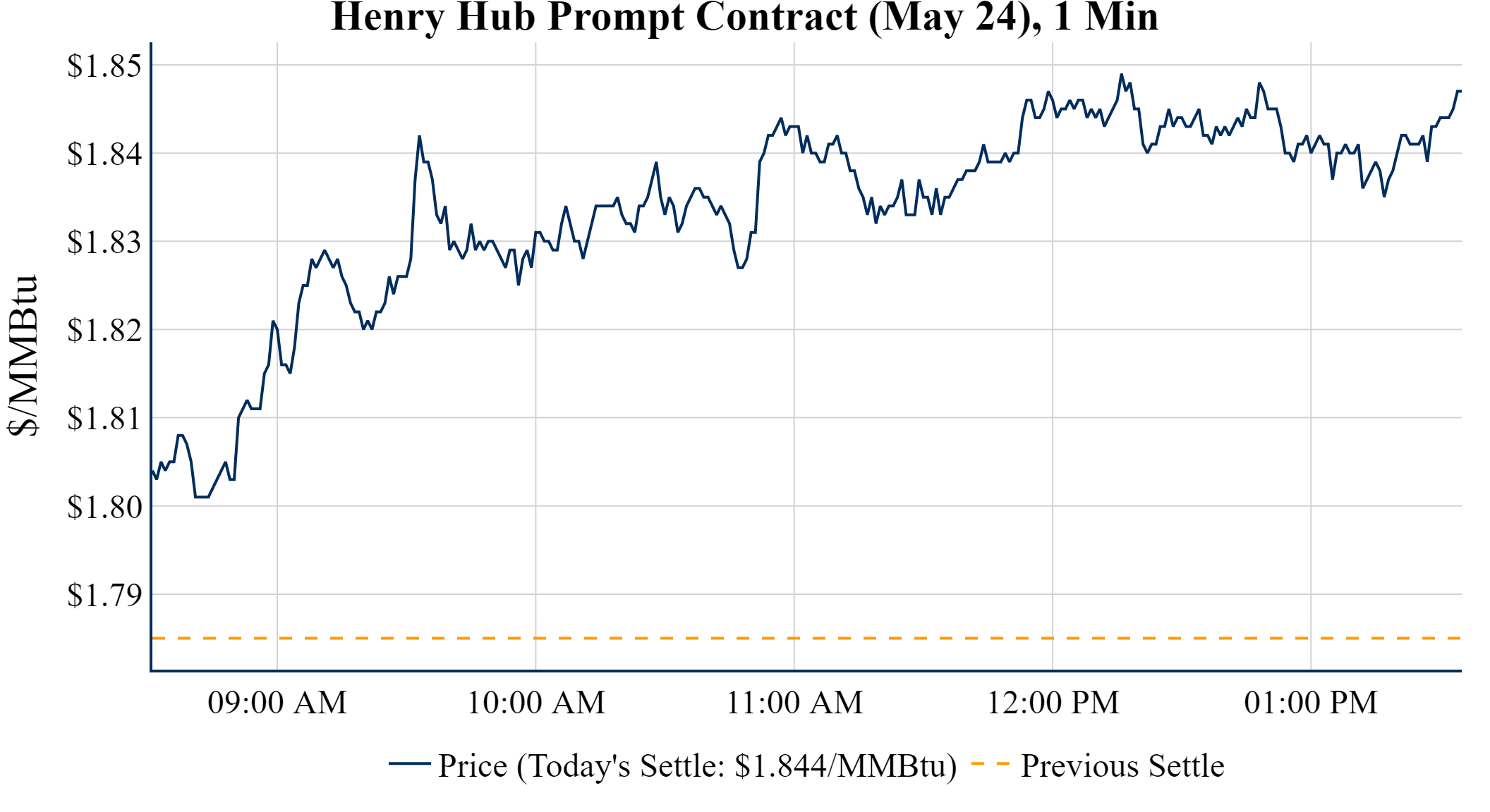 Prompt-Month Henry Hub (May 24) was up $0.059 on the day, to settle at $1.844Prompt-Month WTI (May 24) was down $-0.48 on the day, to settle at $86.43
