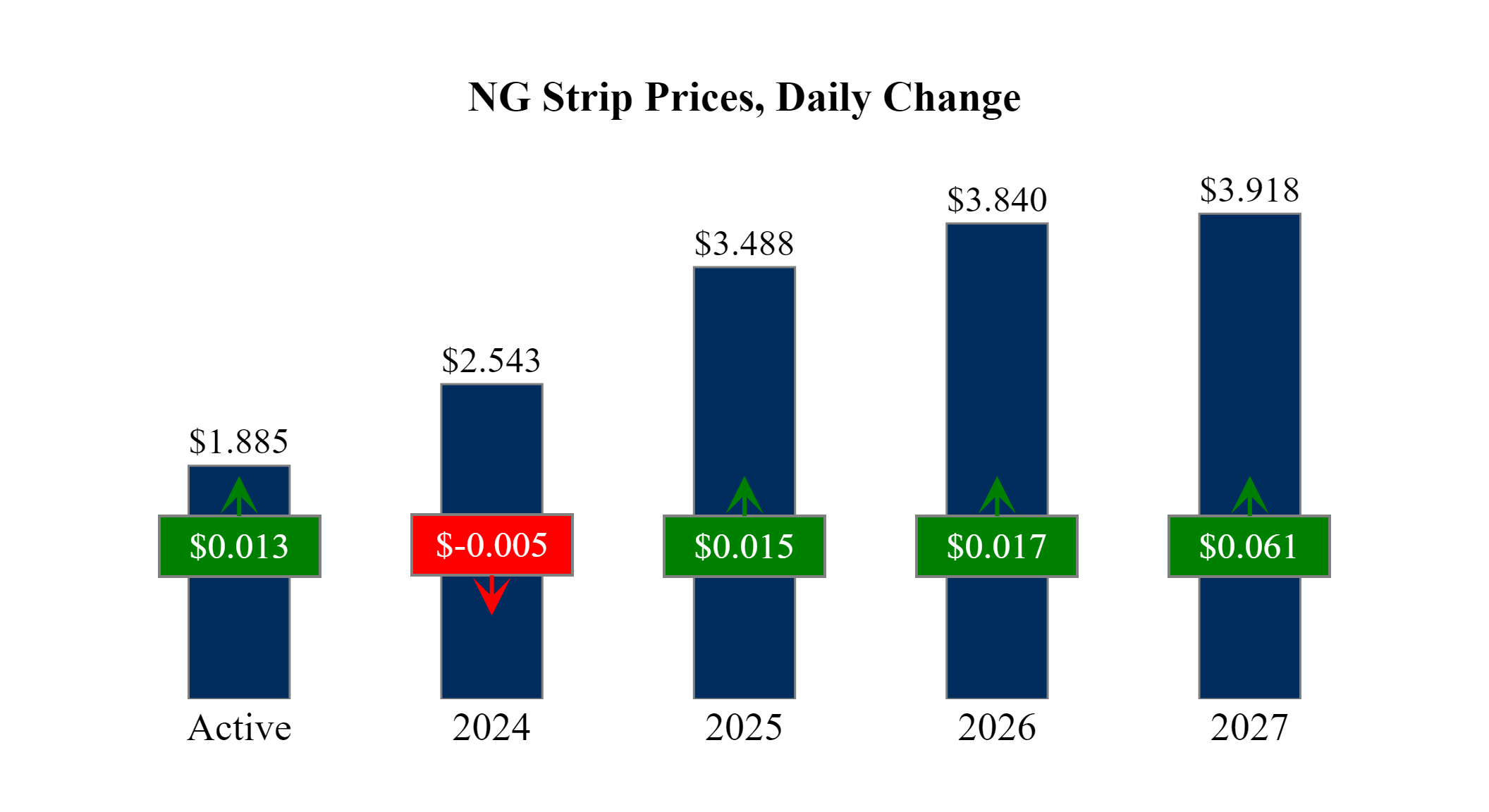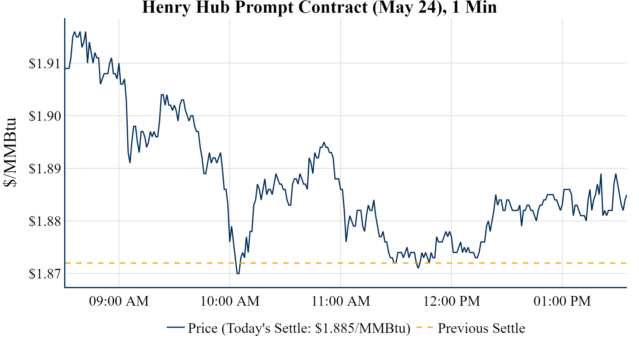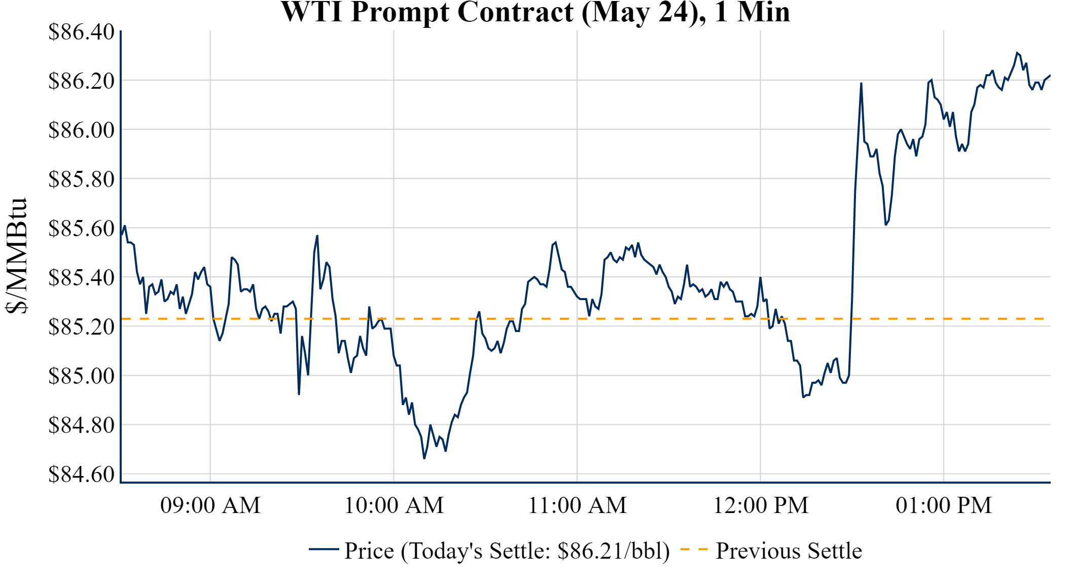 Prompt-Month Henry Hub (May 24) was up $0.013 on the day, to settle at $1.885Prompt-Month WTI (May 24) was up $0.98 on the day, to settle at $86.21