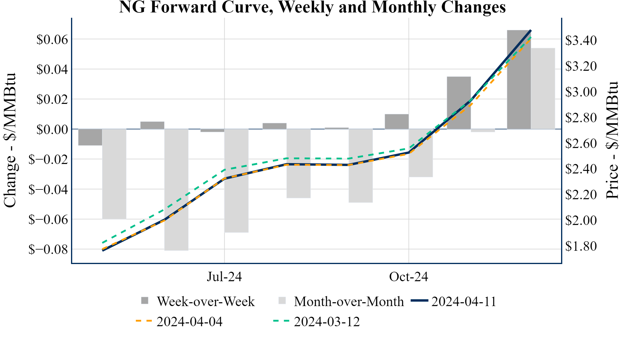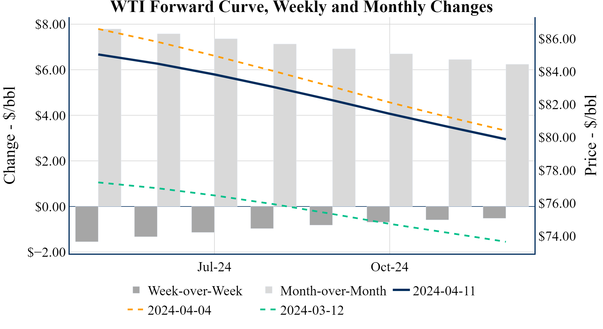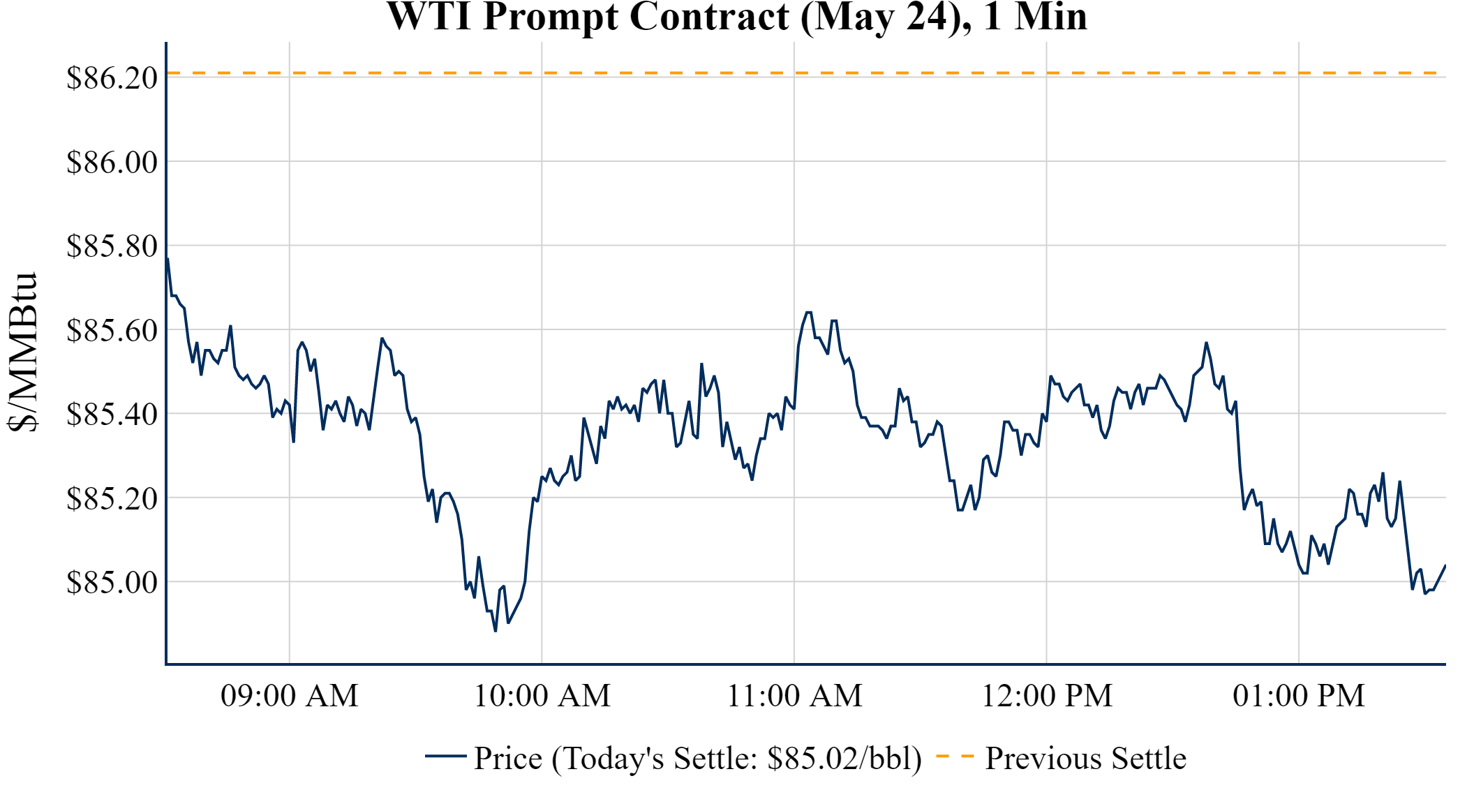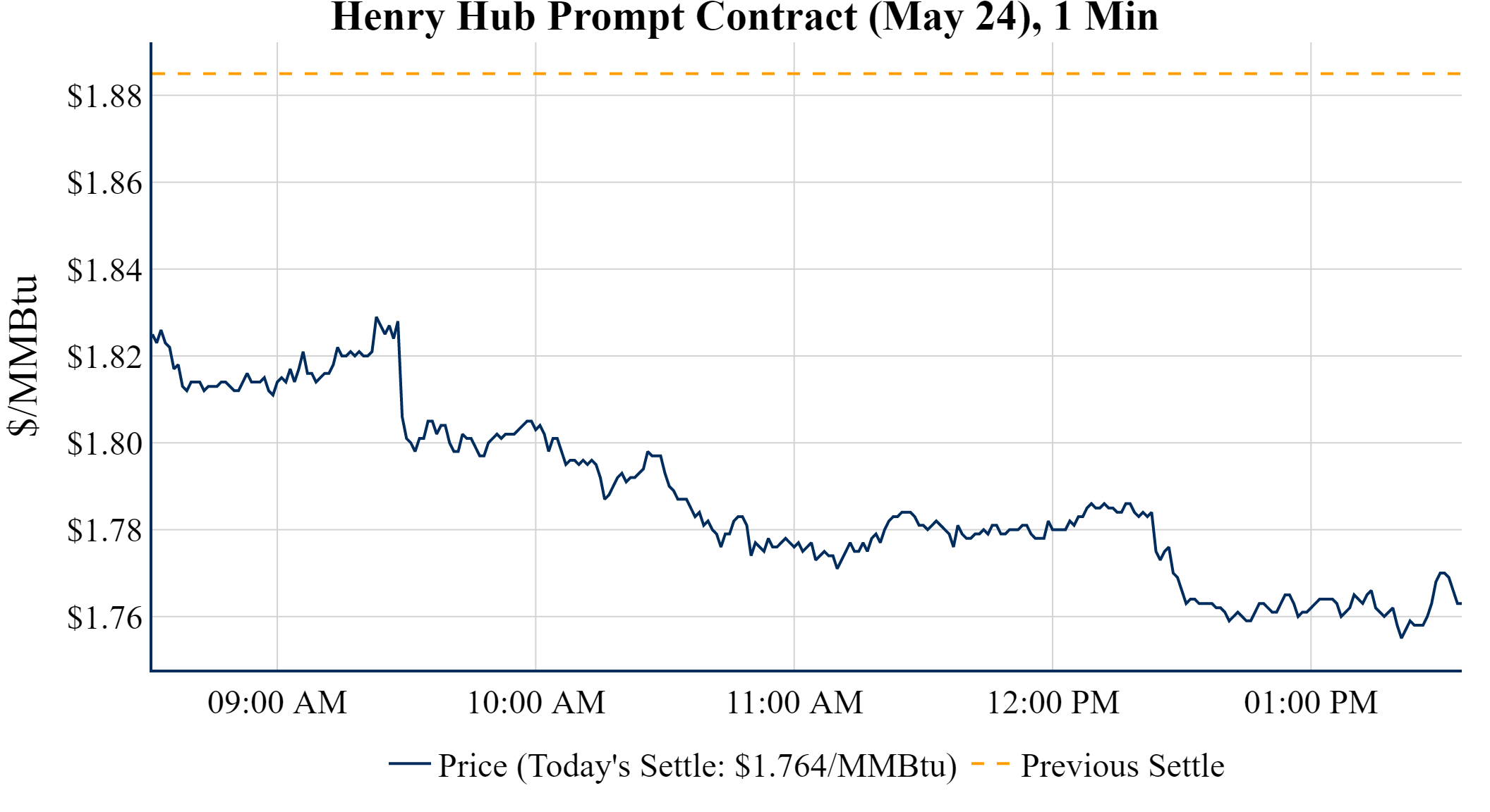 Prompt-Month Henry Hub (May 24) was down $-0.121 on the day, to settle at $1.764Prompt-Month WTI (May 24) was down $-1.19 on the day, to settle at $85.02
