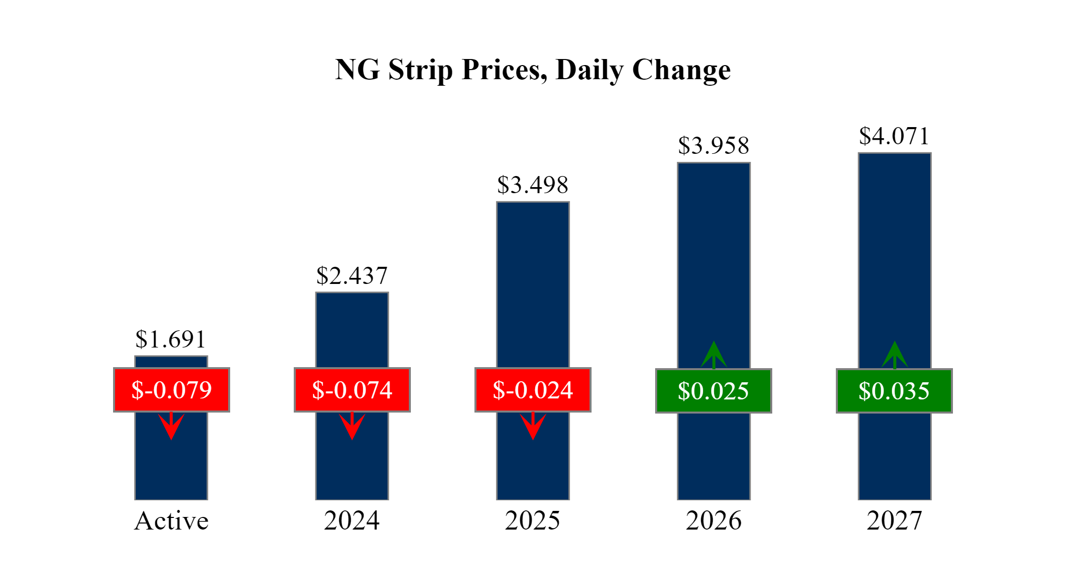 Prompt-Month Henry Hub (May 24) was down $-0.079 on the day, to settle at $1.691Prompt-Month WTI (May 24) was down $-0.25 on the day, to settle at $85.41