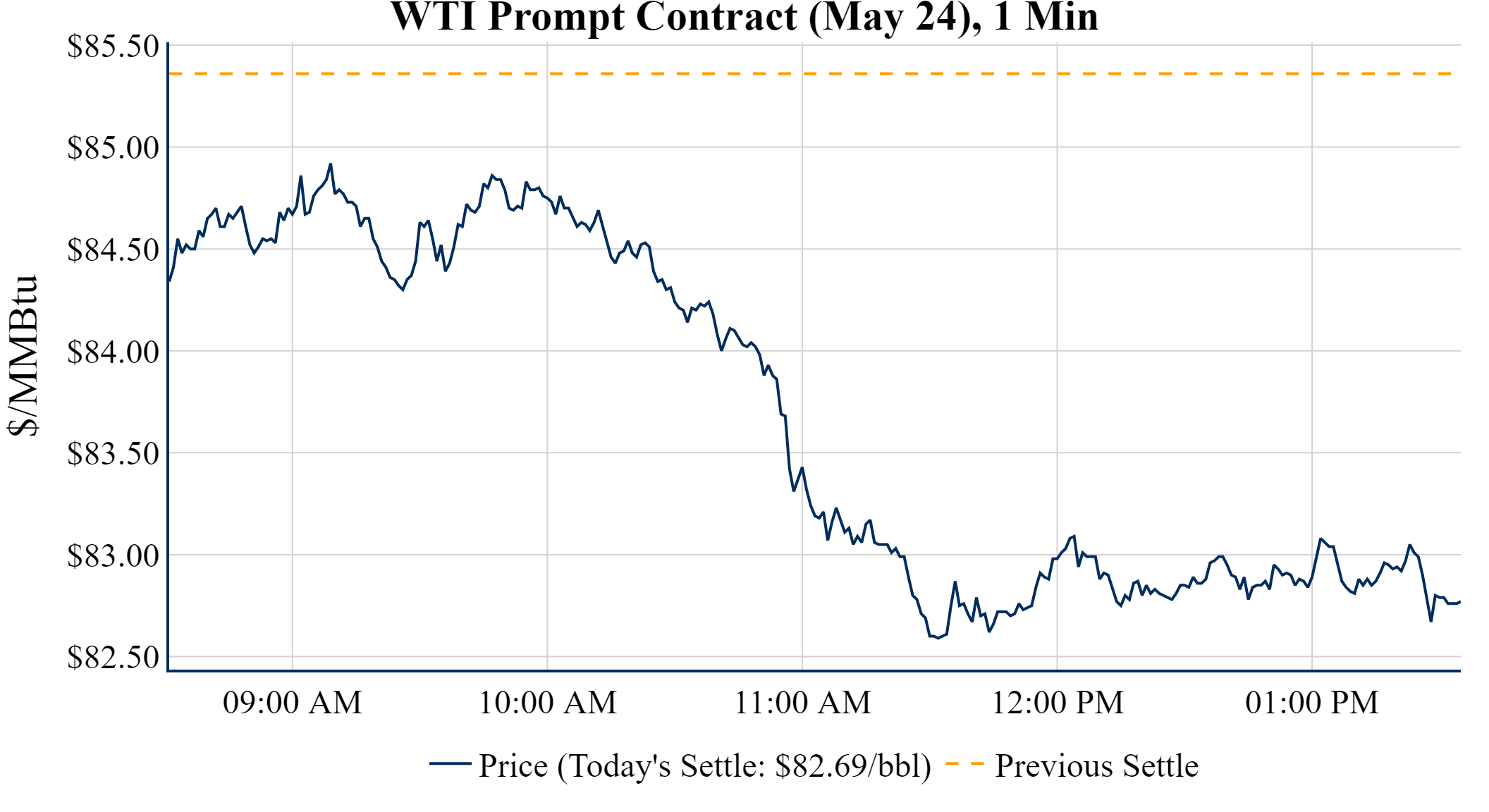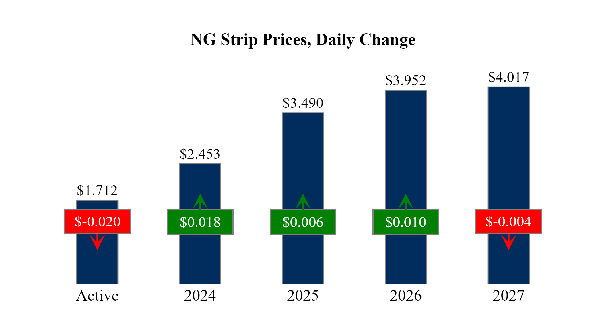 Prompt-Month Henry Hub (May 24) was down $-0.020 on the day, to settle at $1.712Prompt-Month WTI (May 24) was down $-2.67 on the day, to settle at $82.69