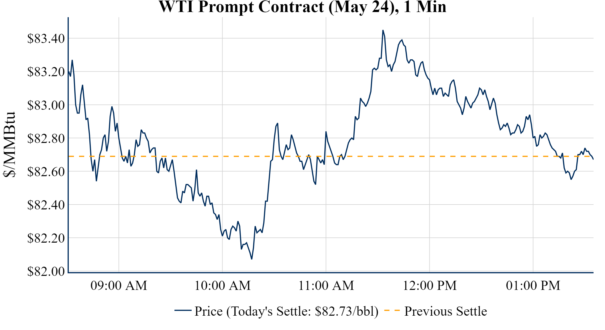 Prompt-Month WTI (May 24) was up $0.04 on the day, to settle at $82.73