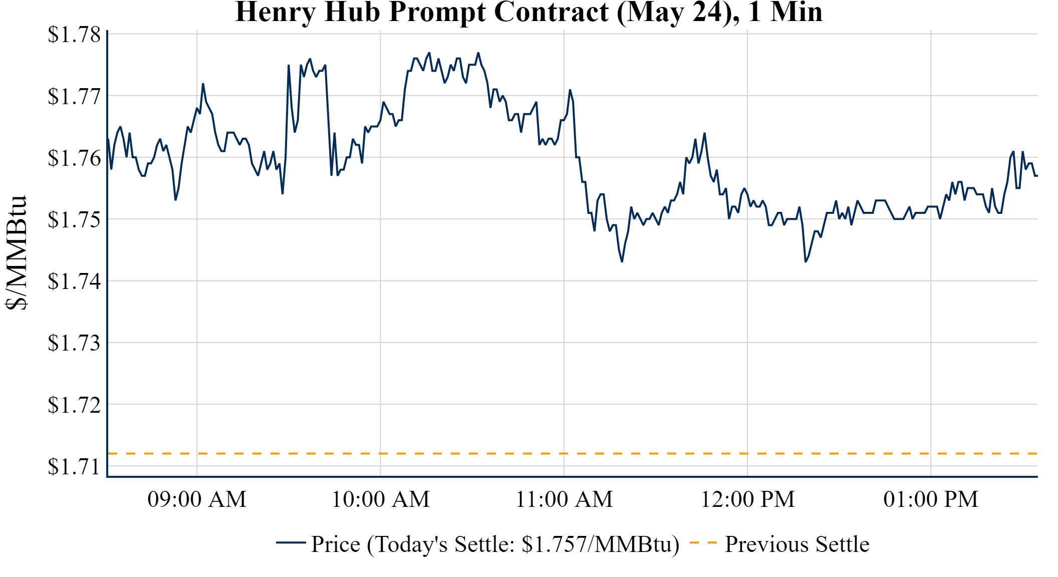 Prompt-Month Henry Hub (May 24) was up $0.045 on the day, to settle at $1.757