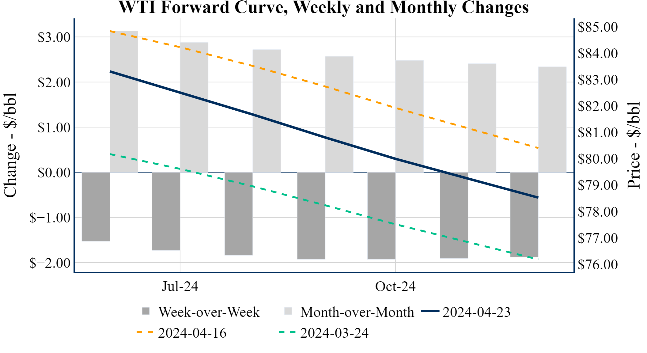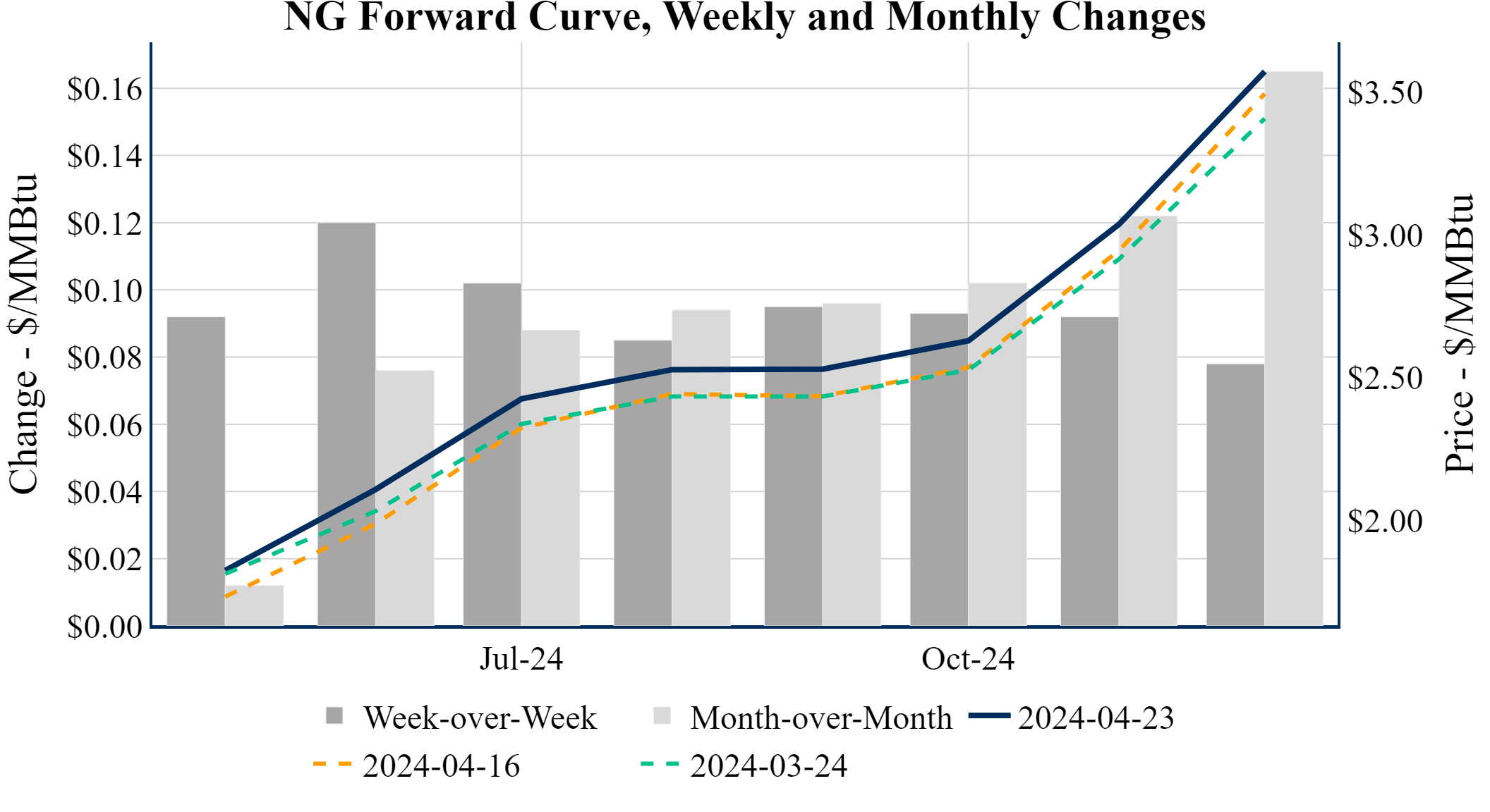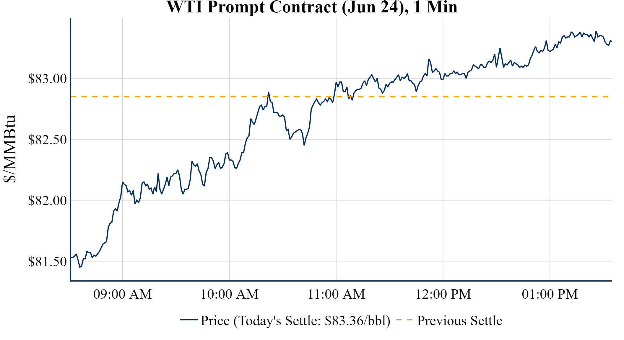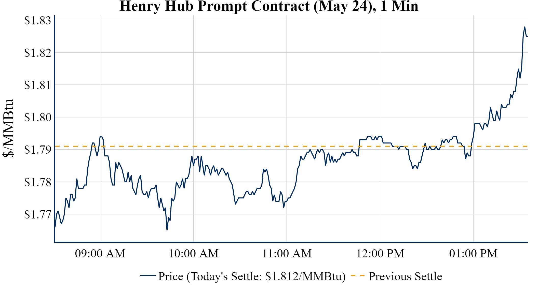 Prompt-Month Henry Hub (May 24) was up $0.021 on the day, to settle at $1.812Prompt-Month WTI (Jun 24) was up $1.46 on the day, to settle at $83.36