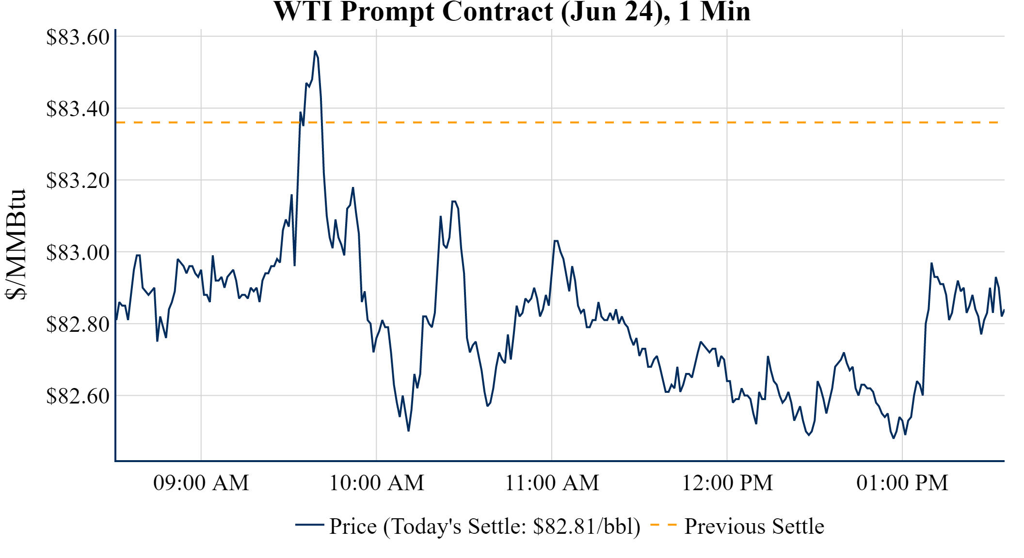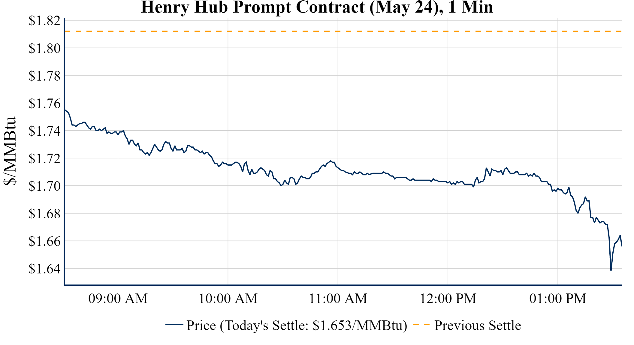 Prompt-Month Henry Hub (May 24) was down $-0.159 on the day, to settle at $1.653Prompt-Month WTI (Jun 24) was down $-0.55 on the day, to settle at $82.81