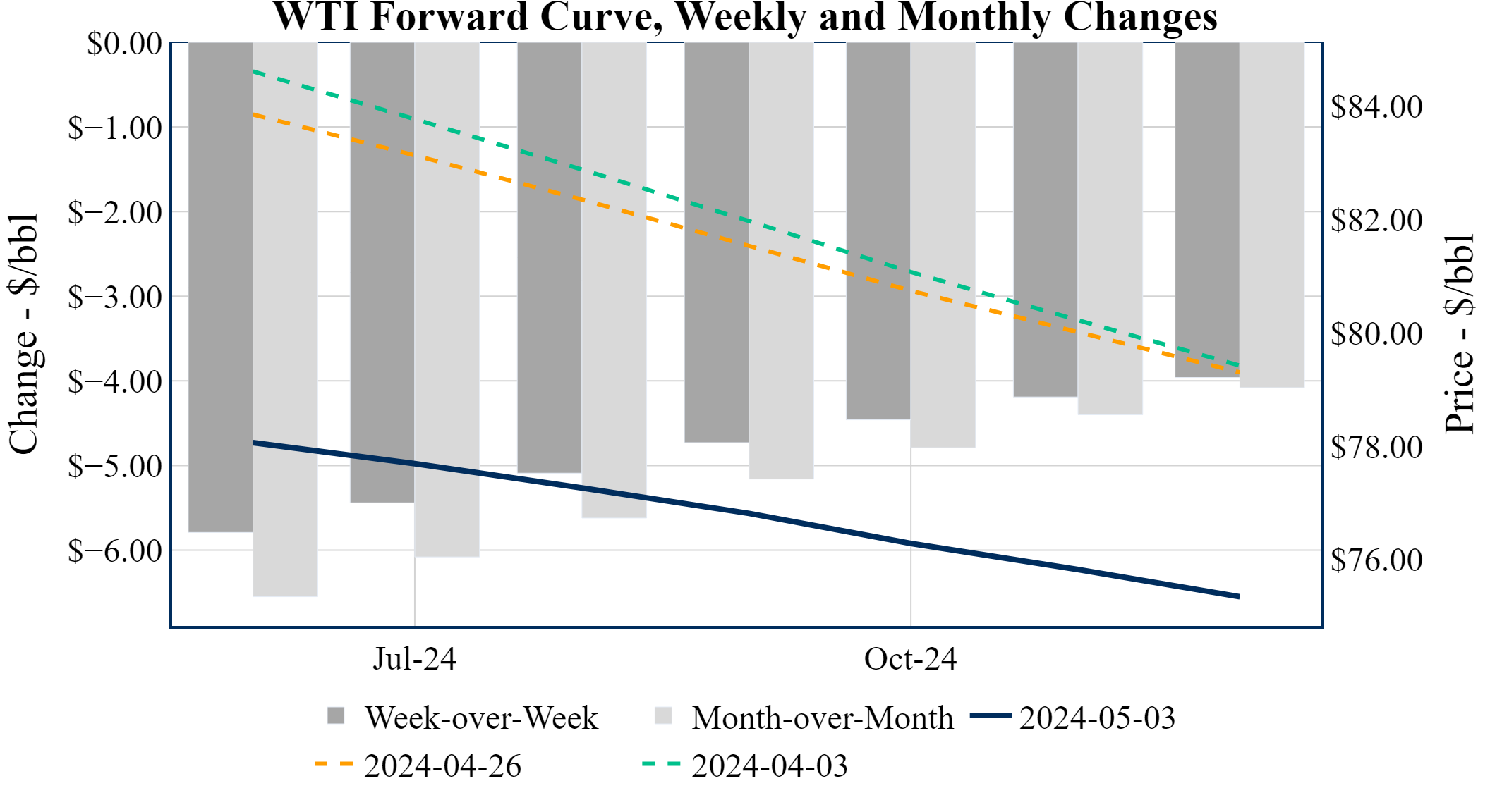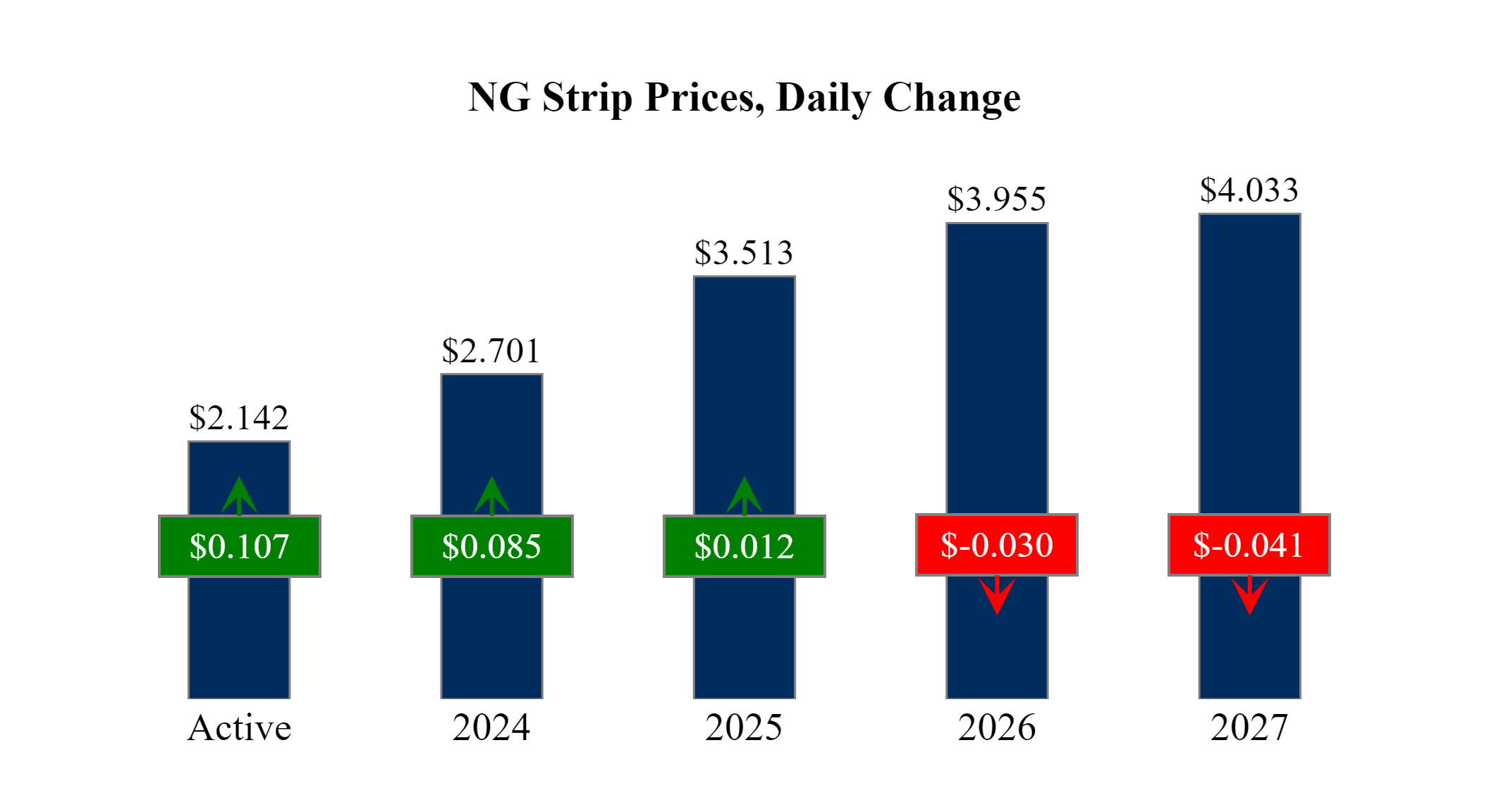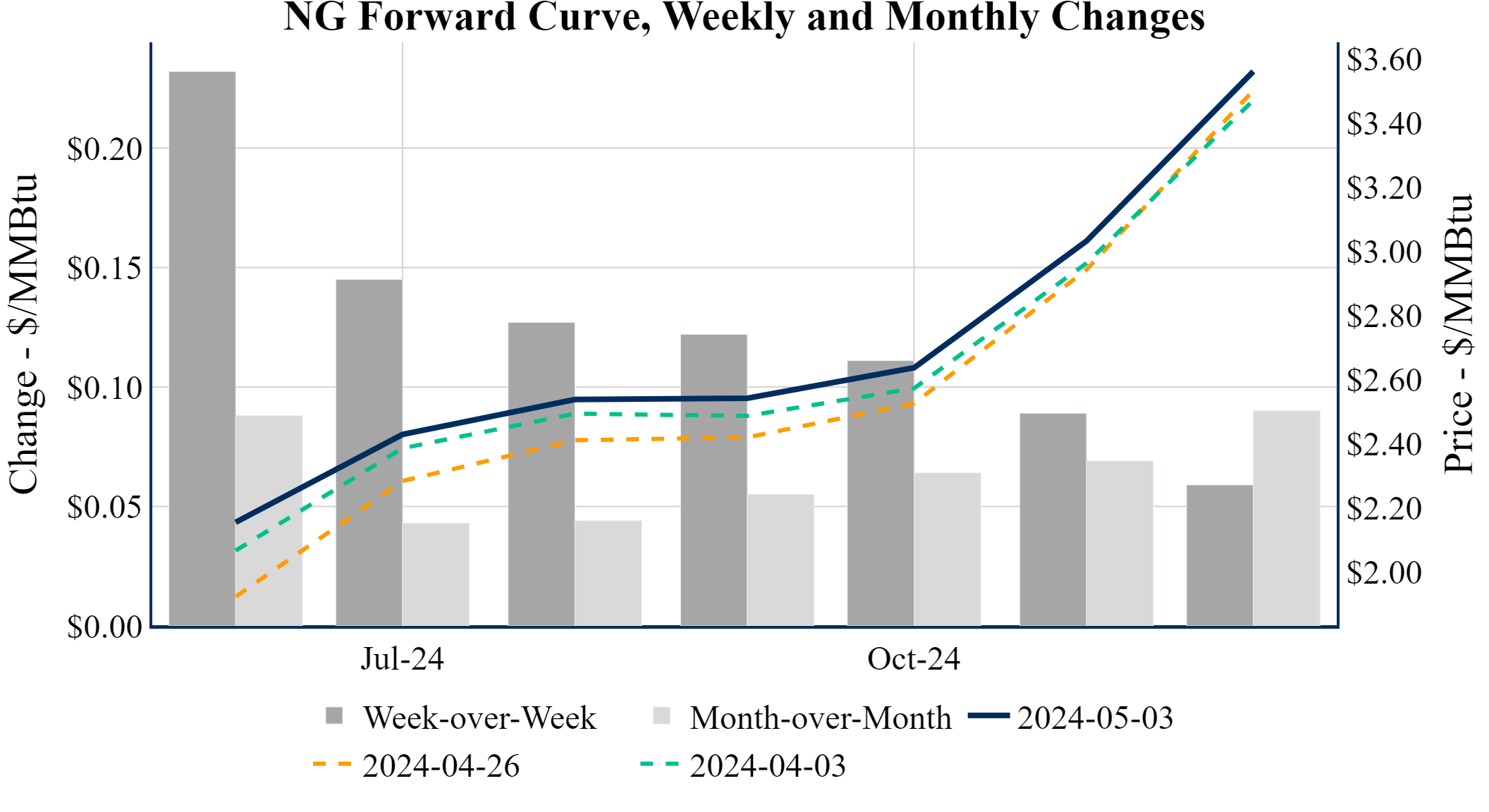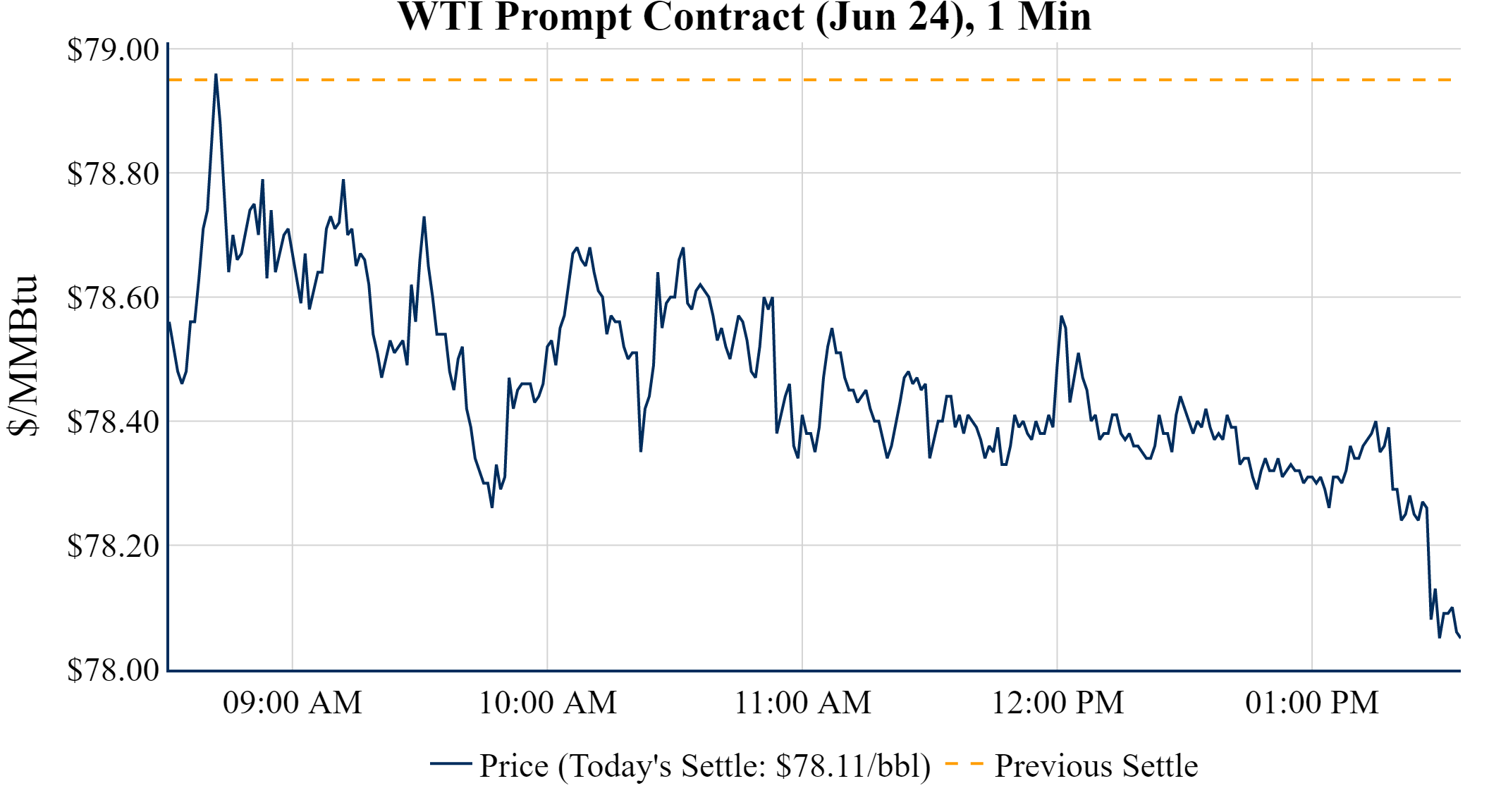 Prompt-Month Henry Hub (Jun 24) was up $0.107 on the day, to settle at $2.142 Prompt-Month WTI (Jun 24) was down $-0.84 on the day, to settle at $78.11