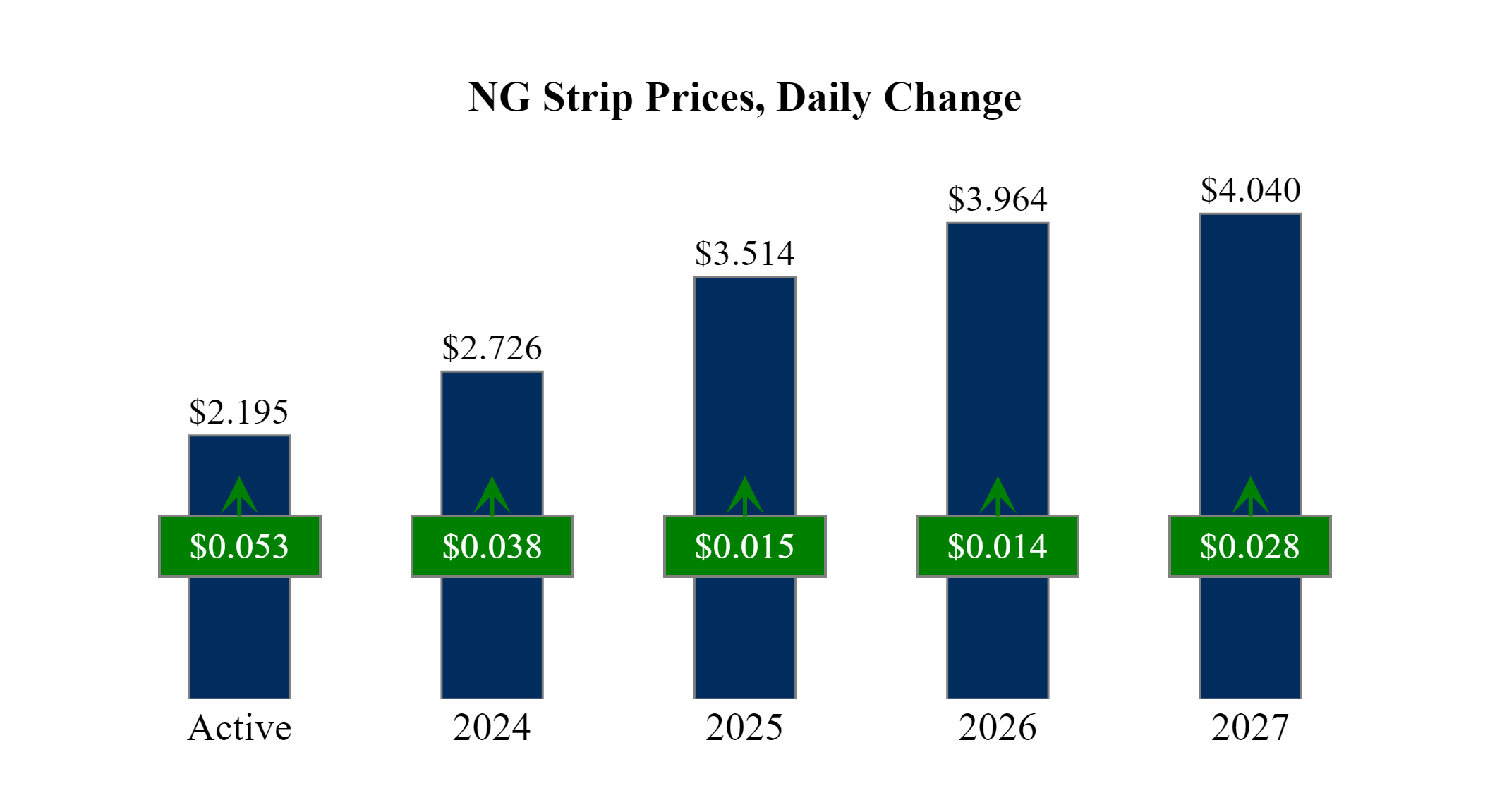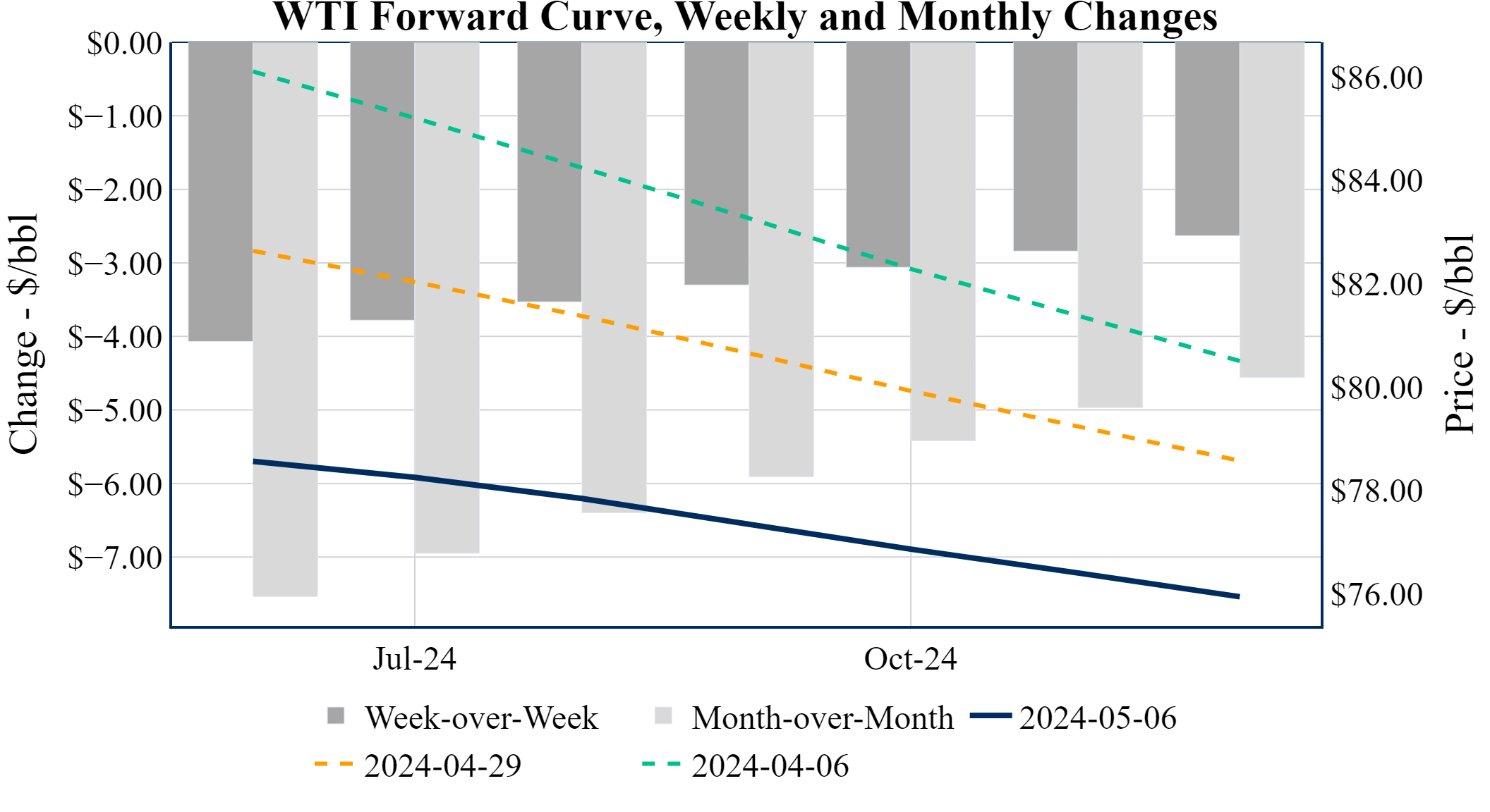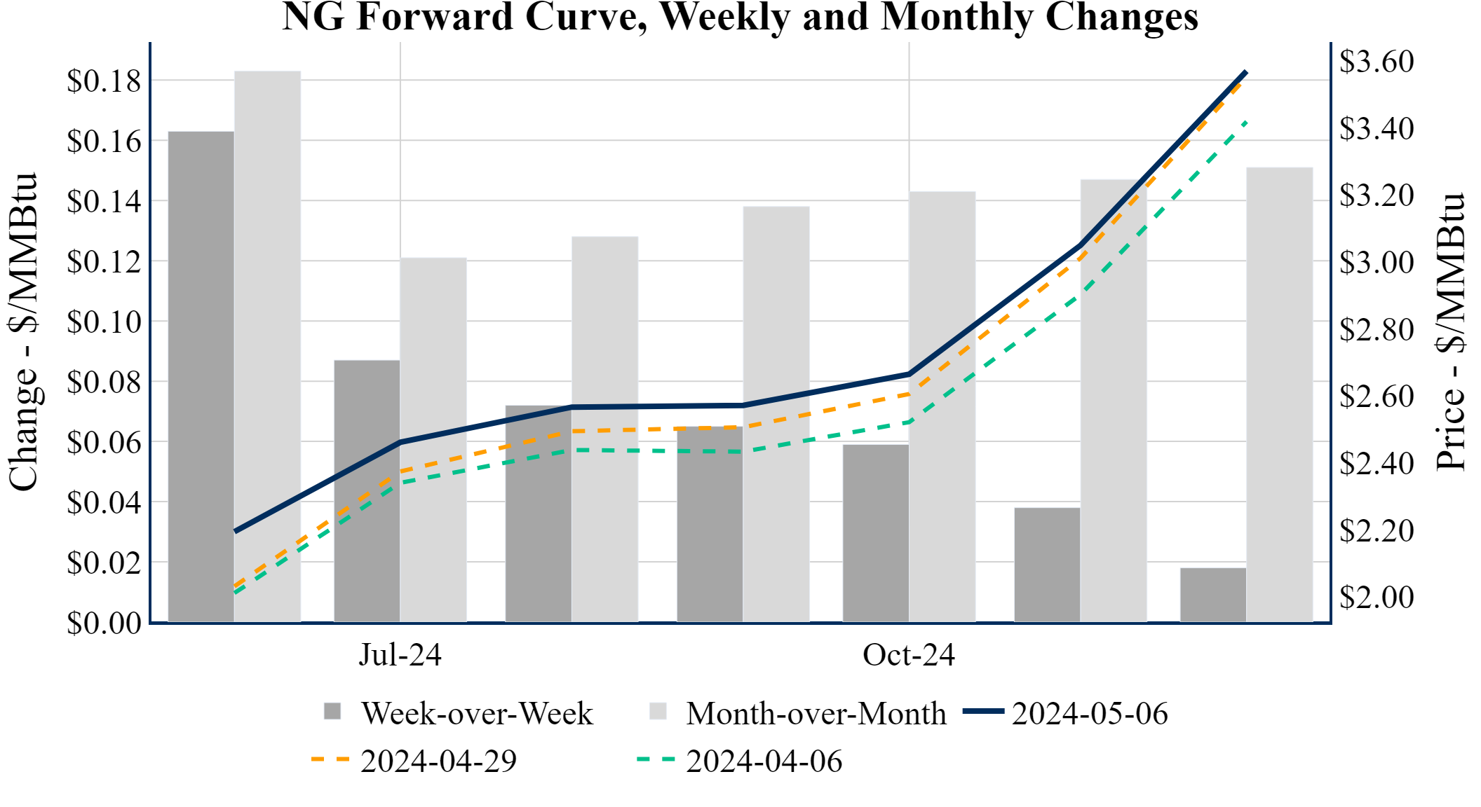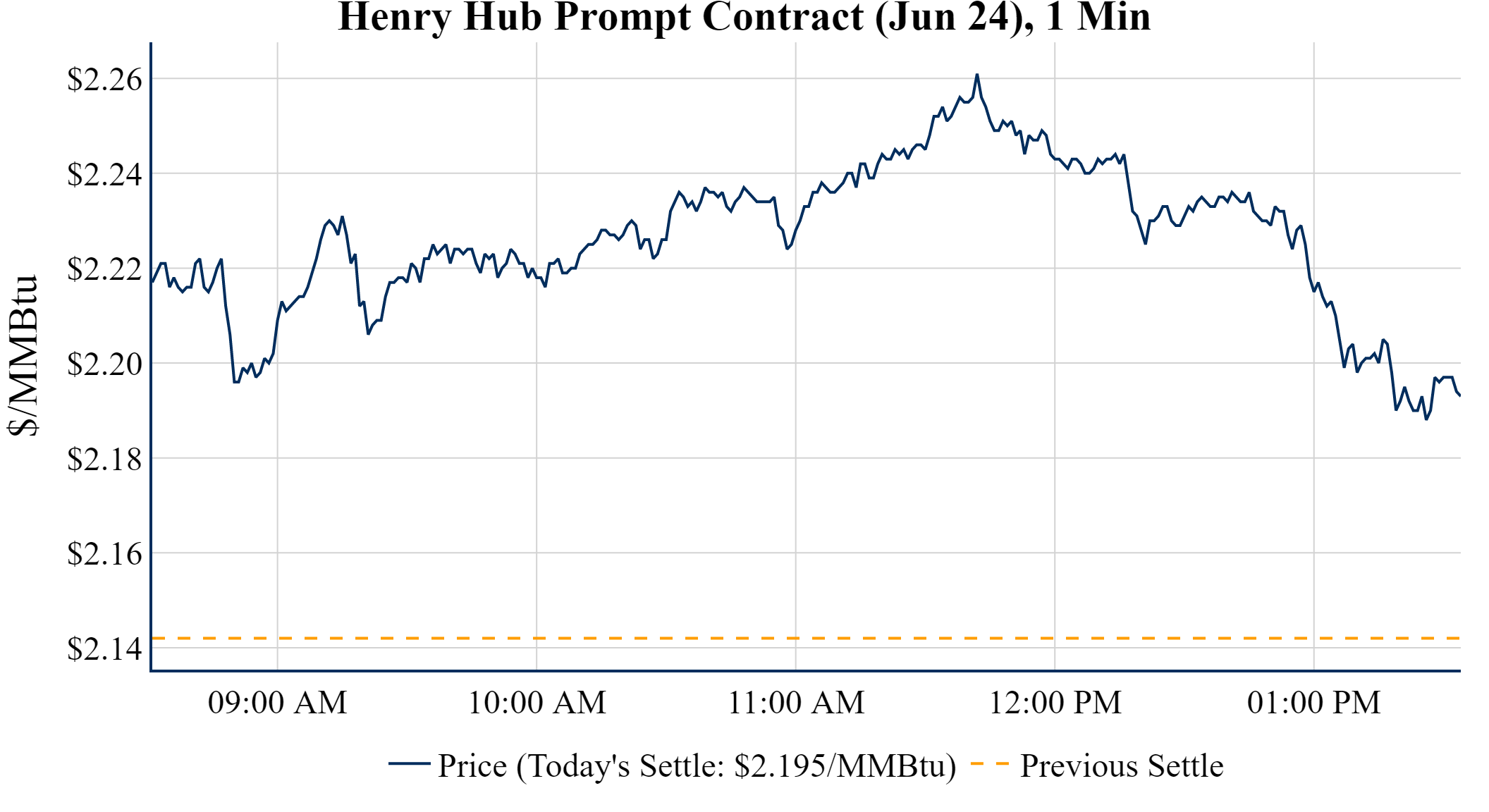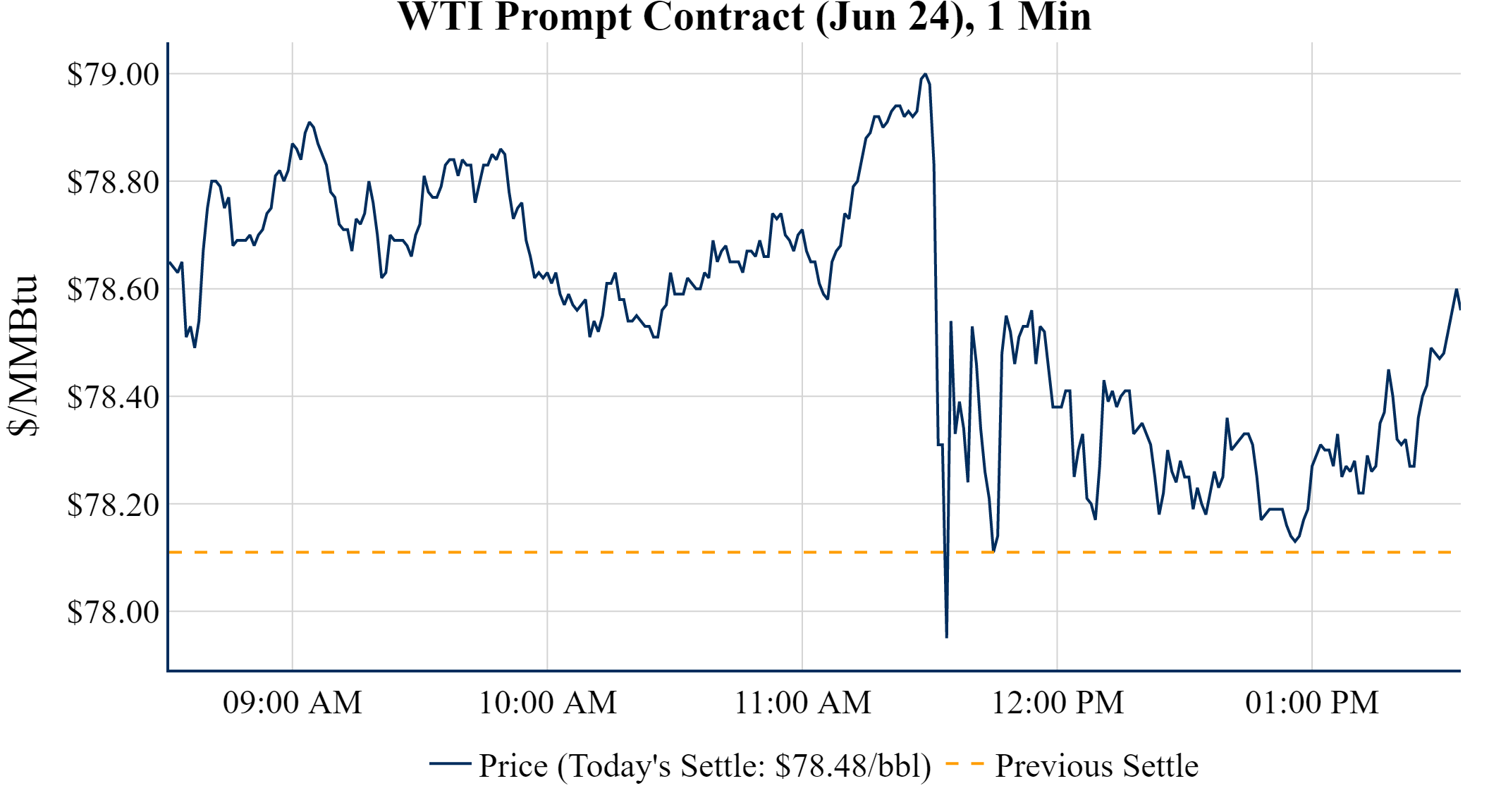 Prompt-Month Henry Hub (Jun 24) was up $0.053 on the day, to settle at $2.195Prompt-Month WTI (Jun 24) was up $0.37 on the day, to settle at $78.48
