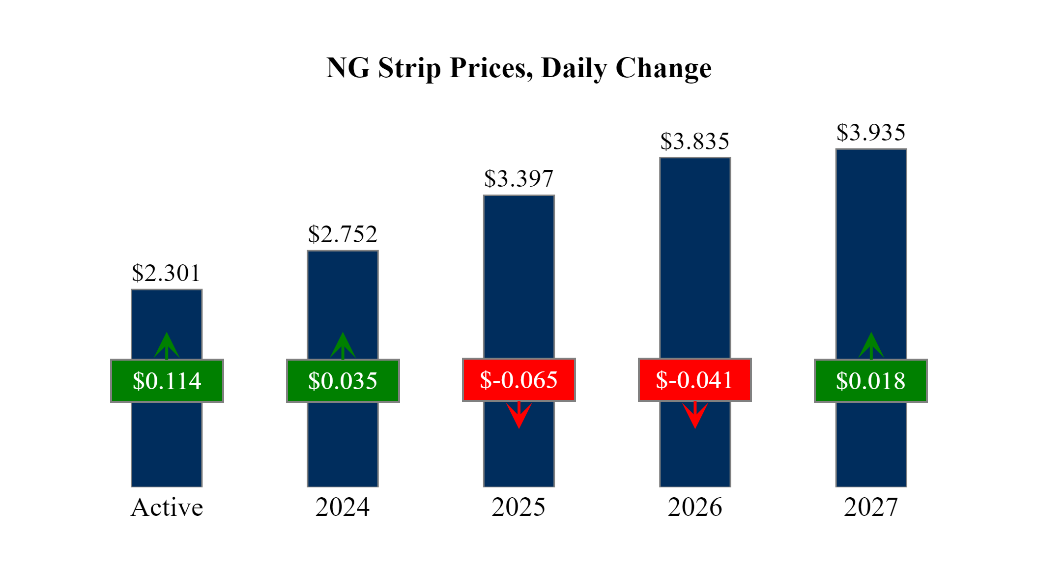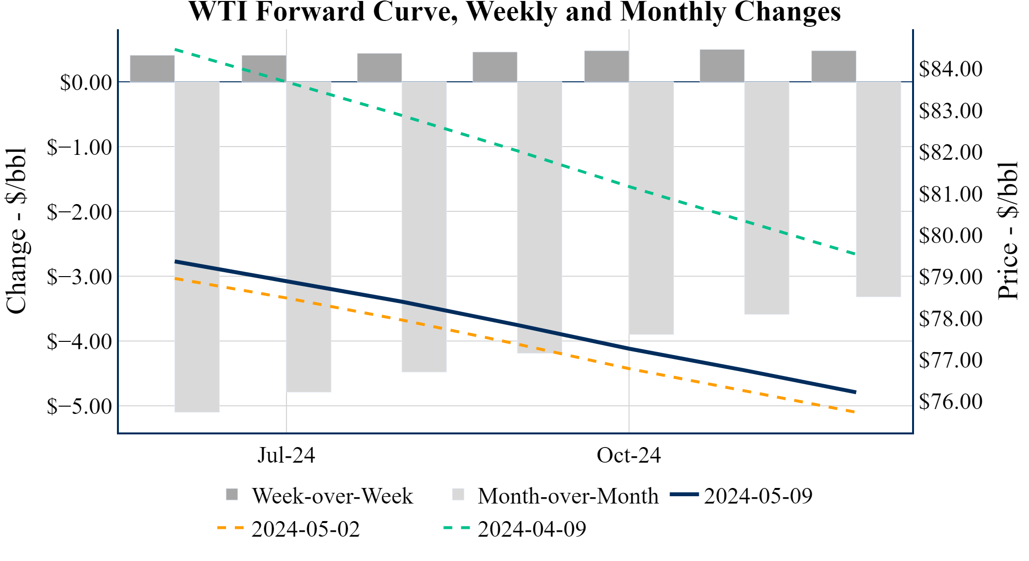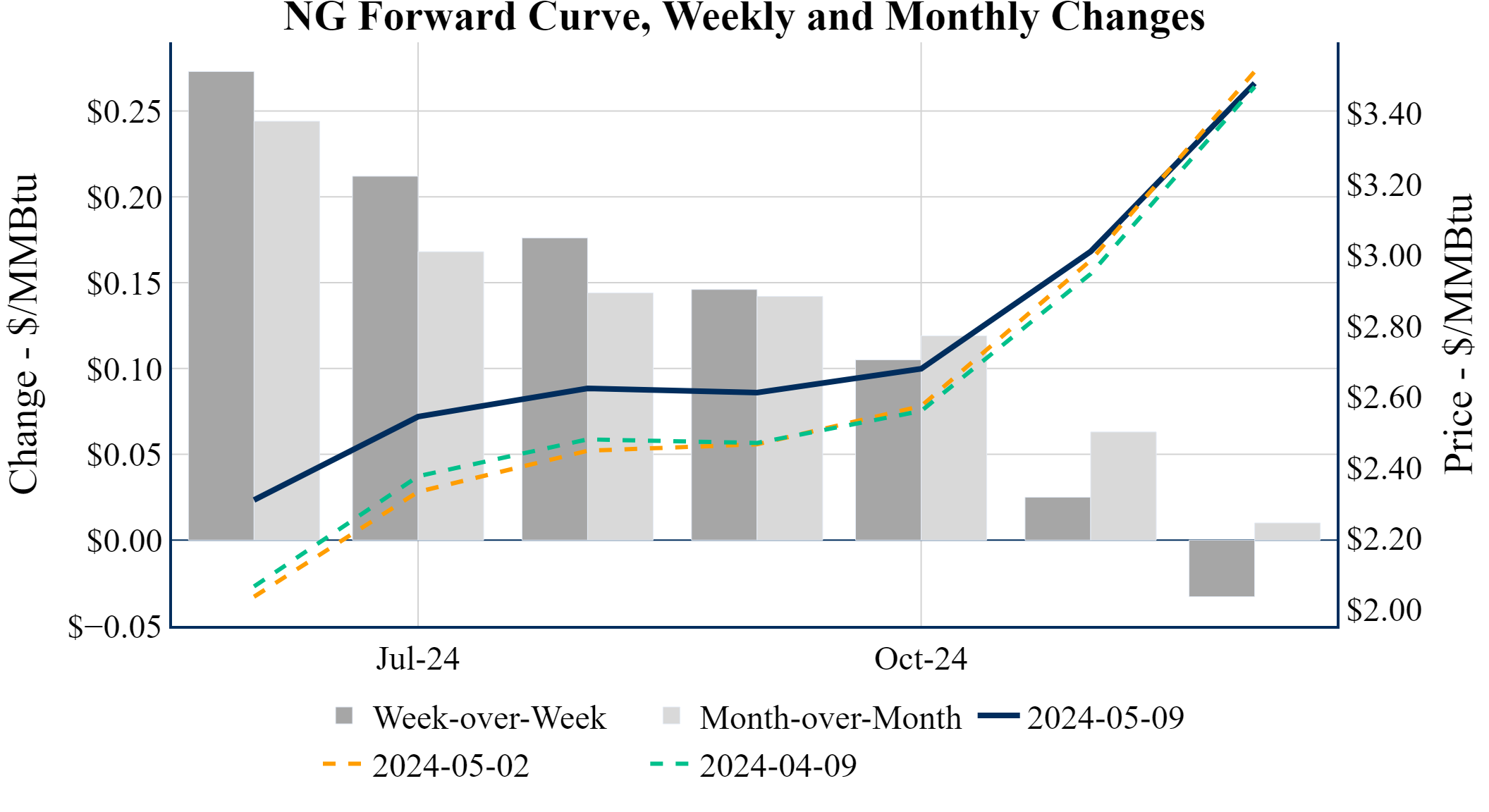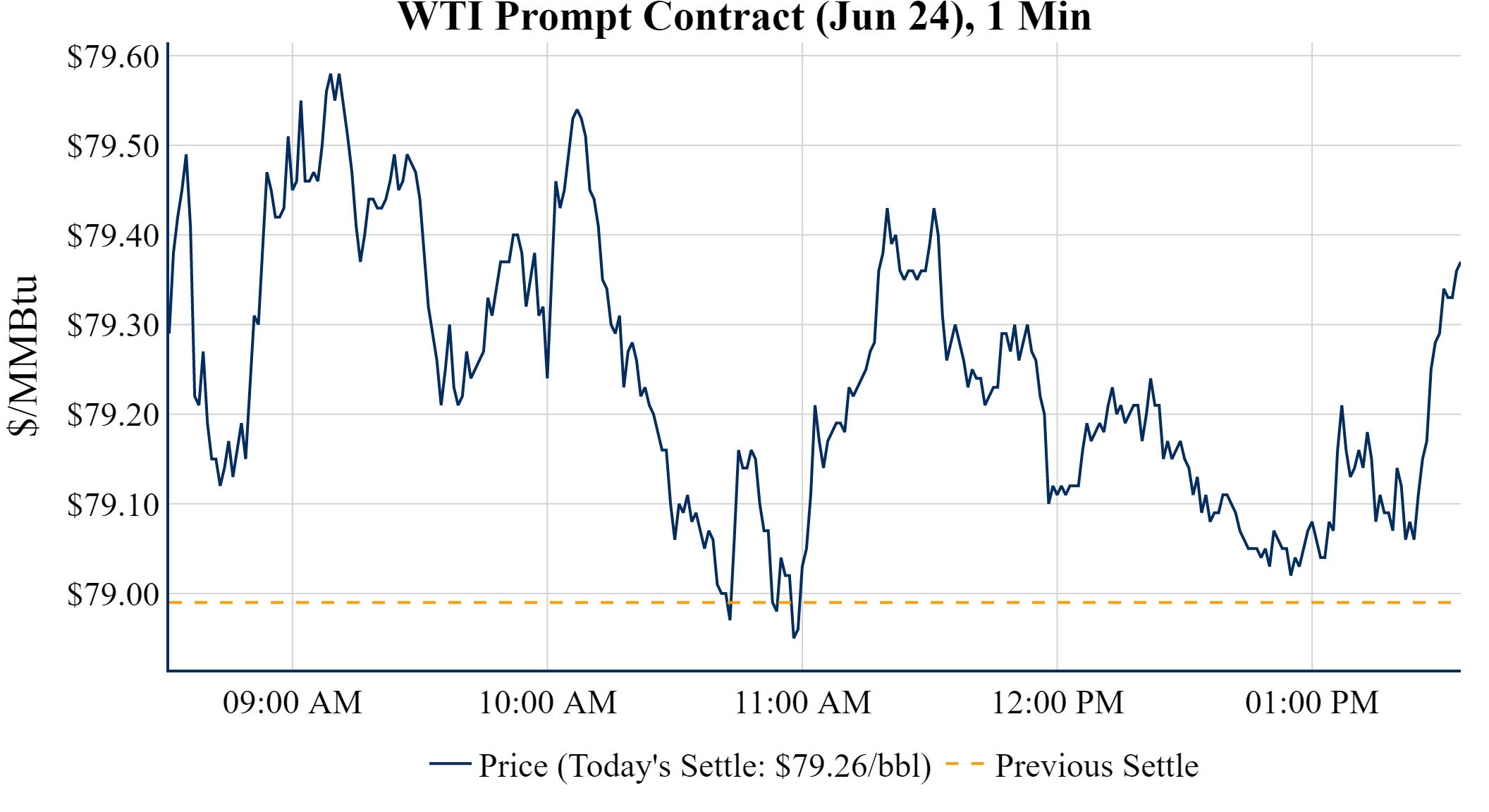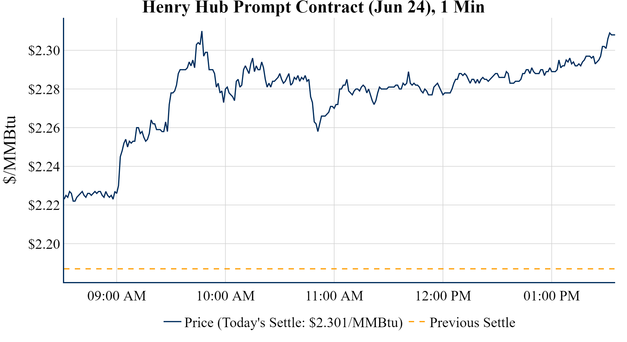 Prompt-Month Henry Hub (Jun 24) was up $0.114 on the day, to settle at $2.301Prompt-Month WTI (Jun 24) was up $0.27 on the day, to settle at $79.26