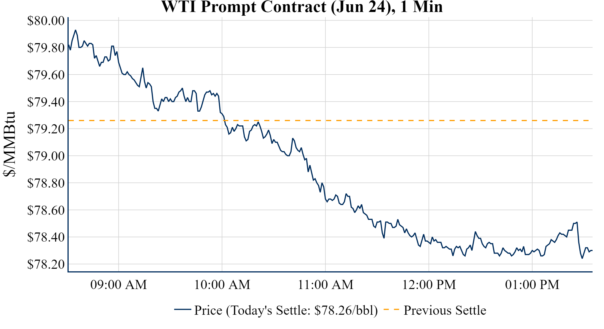 Prompt-Month Henry Hub (Jun 24) was down $-0.049 on the day, to settle at $2.252 Prompt-Month WTI (Jun 24) was down $-1.00 on the day, to settle at $78.26