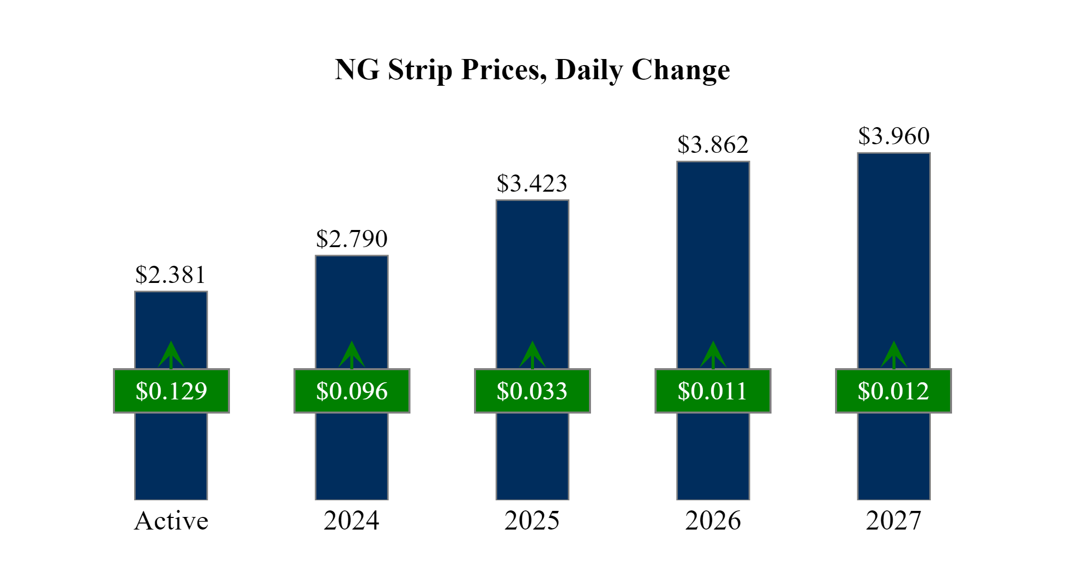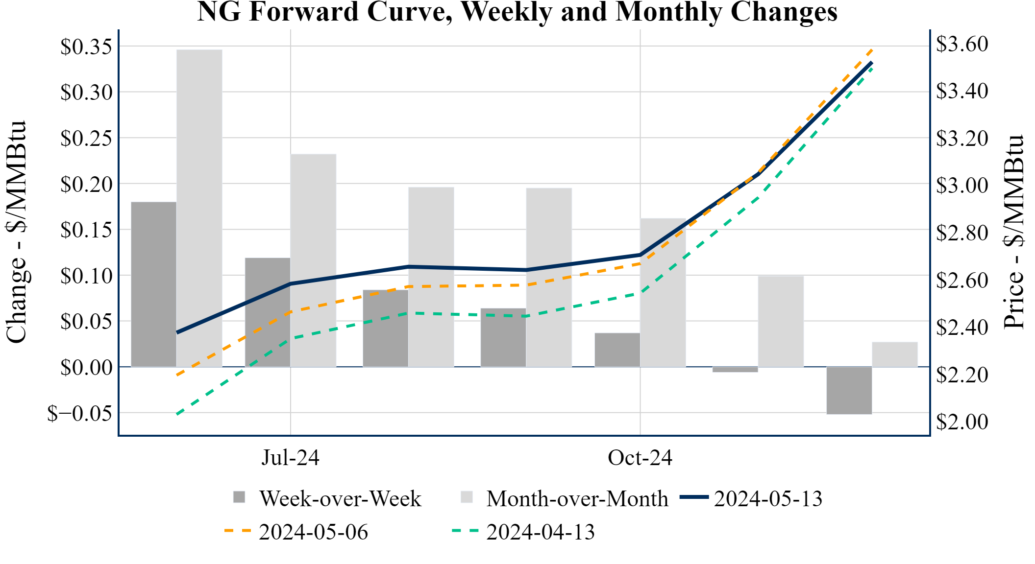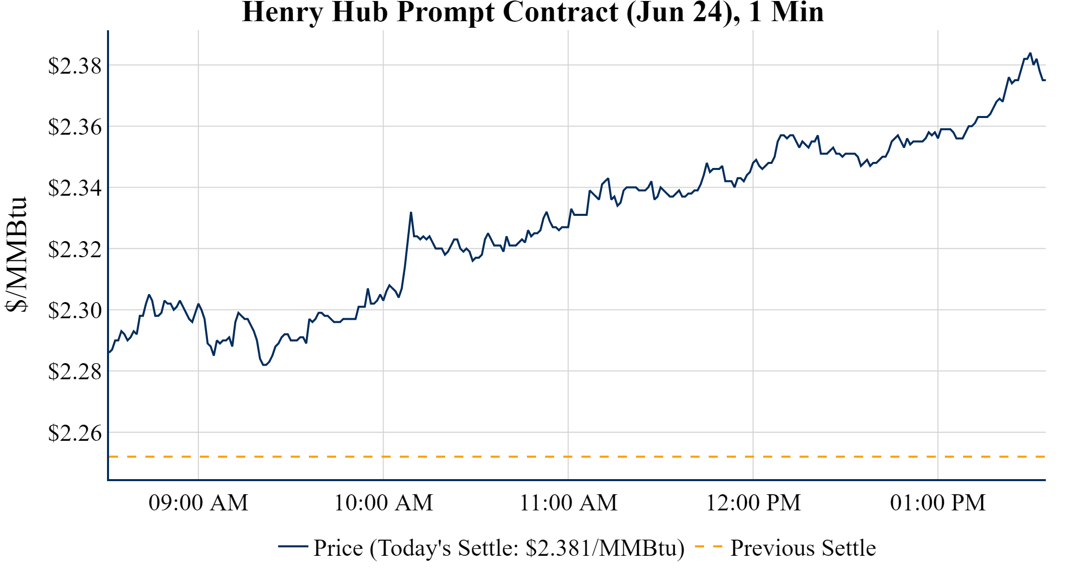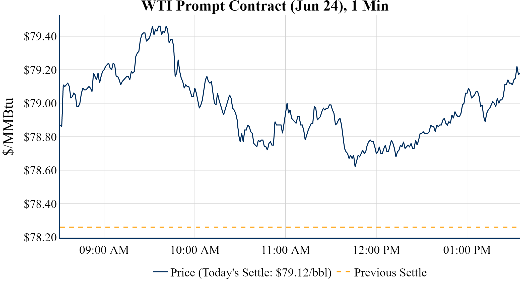 Prompt-Month Henry Hub (Jun 24) was up $0.129 on the day, to settle at $2.381Prompt-Month WTI (Jun 24) was up $0.86 on the day, to settle at $79.12