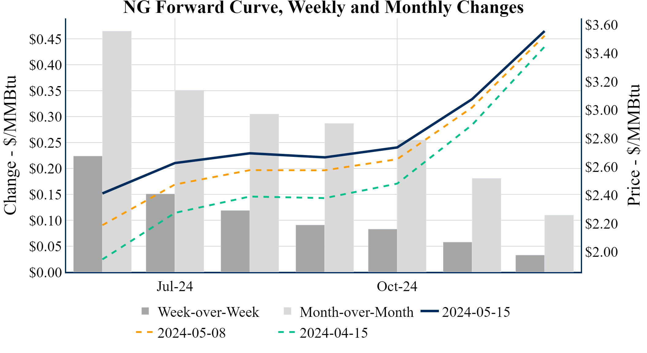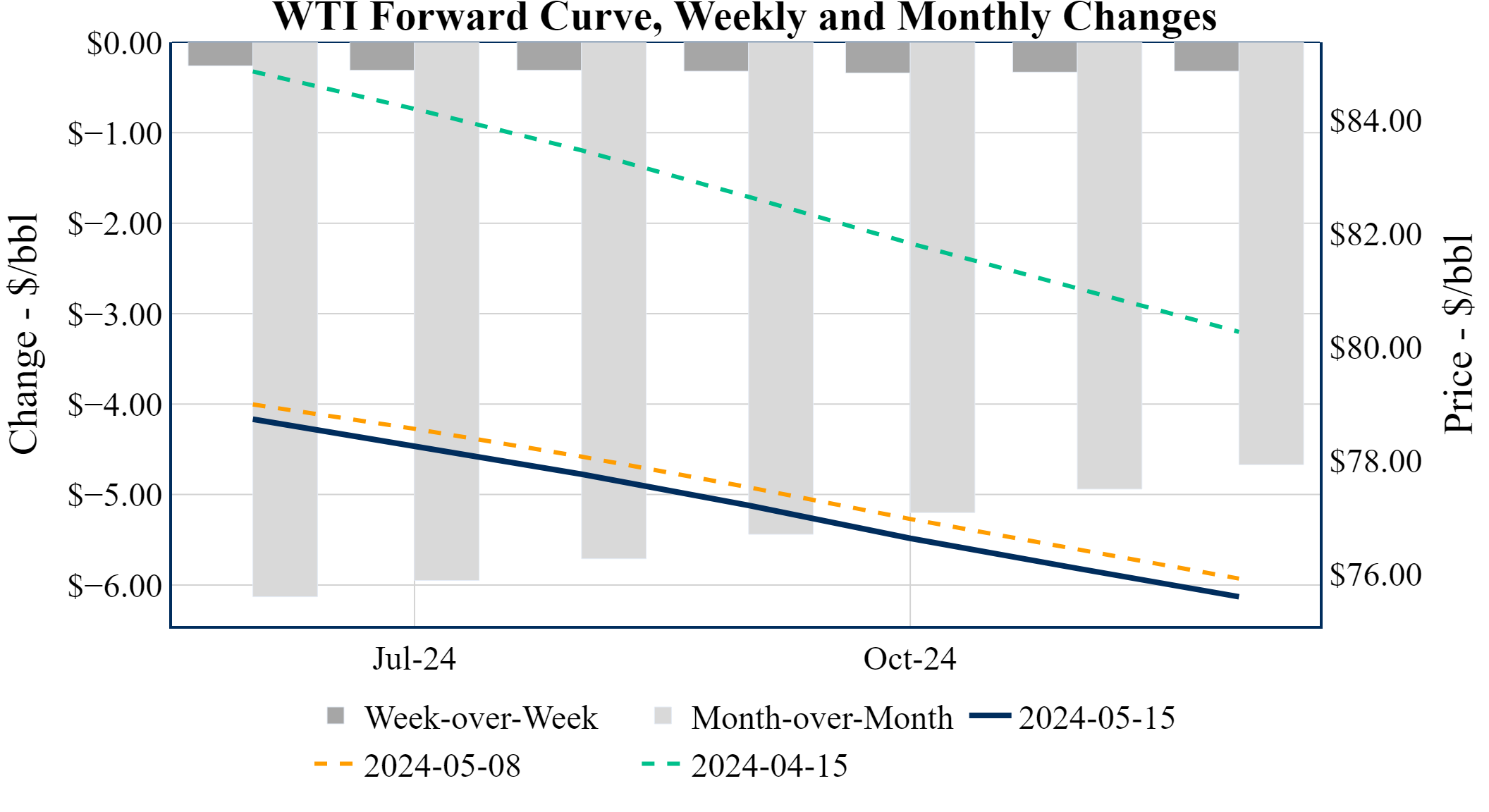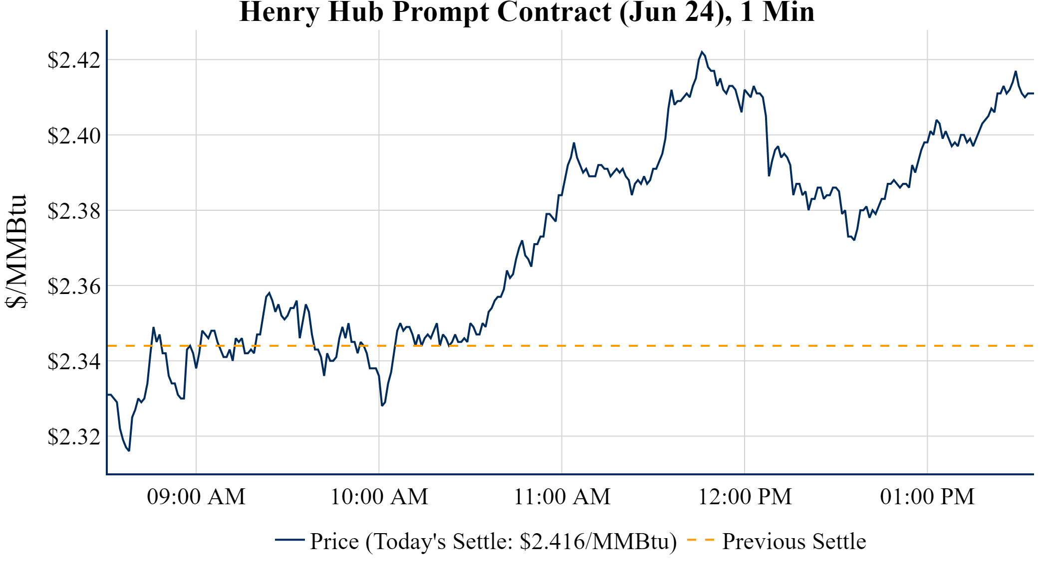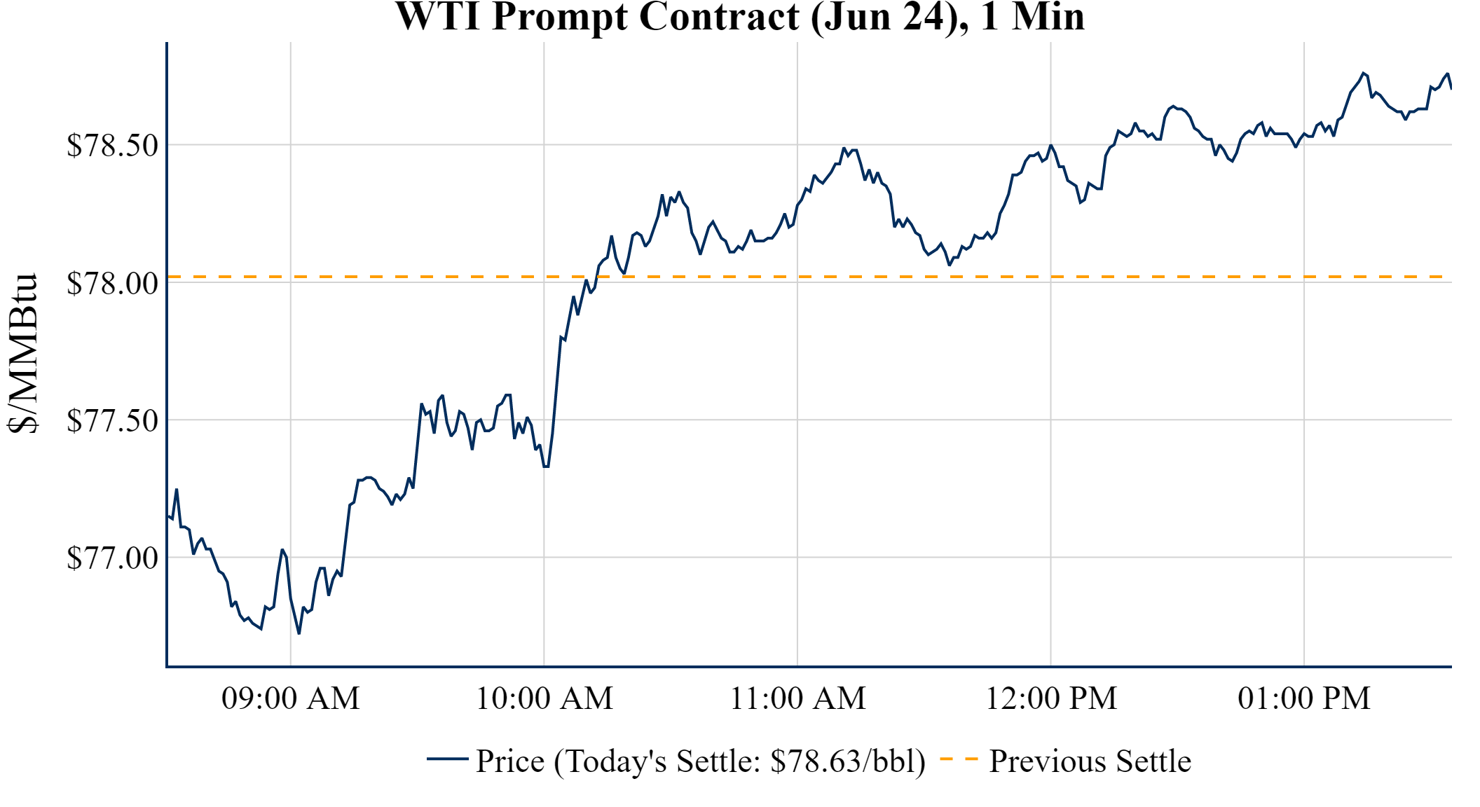 Prompt-Month Henry Hub (Jun 24) was up $0.072 on the day, to settle at $2.416Prompt-Month WTI (Jun 24) was up $0.61 on the day, to settle at $78.63
