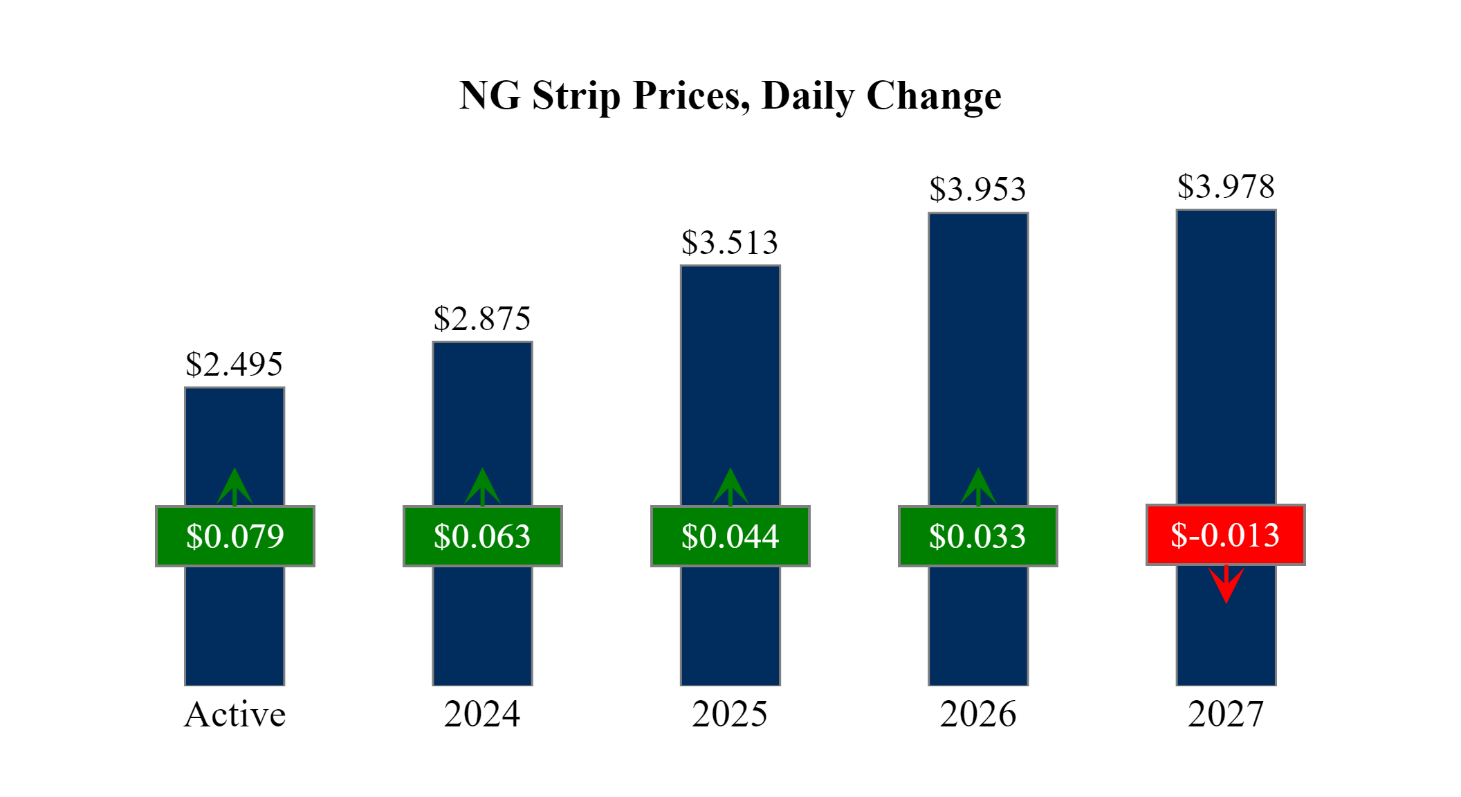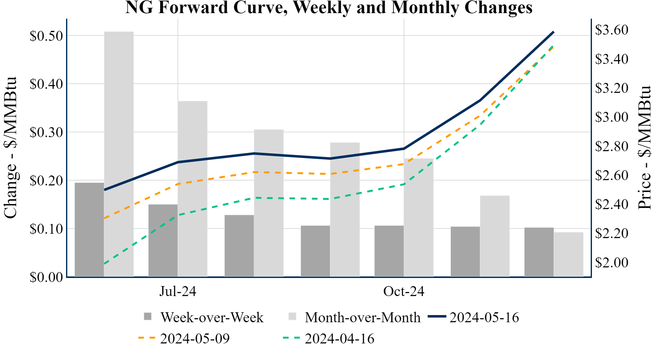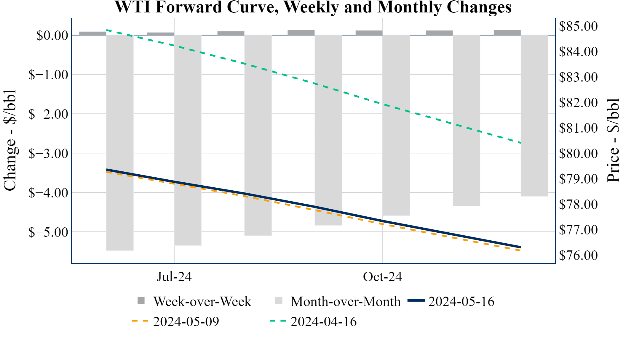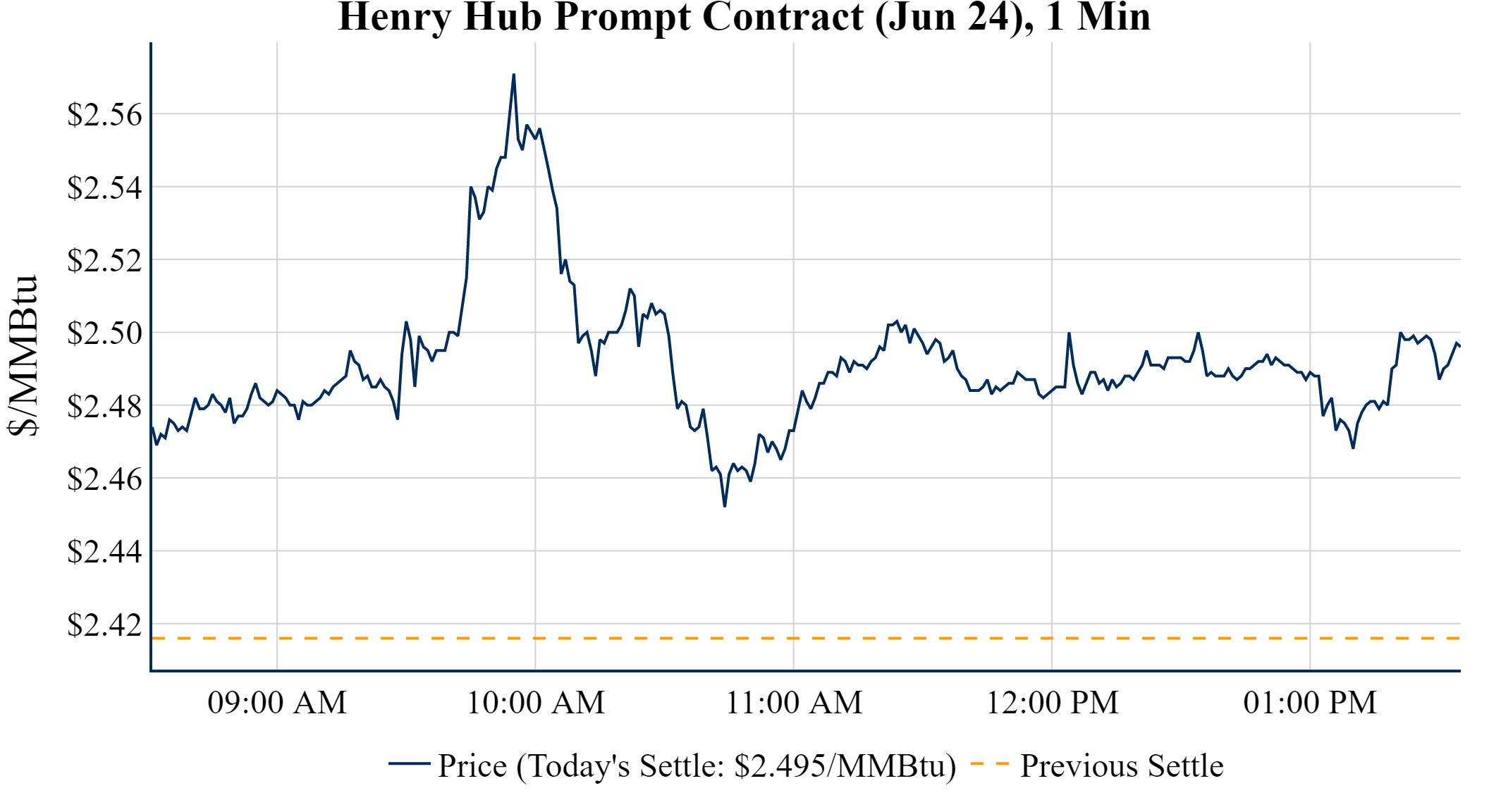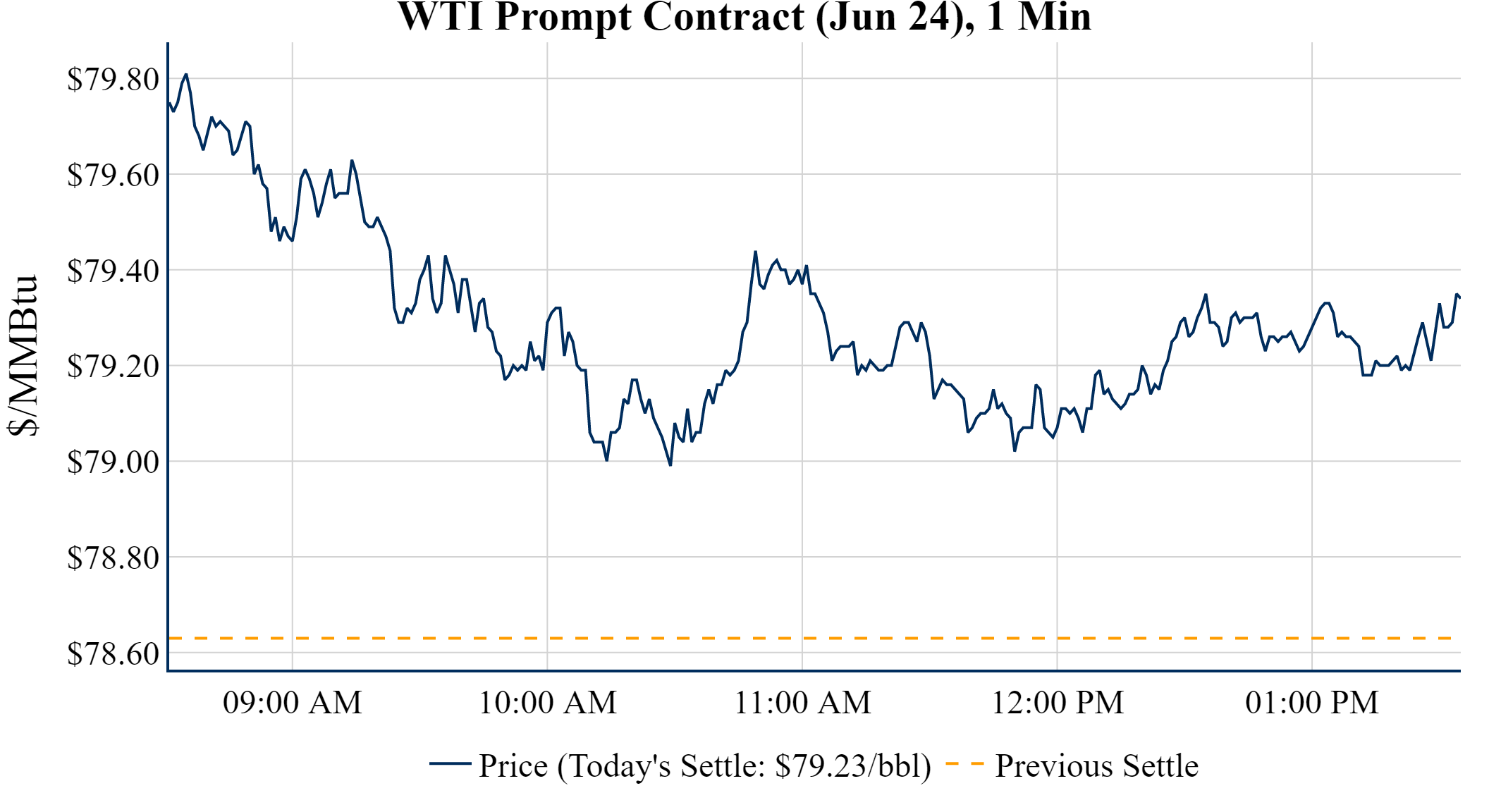 Prompt-Month Henry Hub (Jun 24) was up $0.079 on the day, to settle at $2.495Prompt-Month WTI (Jun 24) was up $0.60 on the day, to settle at $79.23