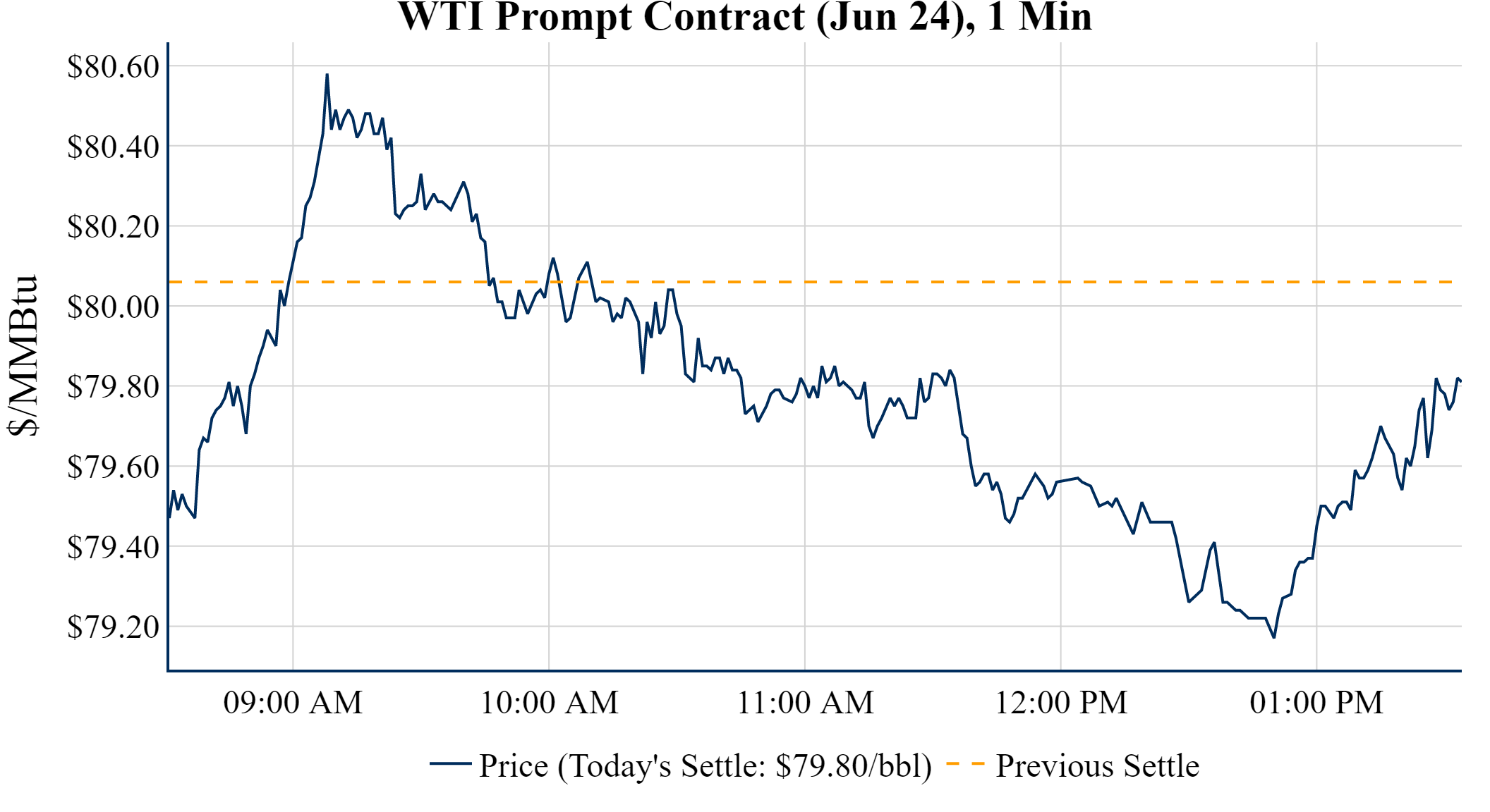 Prompt-Month Henry Hub (Jun 24) was up $0.125 on the day, to settle at $2.751 Prompt-Month WTI (Jun 24) was down $-0.26 on the day, to settle at $79.80