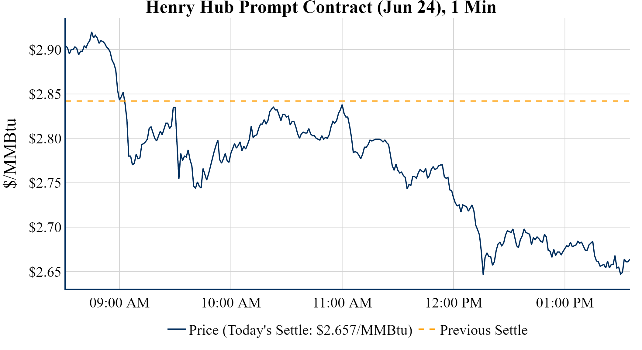 Prompt-Month Henry Hub (Jun 24) was down $-0.185 on the day, to settle at $2.657