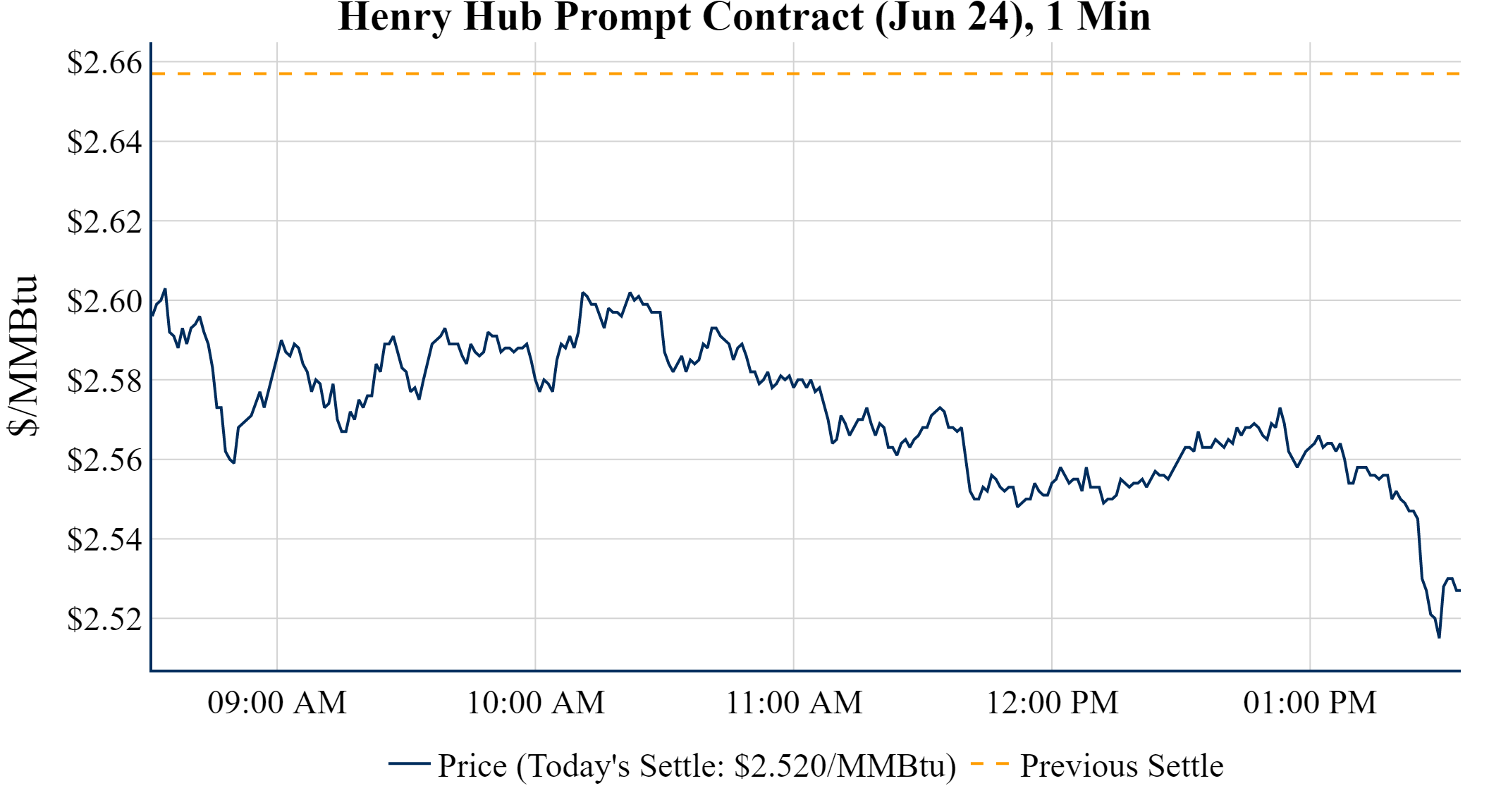 Prompt-Month Henry Hub (Jun 24) was down $-0.137 on the day, to settle at $2.520