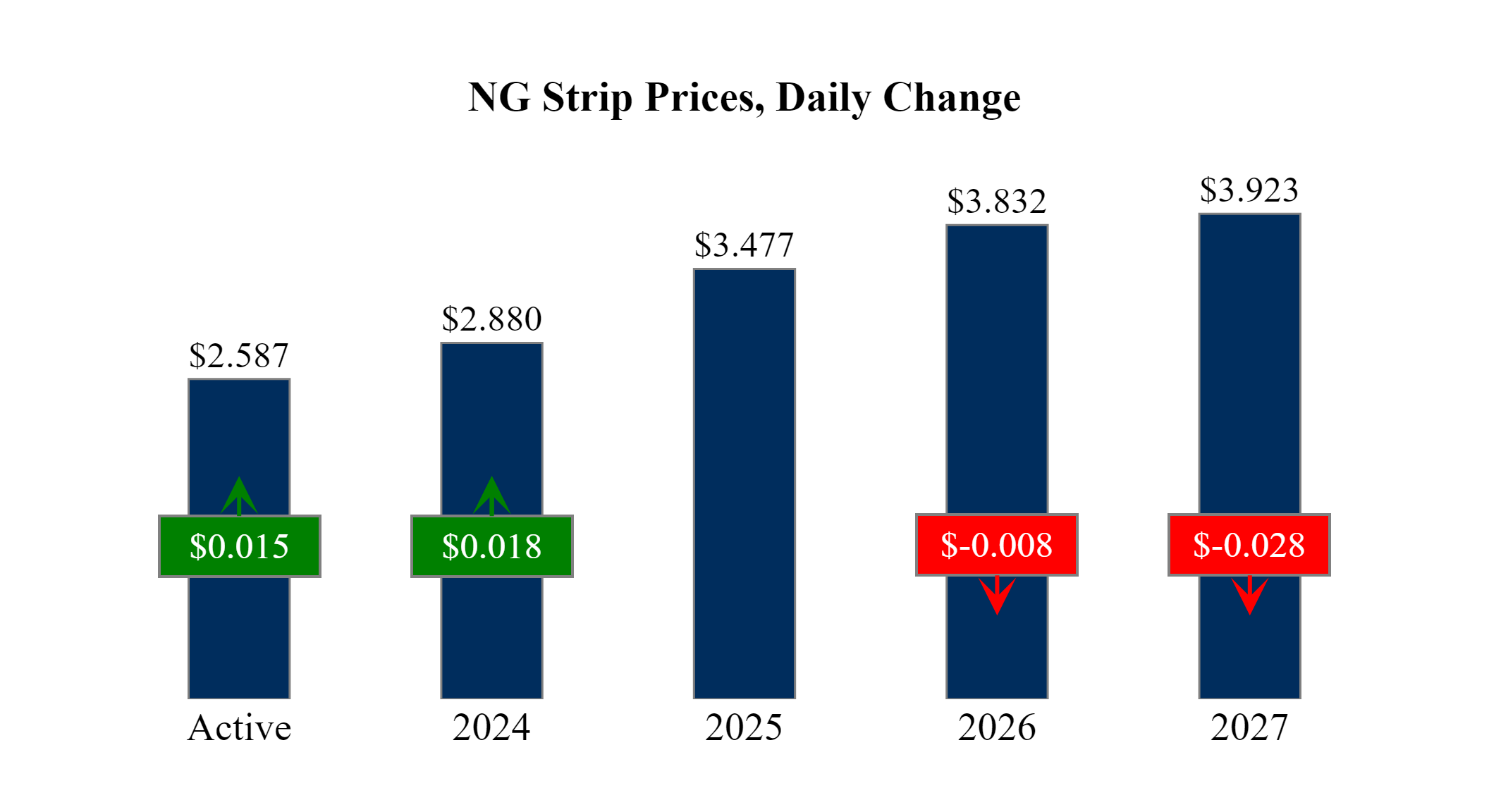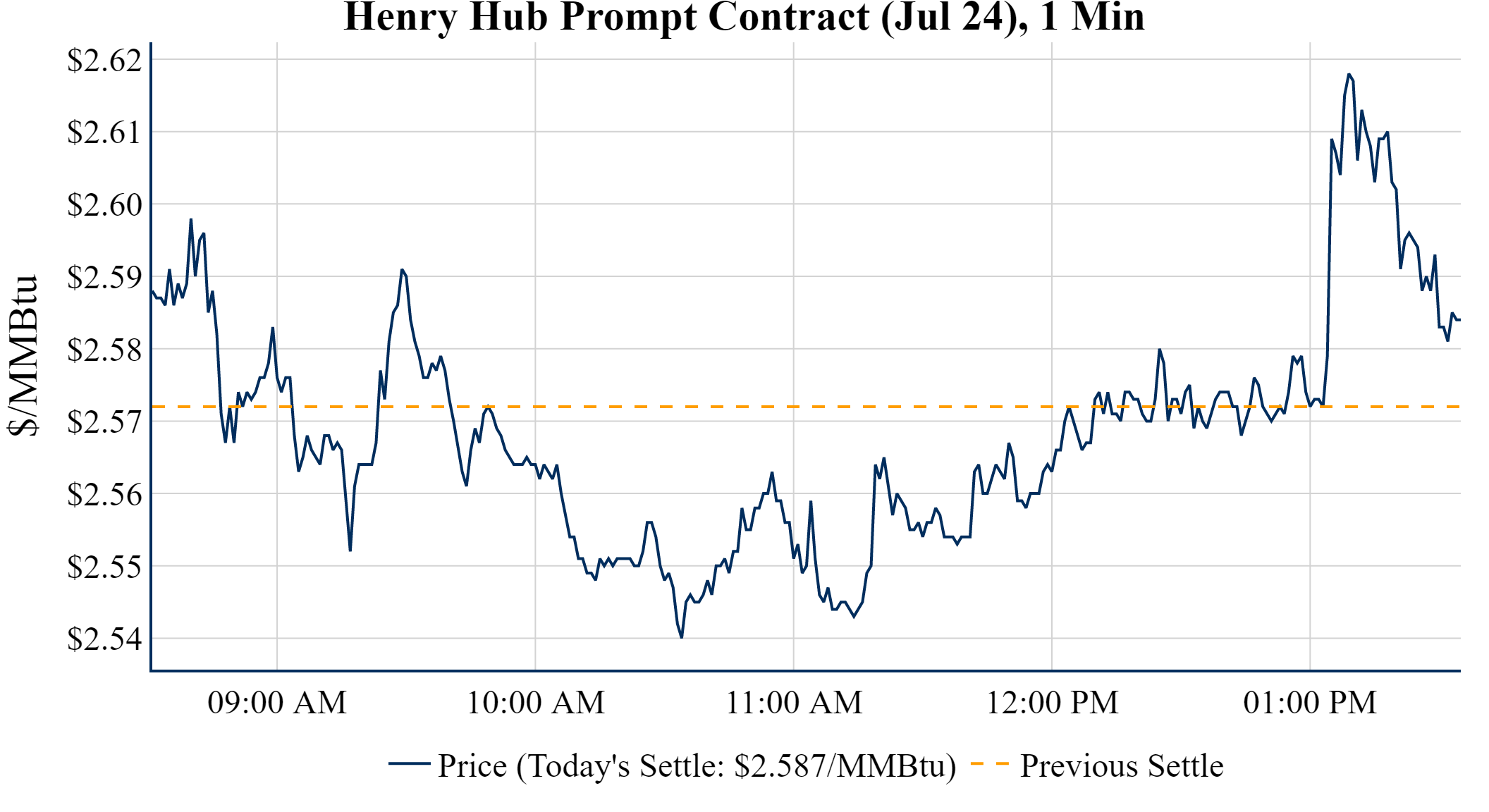 Prompt-Month Henry Hub (Jul 24) was up $0.015 on the day, to settle at $2.587 Prompt-Month WTI (Jul 24) was down $-0.92 on the day, to settle at $76.99