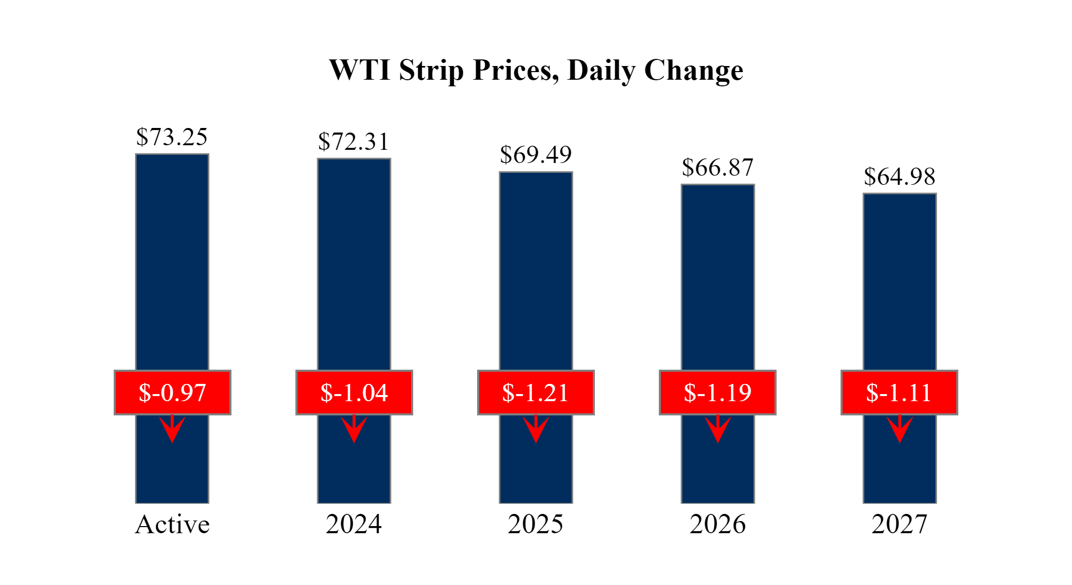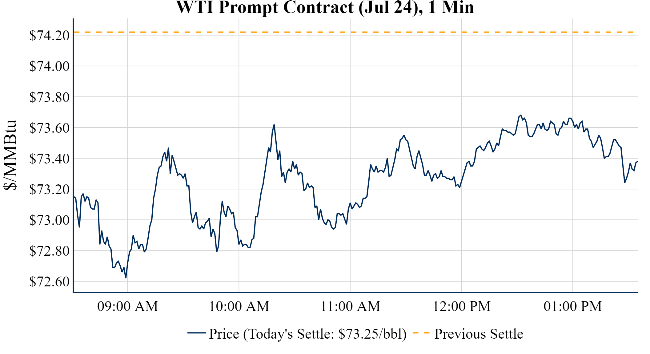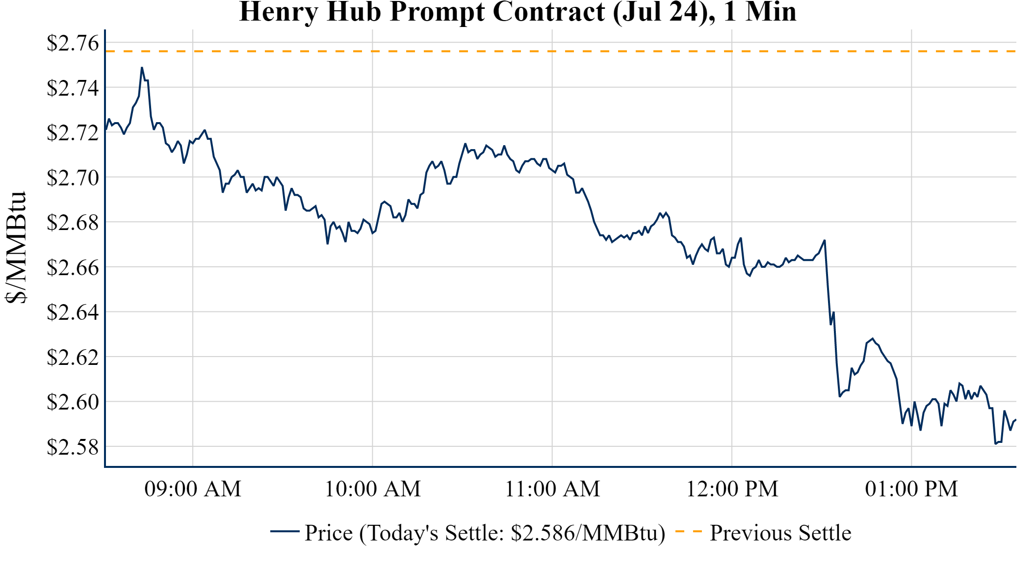Prompt-Month Henry Hub (Jul 24) was down $-0.170 on the day, to settle at $2.586Prompt-Month WTI (Jul 24) was down $-0.97 on the day, to settle at $73.25