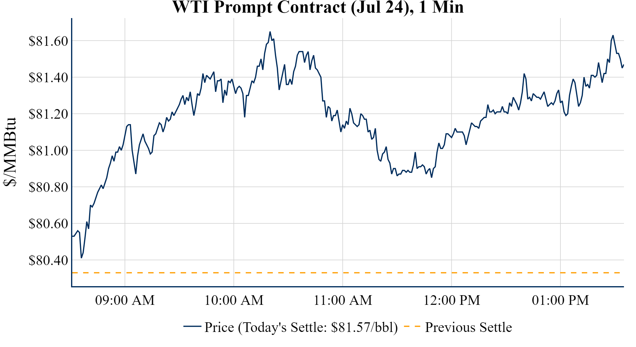 Prompt-Month WTI (Jul 24) was up $1.24 on the day, to settle at $81.57