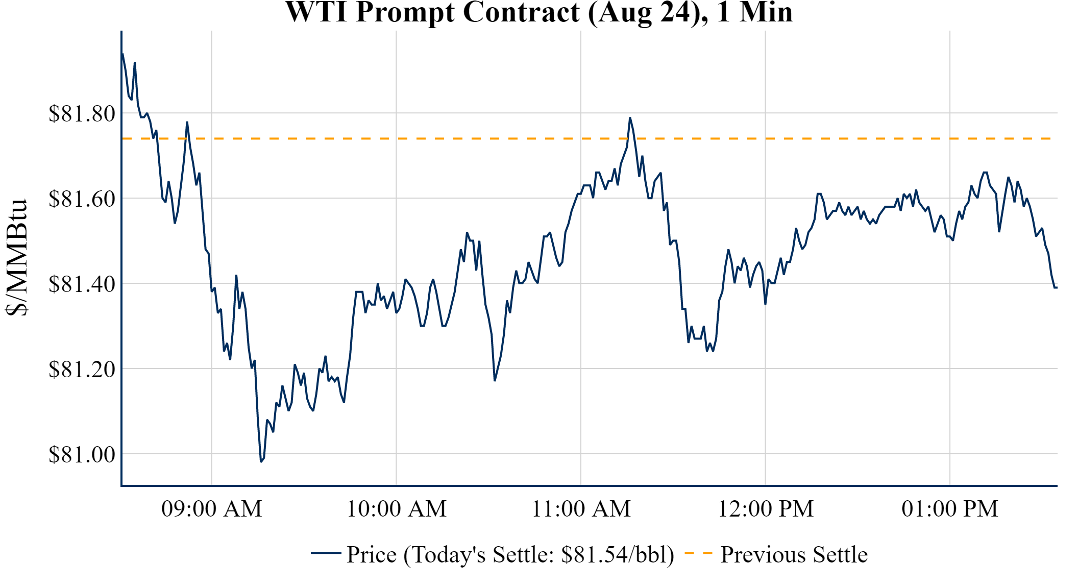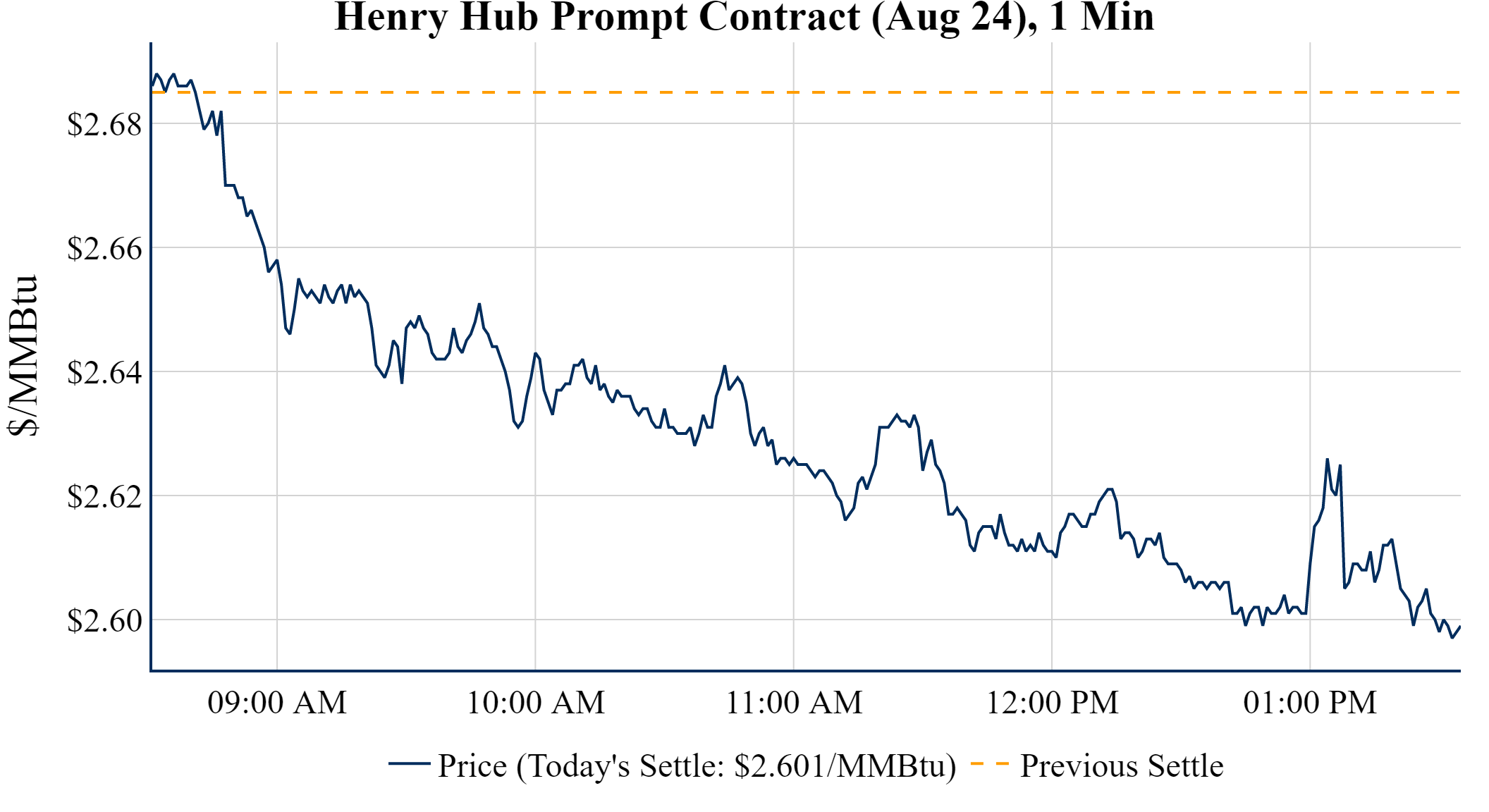 Prompt-Month Henry Hub (Aug 24) was down $-0.084 on the day, to settle at $2.601 Prompt-Month WTI (Aug 24) was down $-0.20 on the day, to settle at $81.54
