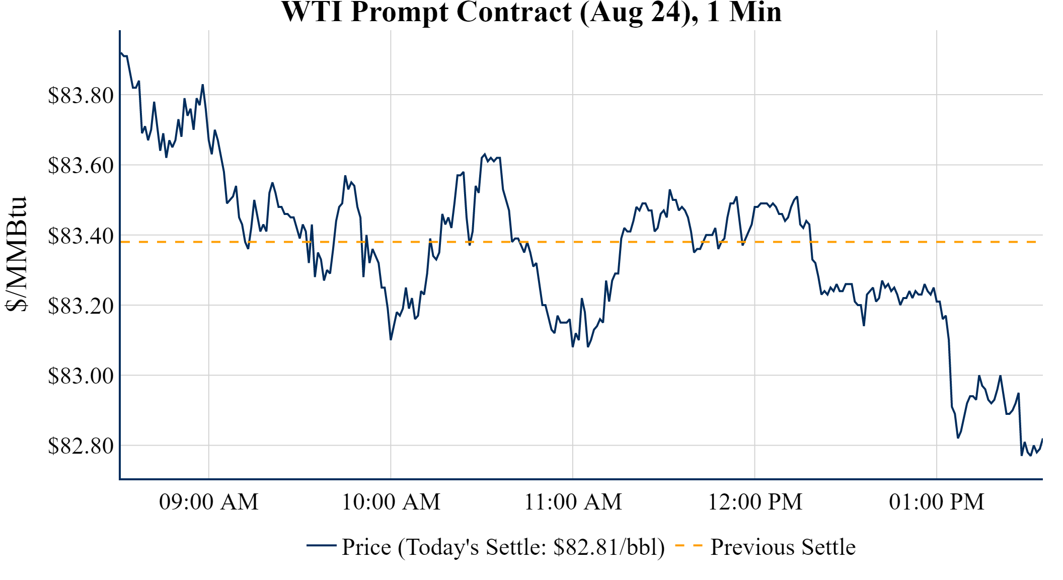 Prompt-Month WTI (Aug 24) was down $-0.57 on the day, to settle at $82.81