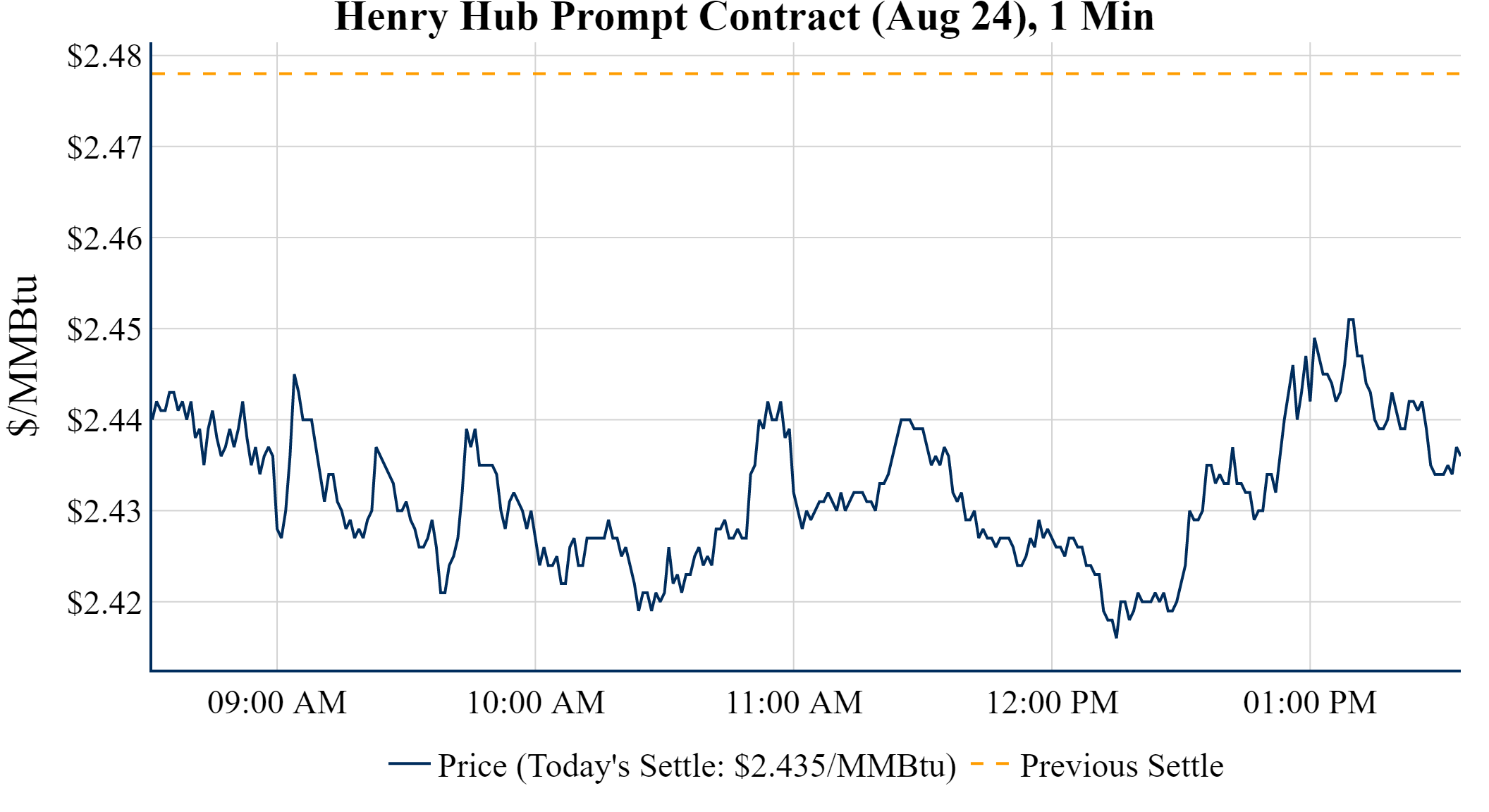 Prompt-Month Henry Hub (Aug 24) was down $-0.043 on the day, to settle at $2.435
