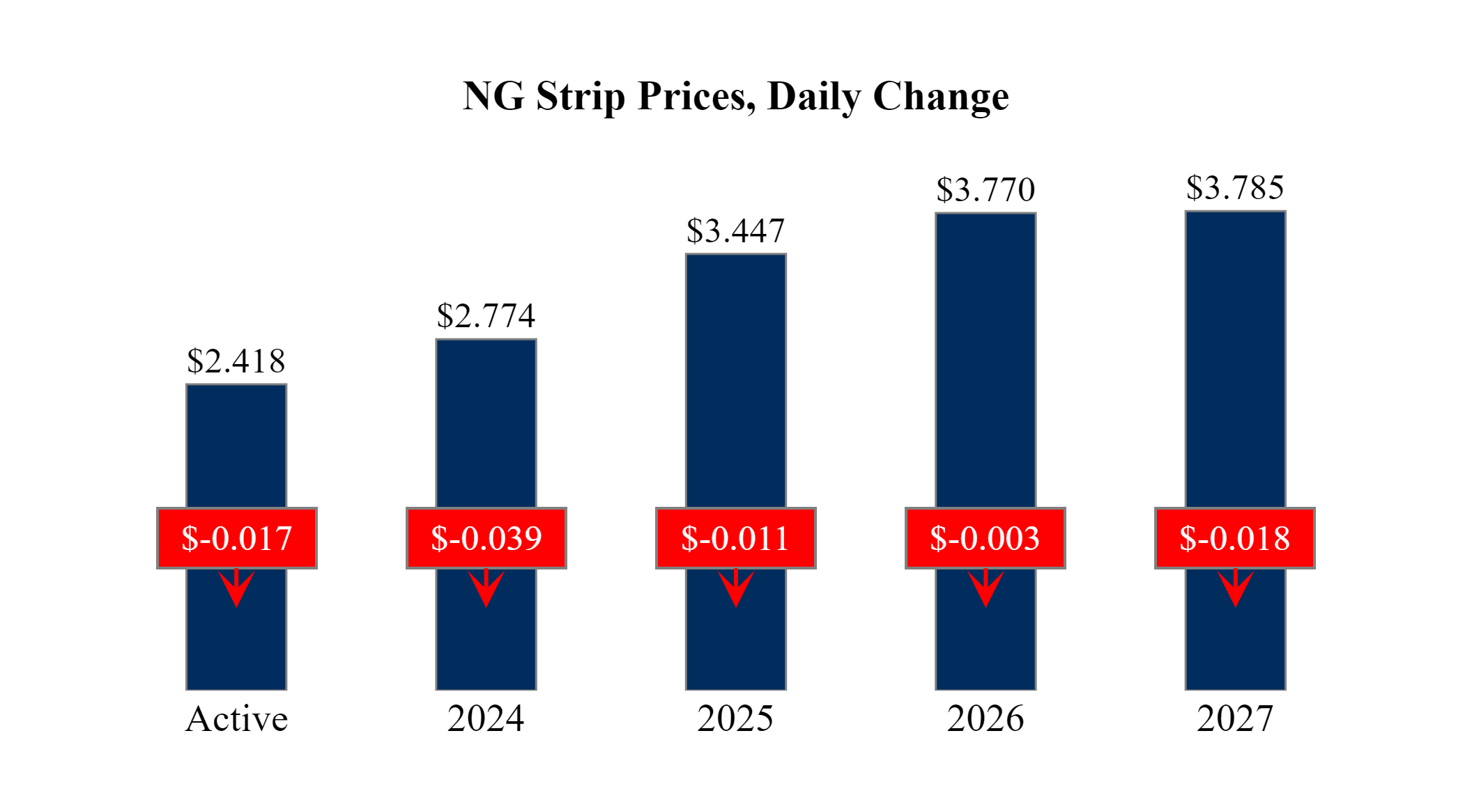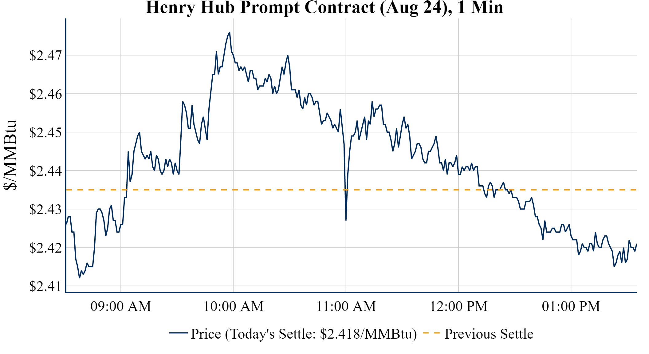 Prompt-Month Henry Hub (Aug 24) was down $-0.017 on the day, to settle at $2.418