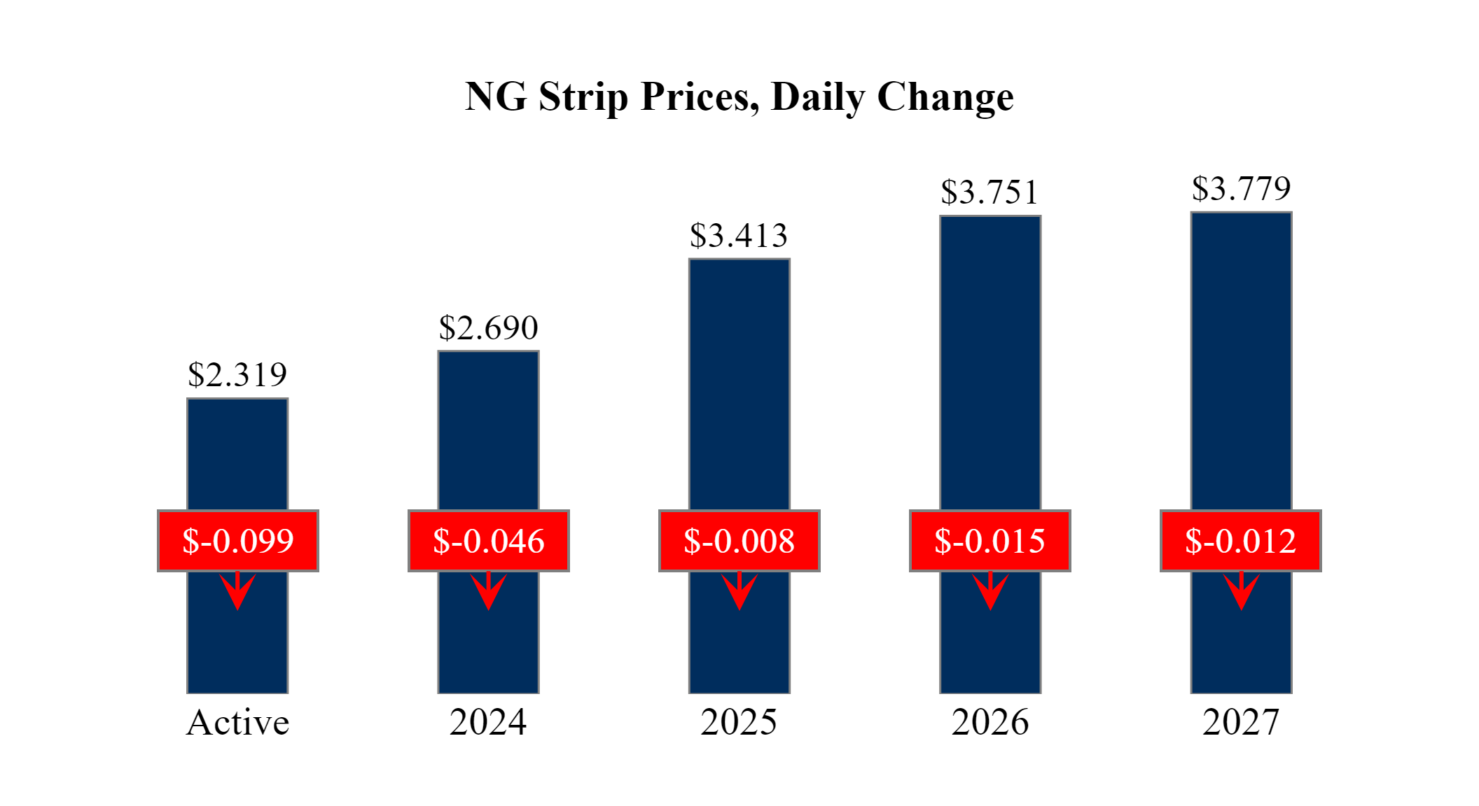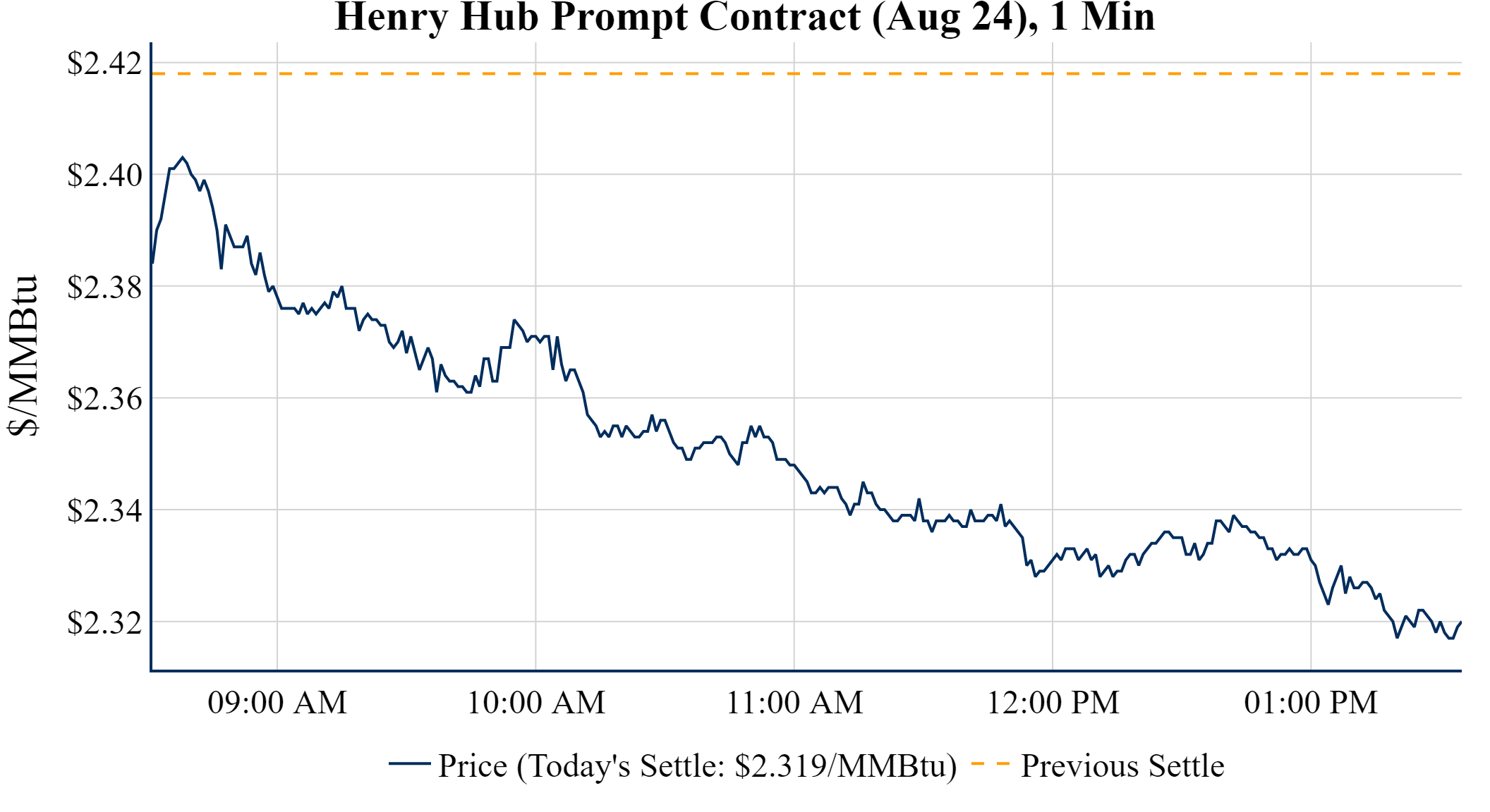 Prompt-Month Henry Hub (Aug 24) was down $-0.099 on the day, to settle at $2.319
