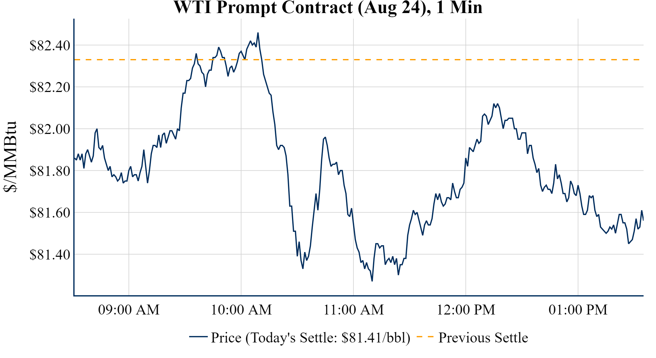 Prompt-Month WTI (Aug 24) was down $-0.92 on the day, to settle at $81.41