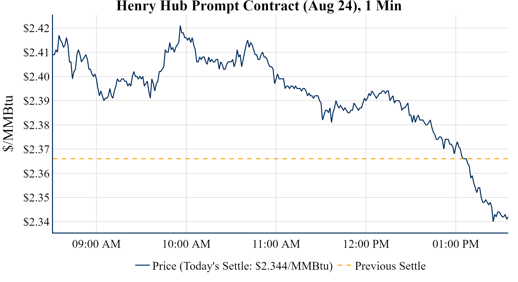 Prompt-Month Henry Hub (Aug 24) was down $-0.022 on the day, to settle at $2.344