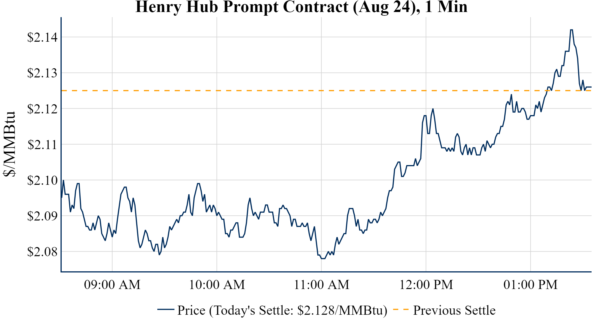 Prompt-Month Henry Hub (Aug 24) was up $0.003 on the day, to settle at $2.128
