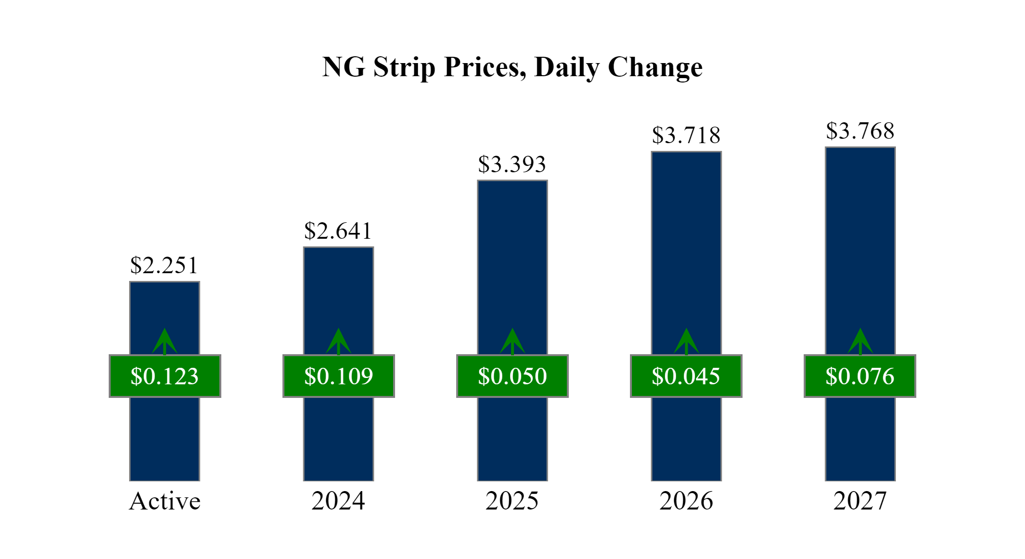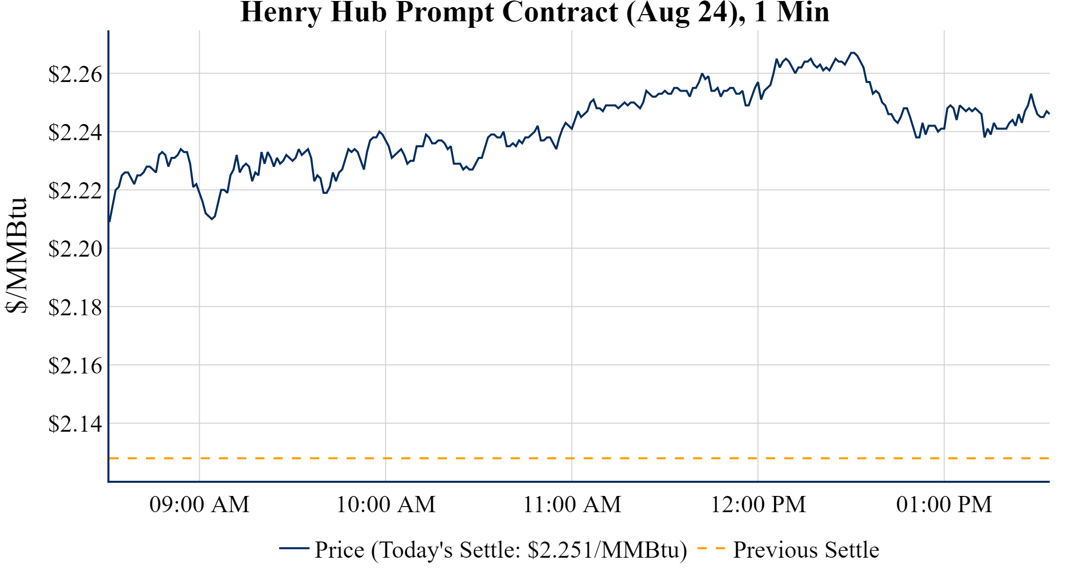 Prompt-Month Henry Hub (Aug 24) was up $0.123 on the day, to settle at $2.251
