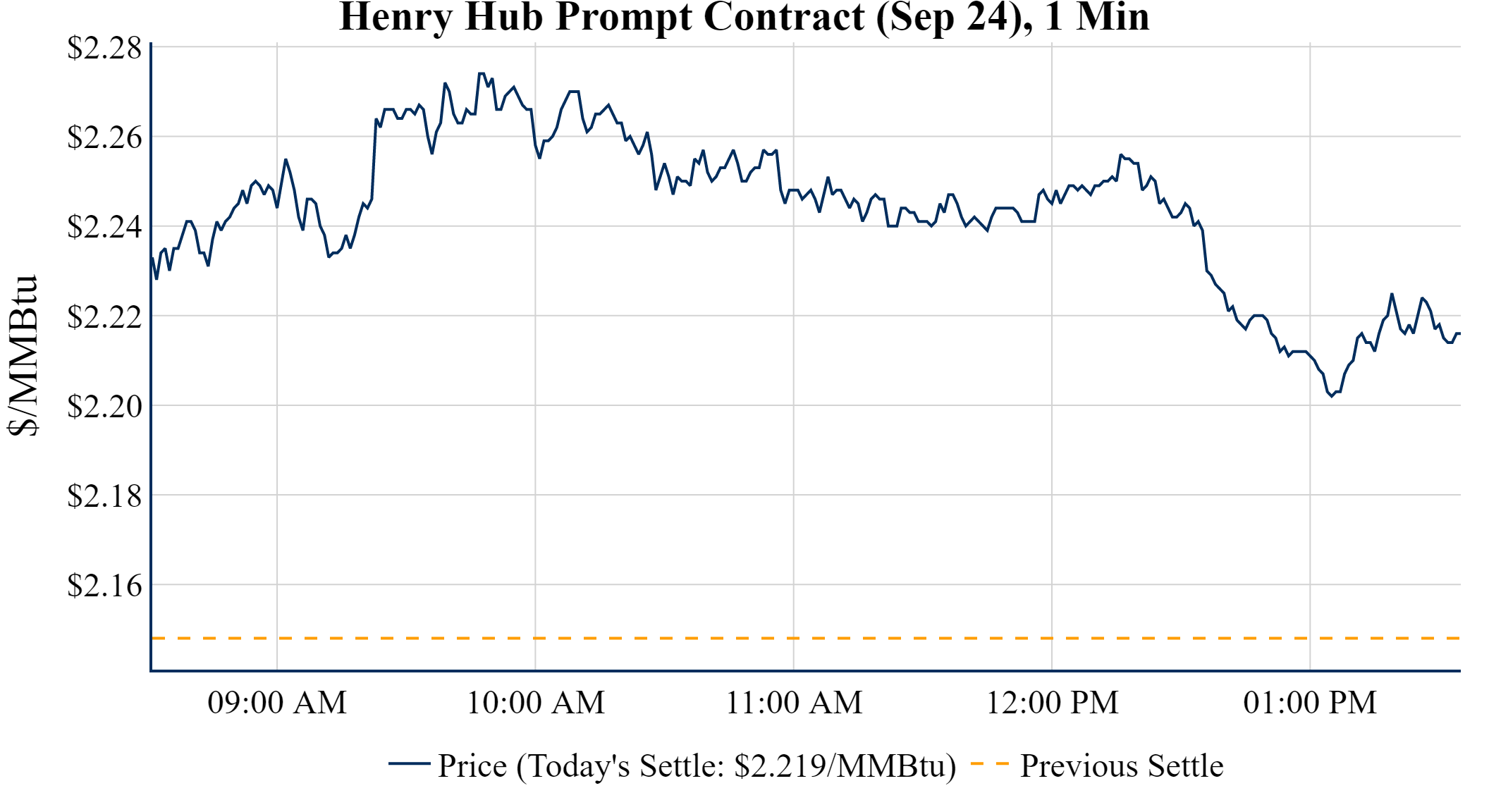 Prompt-Month Henry Hub (Sep 24) was up $0.071 on the day, to settle at $2.219