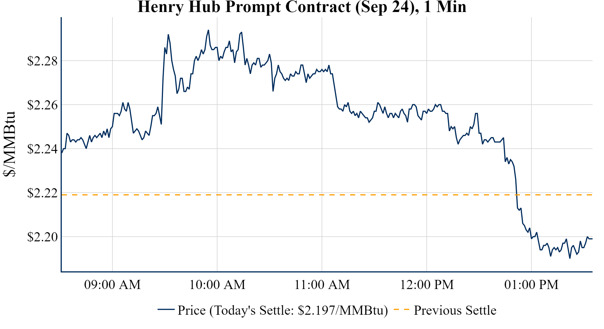 Prompt-Month Henry Hub (Sep 24) was down $-0.022 on the day, to settle at $2.197