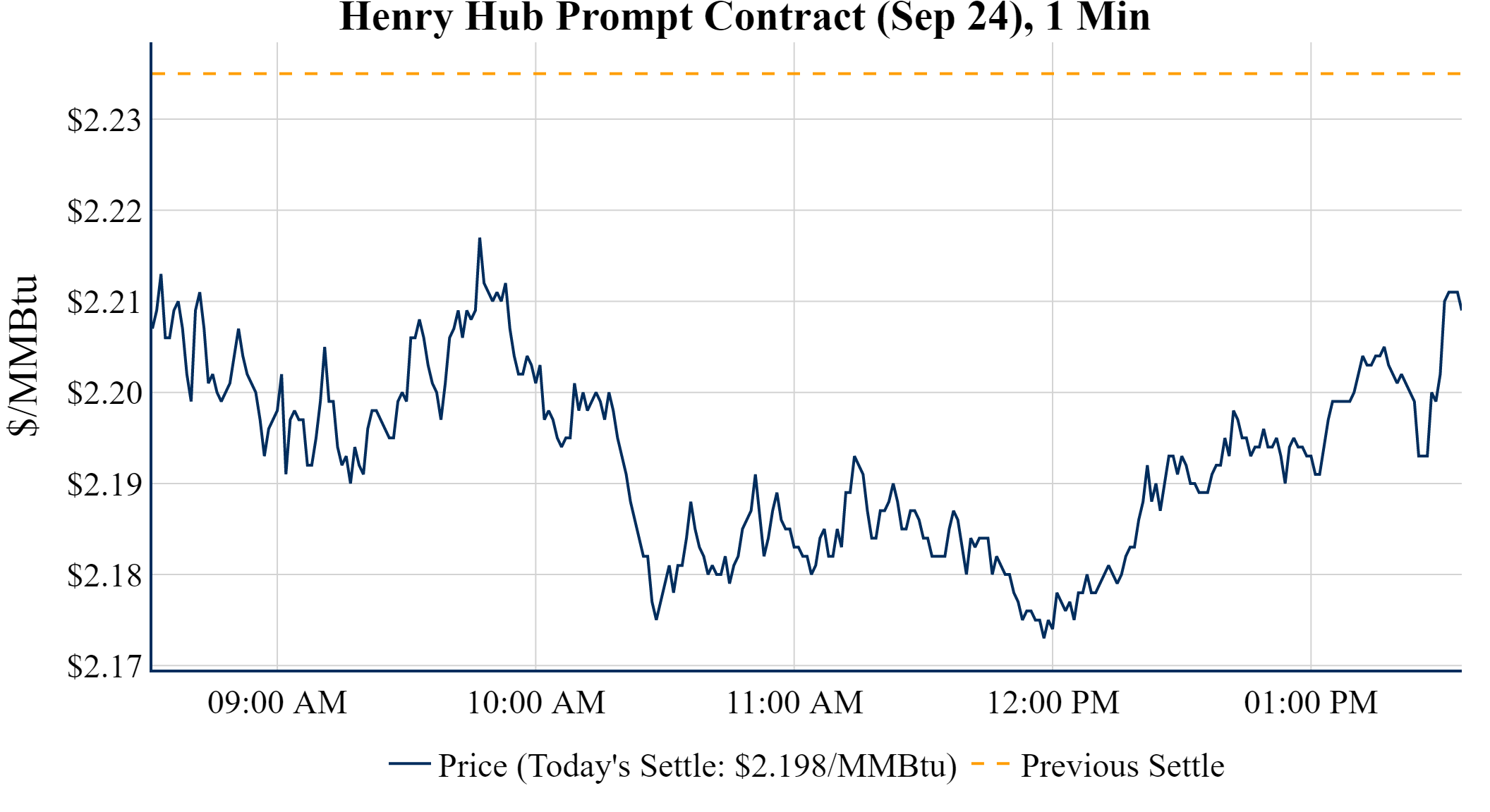 Prompt-Month Henry Hub (Sep 24) was down $-0.037 on the day, to settle at $2.198