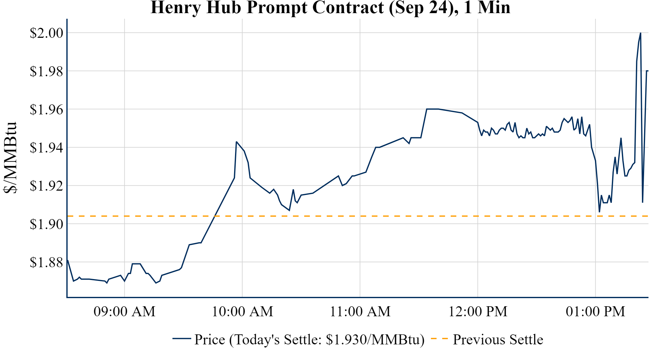 Prompt-Month Henry Hub (Sep 24) was up $0.026 on the day, to settle at $1.930