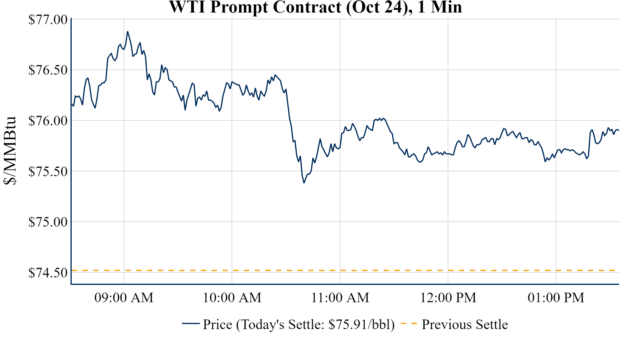 Prompt-Month WTI (Oct 24) was up $1.39 on the day, to settle at $75.91