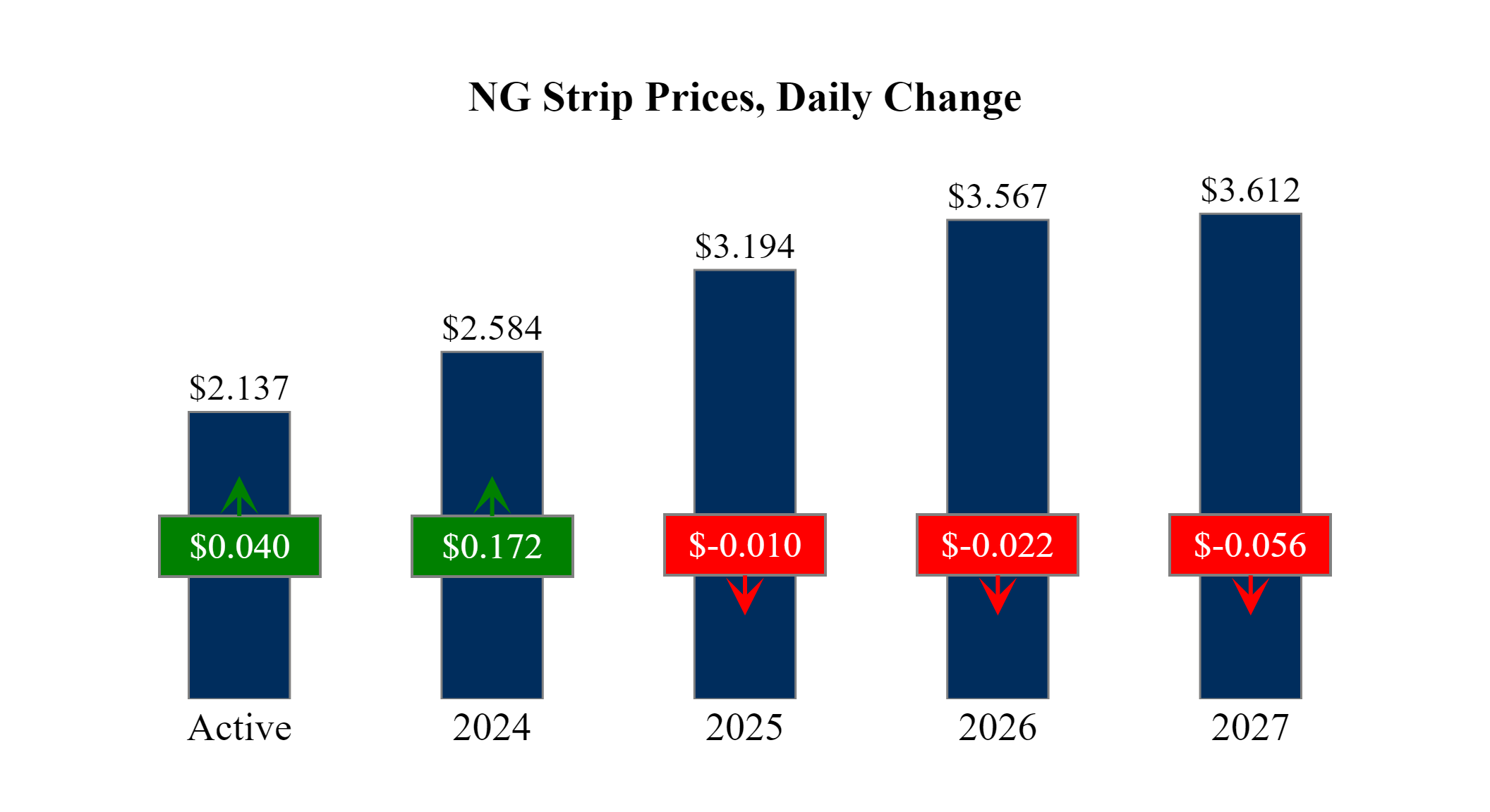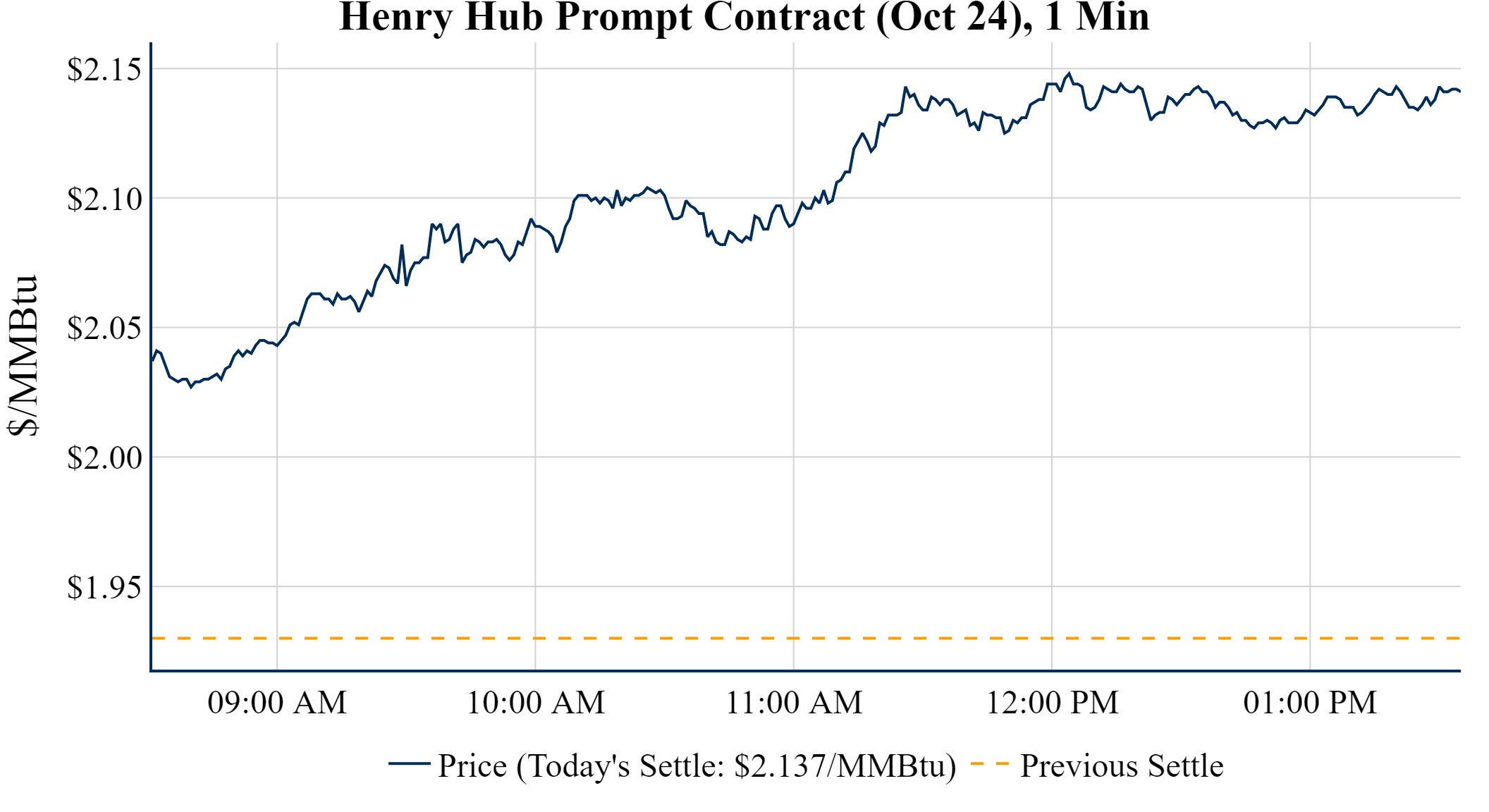 Prompt-Month Henry Hub (Oct 24) was up $0.040 on the day, to settle at $2.137