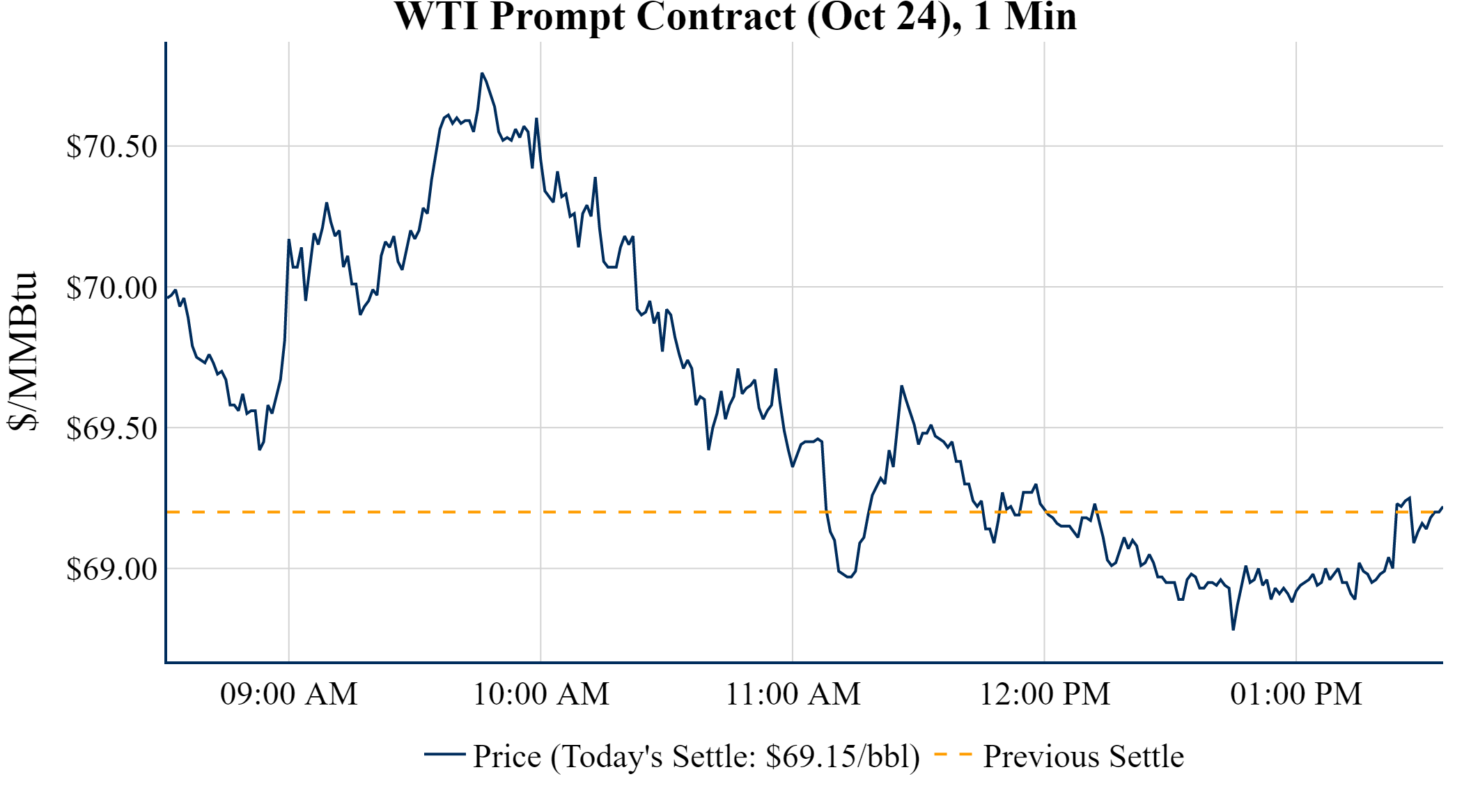 Prompt-Month WTI (Oct 24) was down $-0.05 on the day, to settle at $69.15