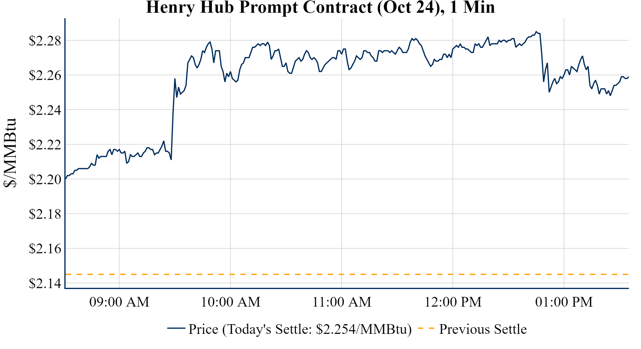 Prompt-Month Henry Hub (Oct 24) was up $0.109 on the day, to settle at $2.254