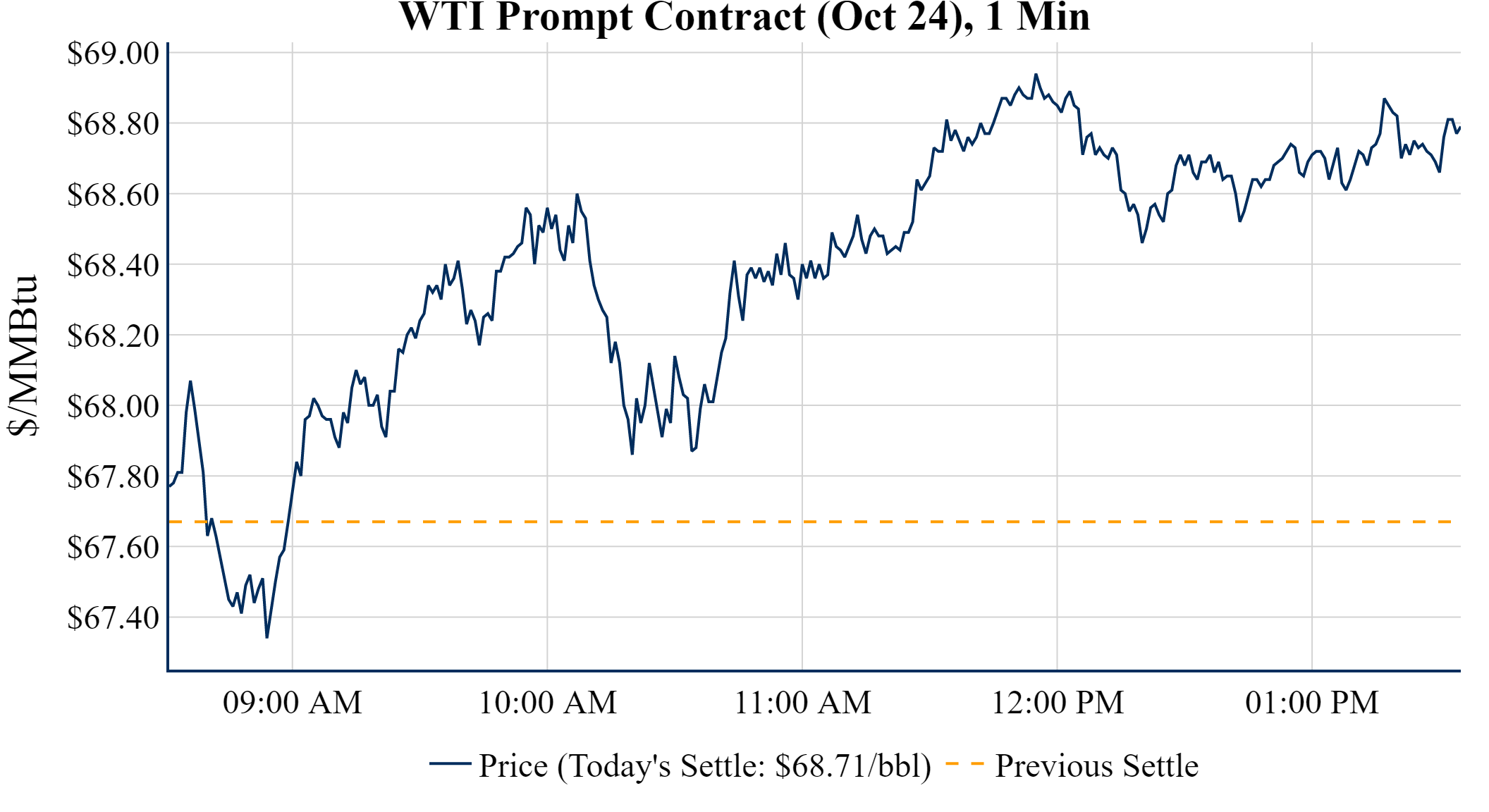 Prompt-Month WTI (Oct 24) was up $1.04 on the day, to settle at $68.71