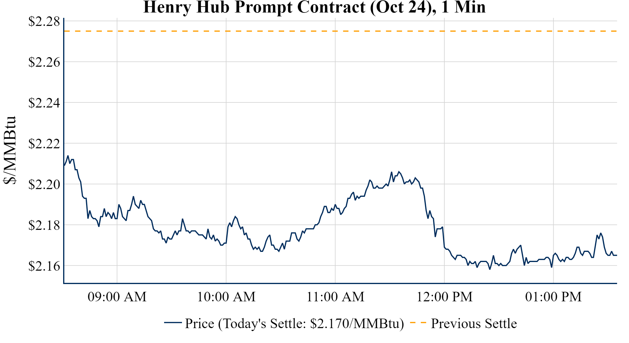 Prompt-Month Henry Hub (Oct 24) was down $-0.105 on the day, to settle at $2.170